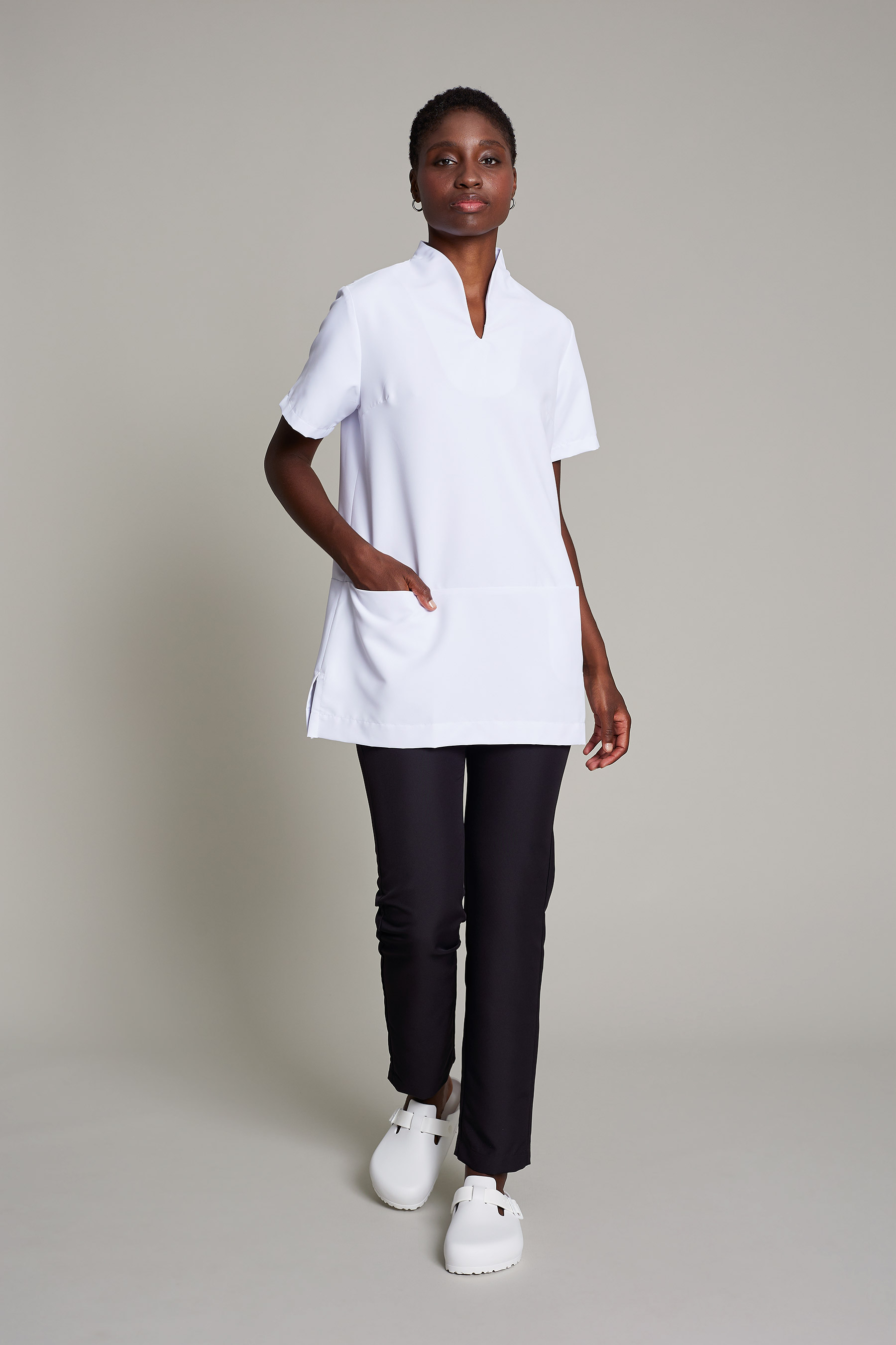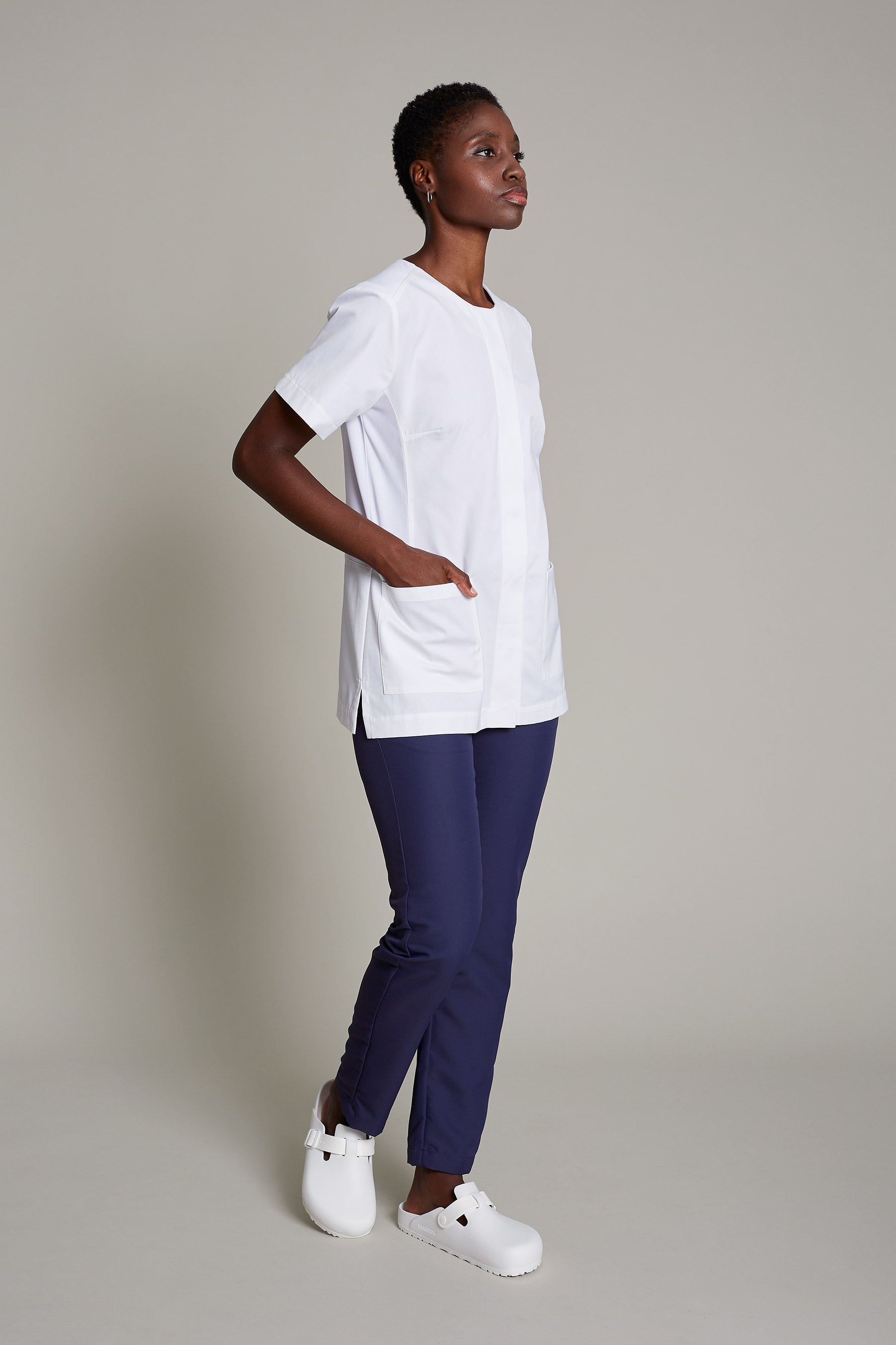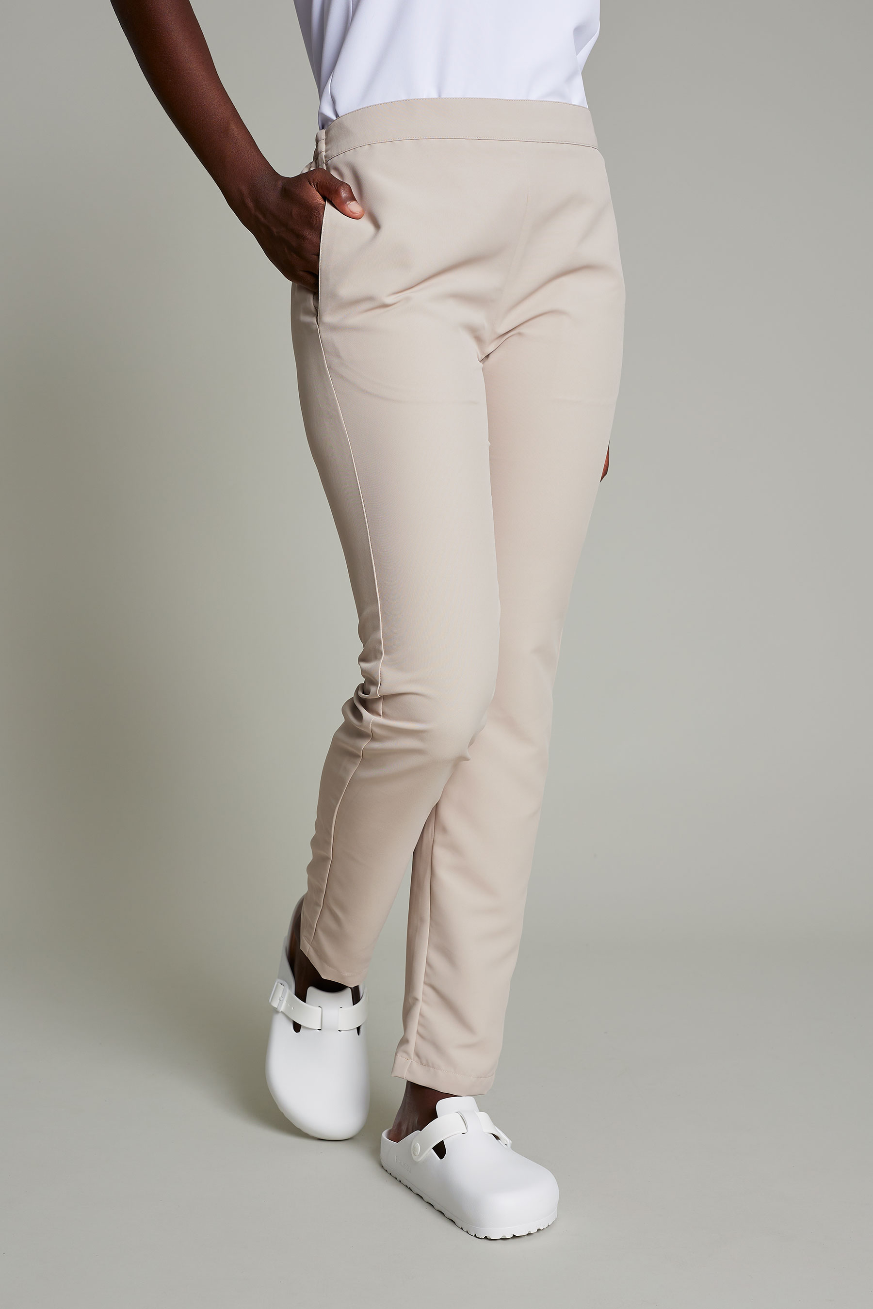 Túnica Ferrara de mujer en color beige con tejido de microfibra, que ofrece un máximo confort y estilo para el trabajo diario. No requiere plancha