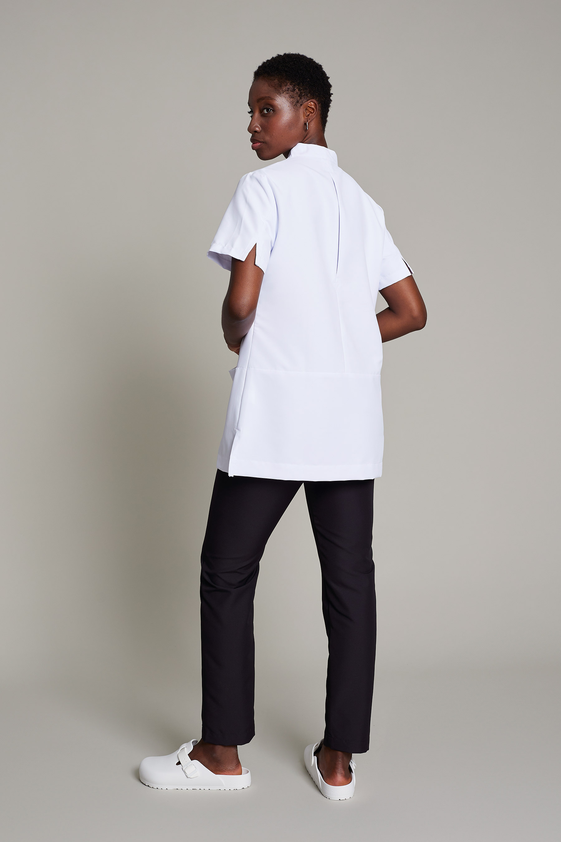 Túnica Alice de mujer en color blanco con tejido poliéster para un máximo confort y estilo para el trabajo. No requiere plancha