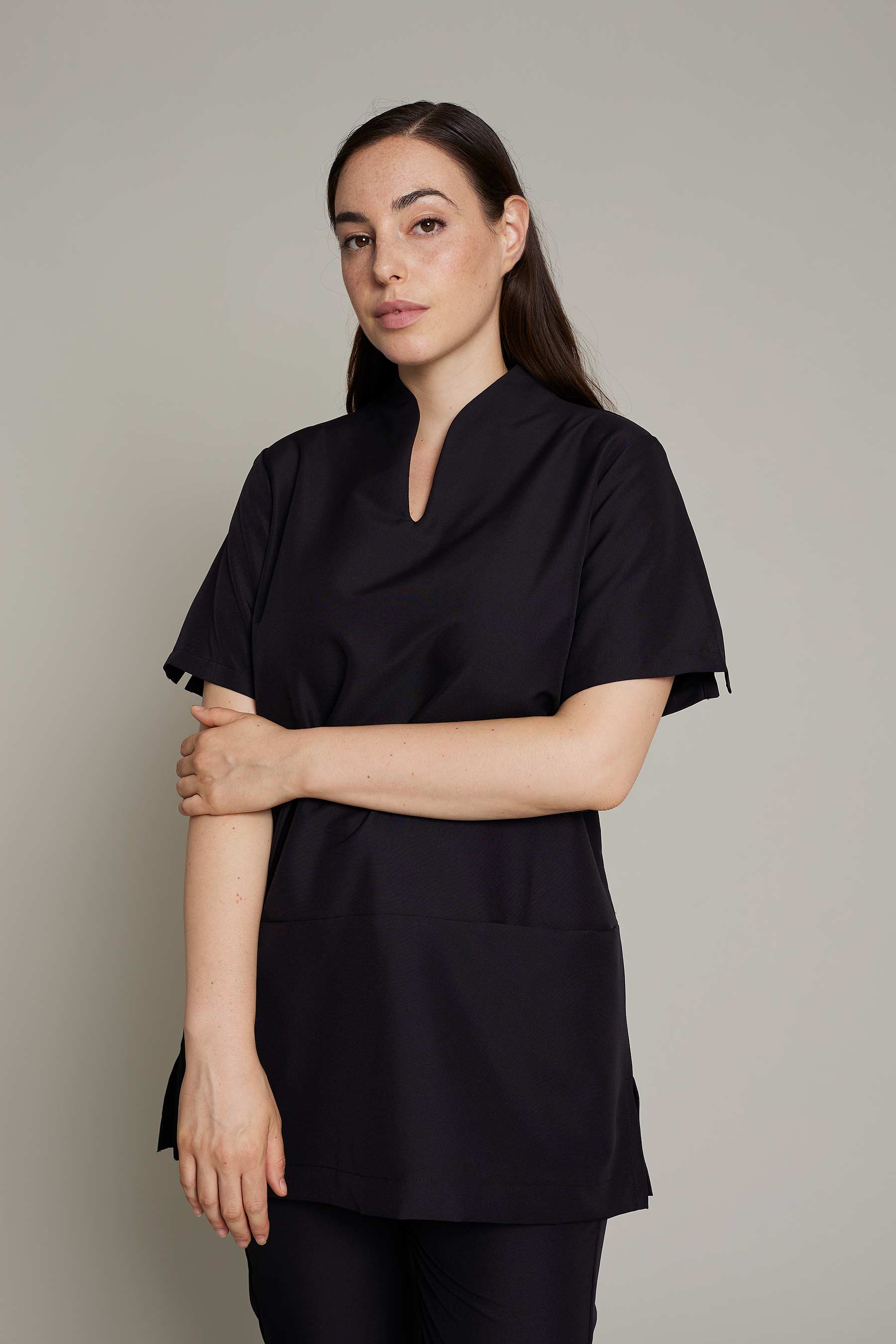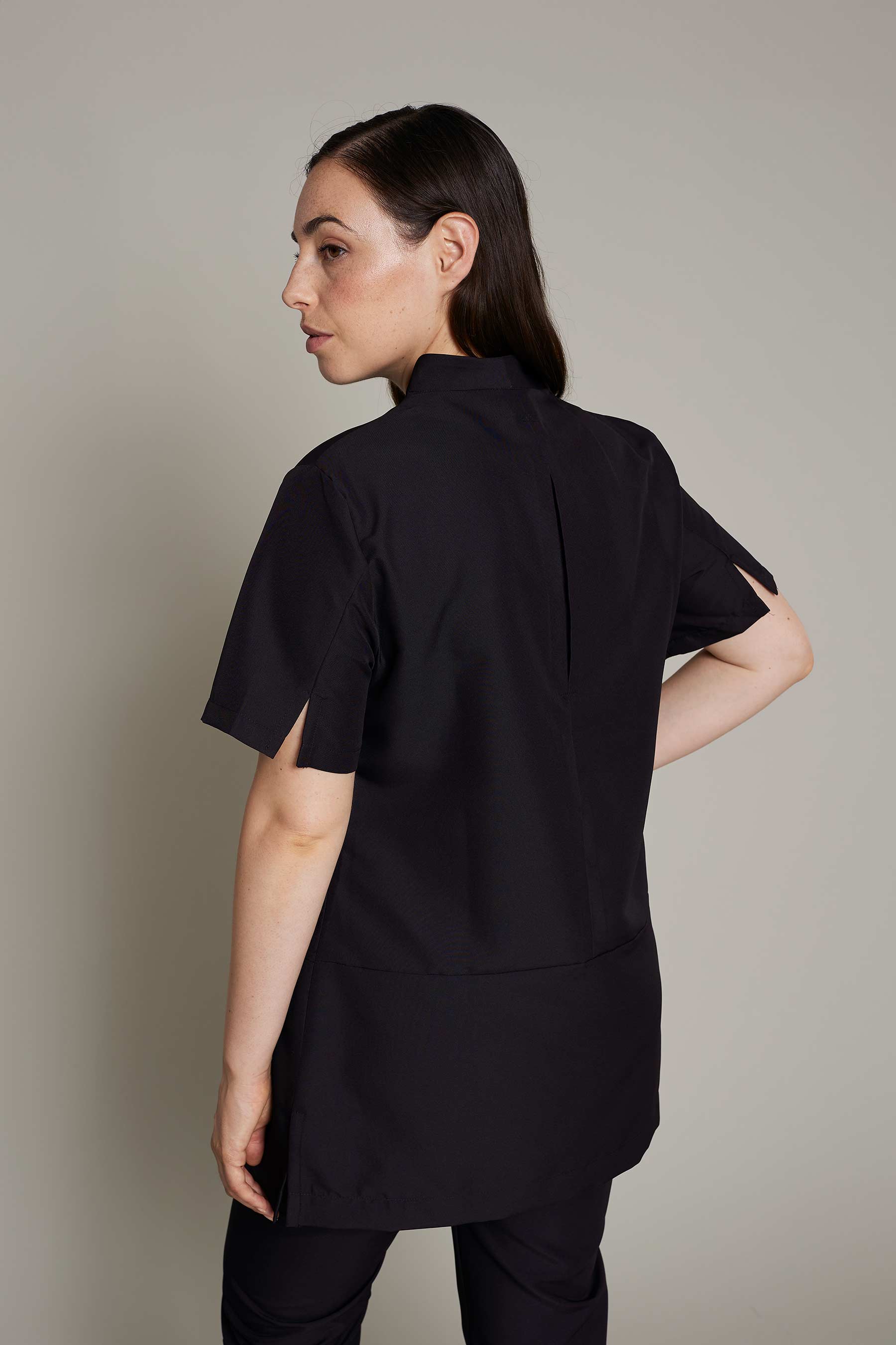 Túnica Alice de mujer en color negro con tejido poliéster para un máximo confort y estilo para el trabajo. No requiere plancha