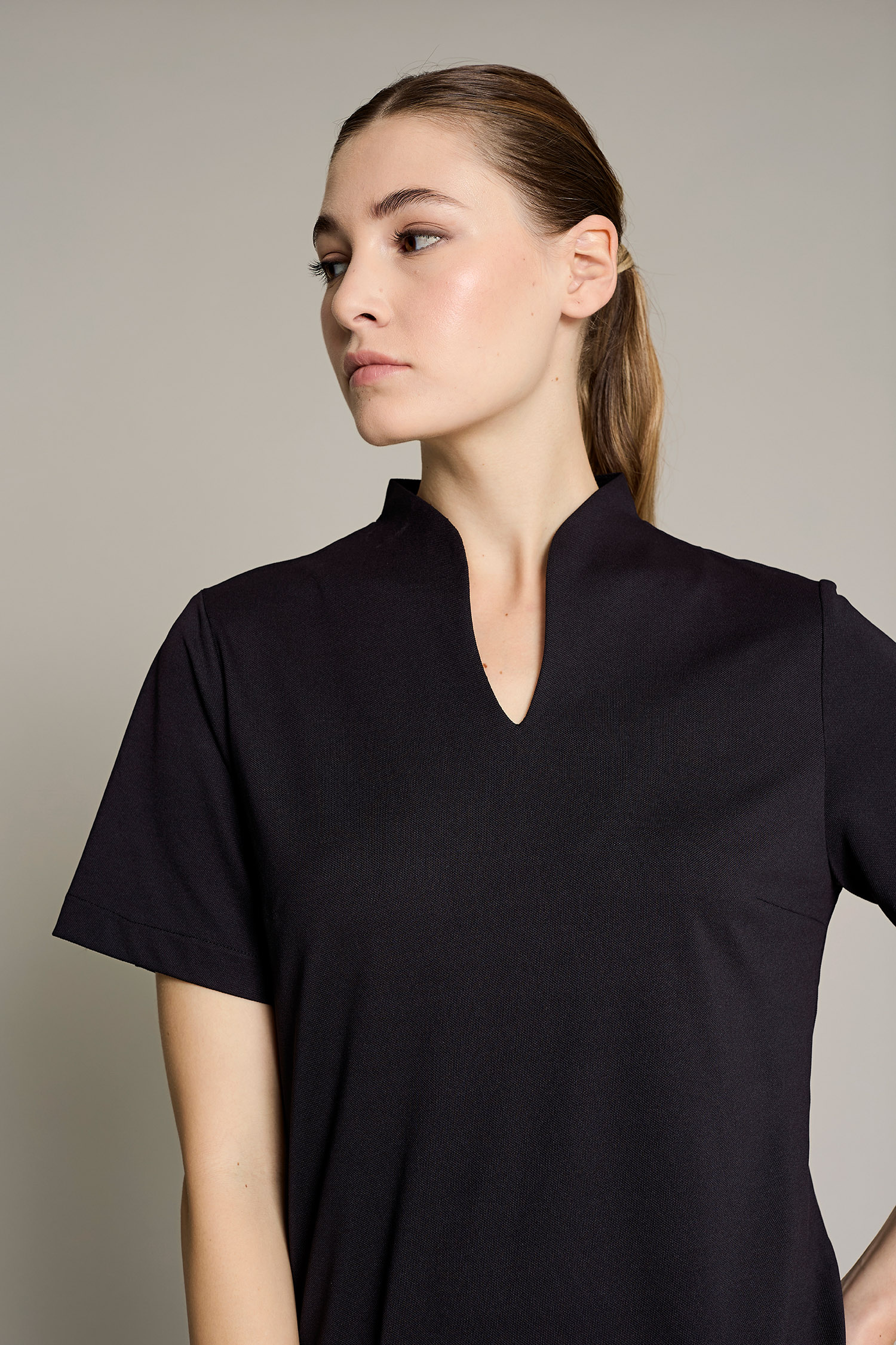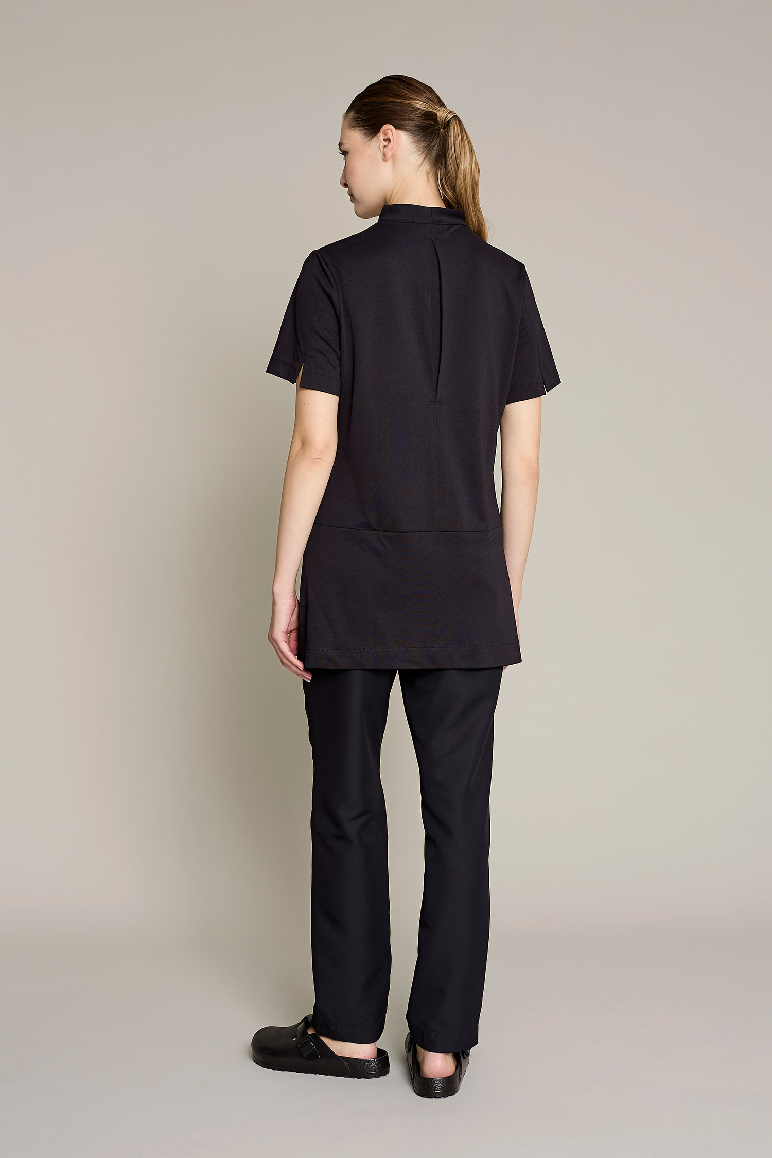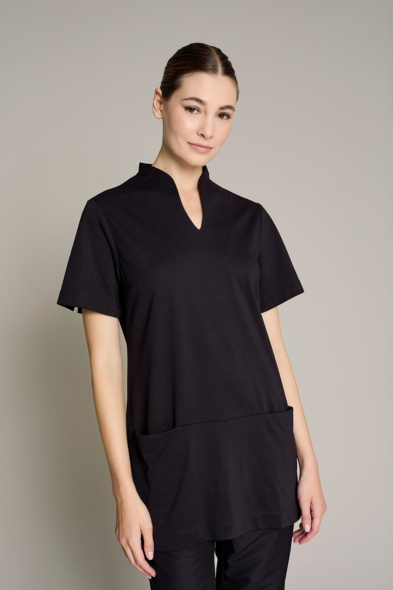 Túnica Alice de mujer en color negro con tejido poliéster para un máximo confort y estilo para el trabajo. No requiere plancha