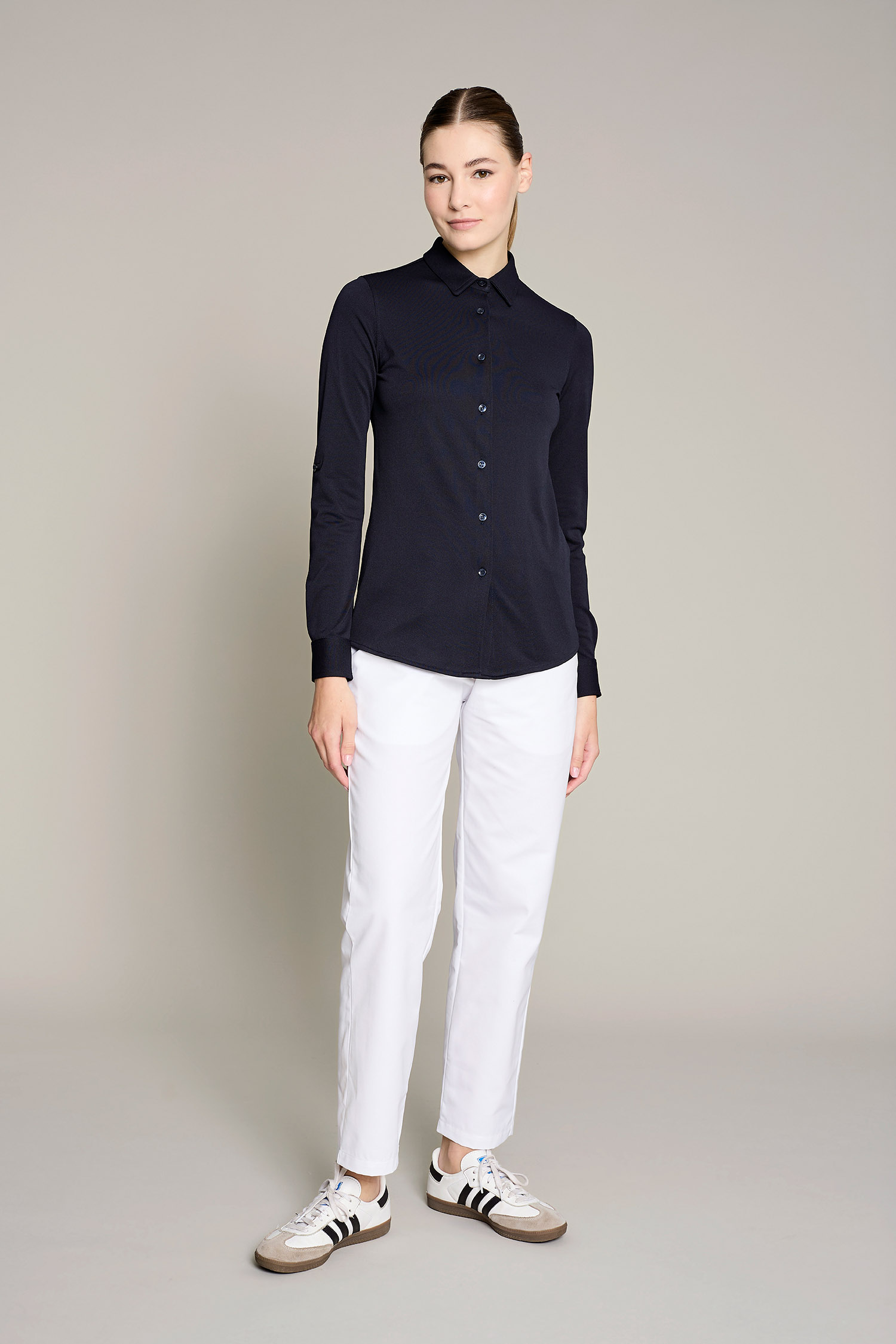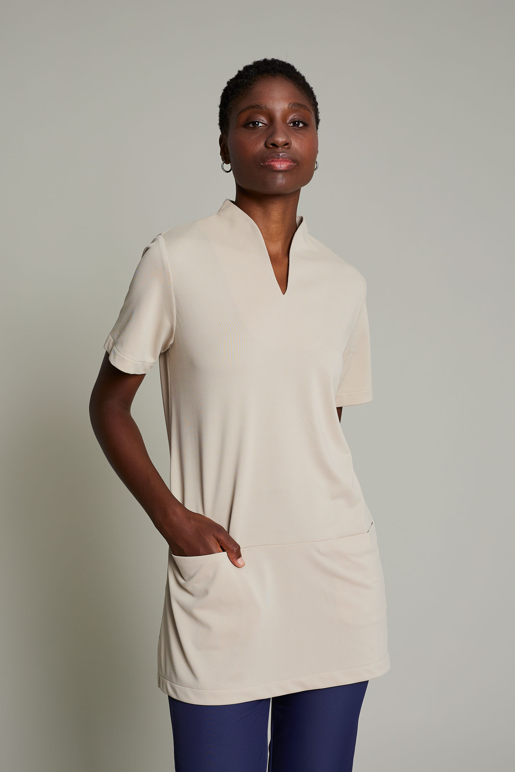 La túnica Ferrara de mujer en color azul ha sido diseñada para profesionales del sector de limpieza, camareras/os de pisos u otras funciones que requieren máxima movilidad y confort. Fabricada en 100% poliéster reciclado, este modelo combina un diseño funcional con una estética cuidada que se aleja del típico uniforme convencional. Gracias a su gramaje de 180 g/m², proporciona la ligereza necesaria para moverse con libertad sin comprometer la durabilidad de la prenda. El uso de poliéster reciclado refuerza el compromiso con la sostenibilidad sin sacrificar rendimiento. La certificación OEKO-TEX Standard 100 asegura una prenda segura, libre de sustancias nocivas. Su tejido técnico facilita la evacuación de la humedad, manteniendo la piel seca y libre de olores incluso en turnos prolongados. Una propuesta pensada para profesionales que buscan uniformes que sean cómodos, funcionales y con estilo
