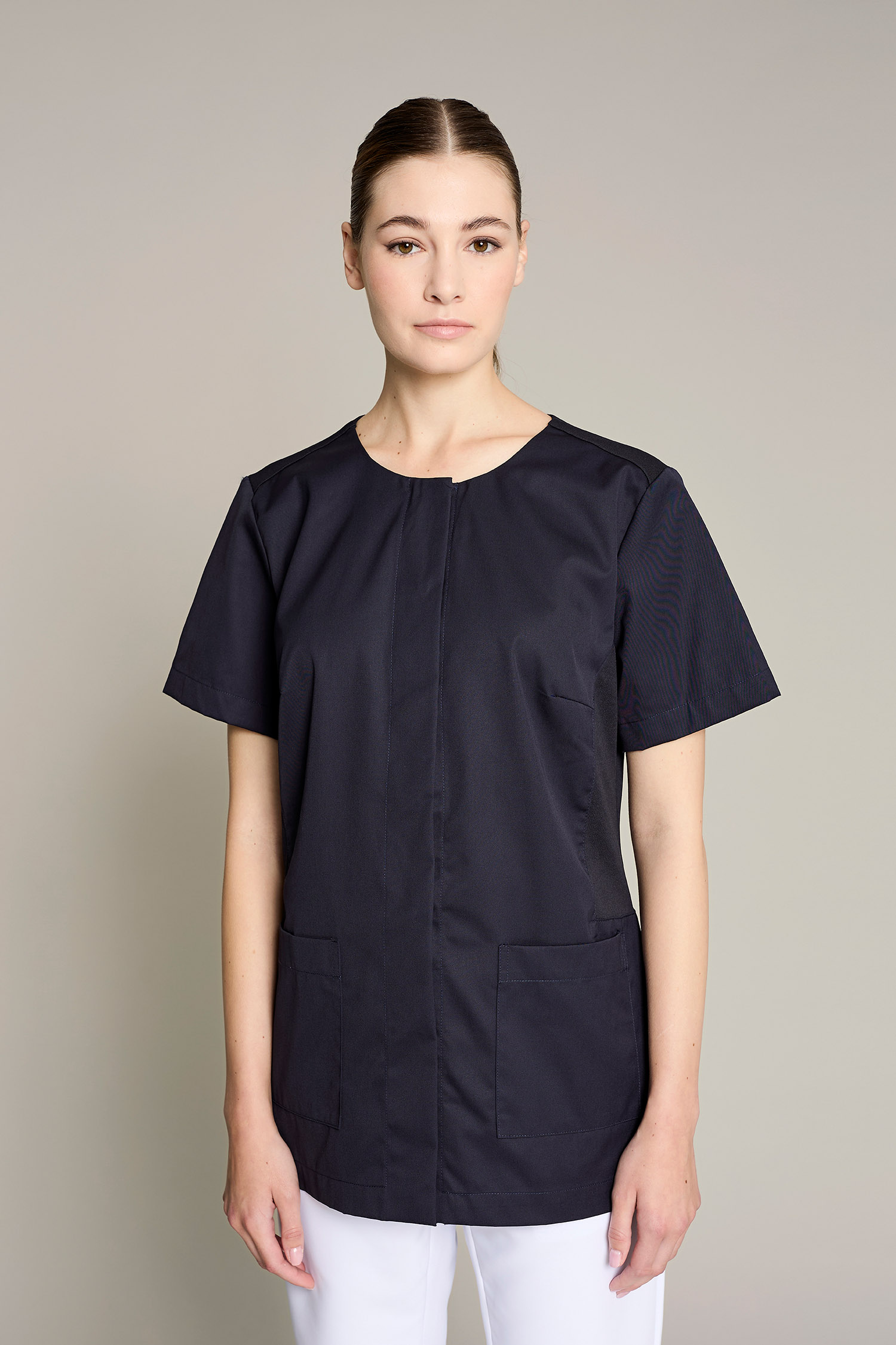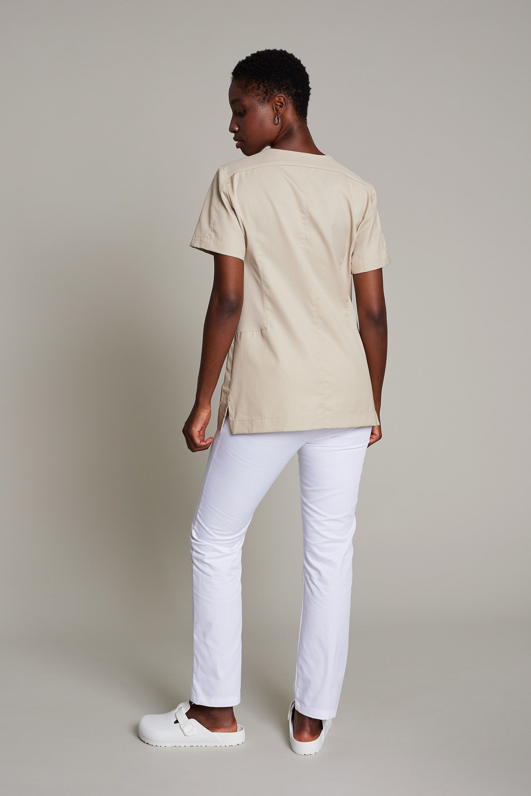 Túnica Alice de mujer en color beige con tejido poliéster para un máximo confort y estilo para el trabajo. No requiere plancha
