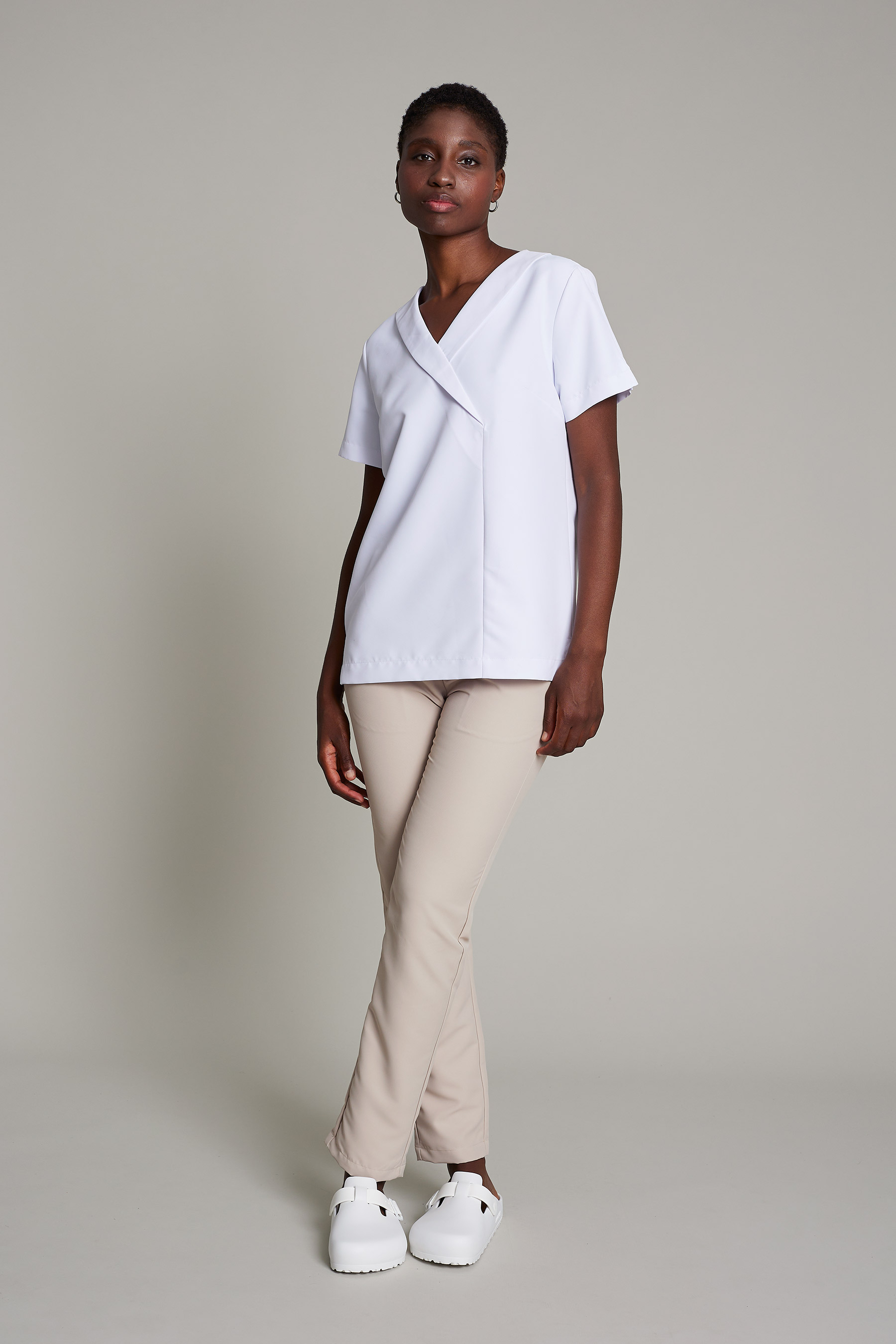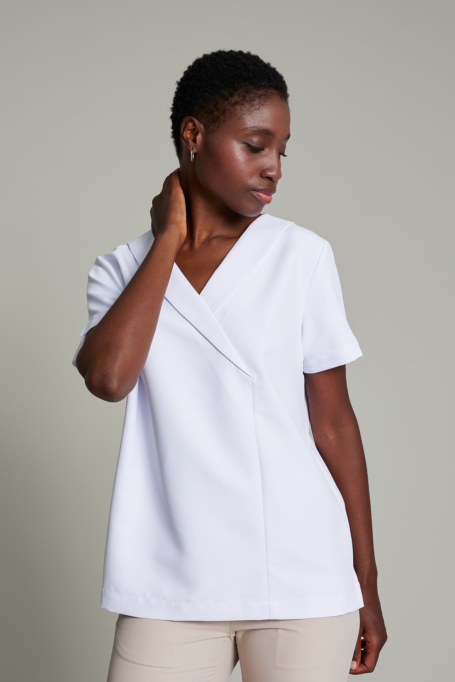 La túnica Alice de mujer en color beige ha sido diseñada para profesionales del sector de limpieza, camareras/os de pisos u otras funciones que requieren máxima movilidad y confort. Fabricada en 100% poliéster, este modelo combina un diseño funcional con una estética cuidada que se aleja del típico uniforme convencional. Gracias a su gramaje de 150 g/m², proporciona la ligereza necesaria para moverse con libertad sin comprometer la durabilidad de la prenda. Su tejido técnico facilita la evacuación de la humedad, manteniendo la piel seca y libre de olores incluso en turnos prolongados. El acabado sin arrugas y de secado rápido elimina la necesidad de plancha, haciendo de esta prenda una opción ideal para el uso diario intensivo. Una propuesta pensada para profesionales que buscan uniformes que sean cómodos, funcionales y con estilo