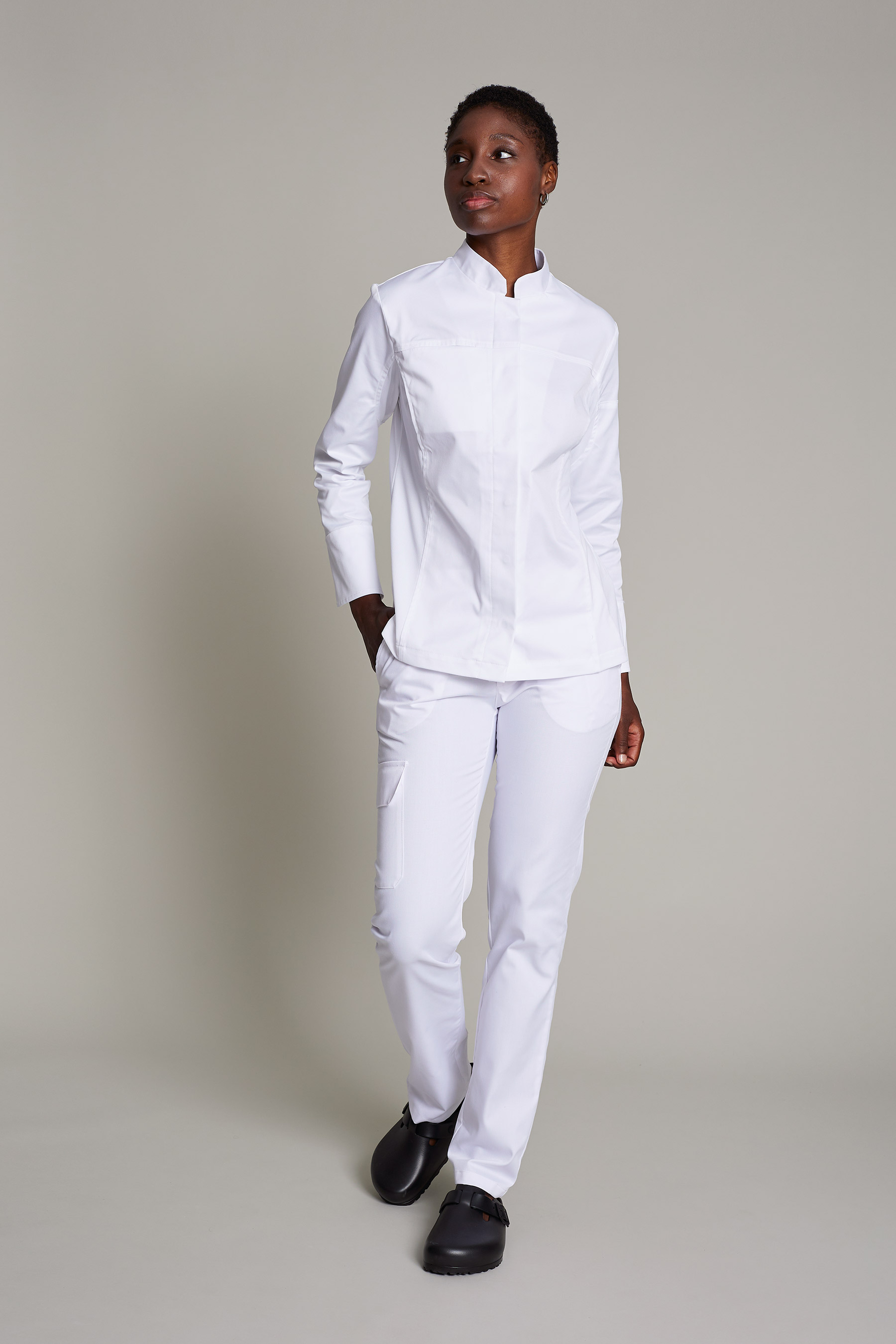 Nuestras chaquetas (en color blanco) y pantalones de chef en colores blanco y negro (con opciones para hombre, mujer y unisex) combinan la tradición con un toque fresco y actual.