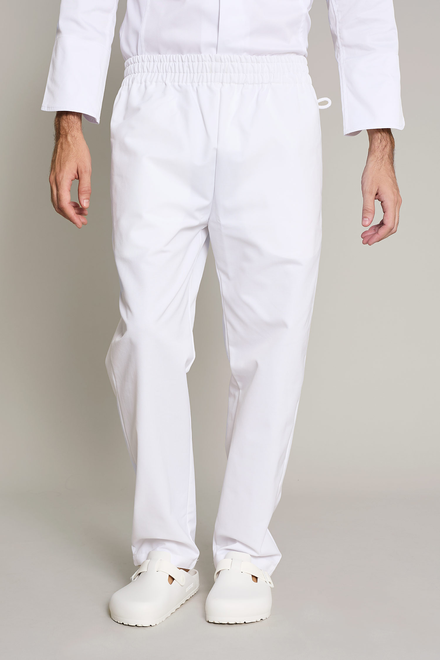 Pantalón de goma unisex en color blanco, que ofrece un máximo confort y libertad de movimiento