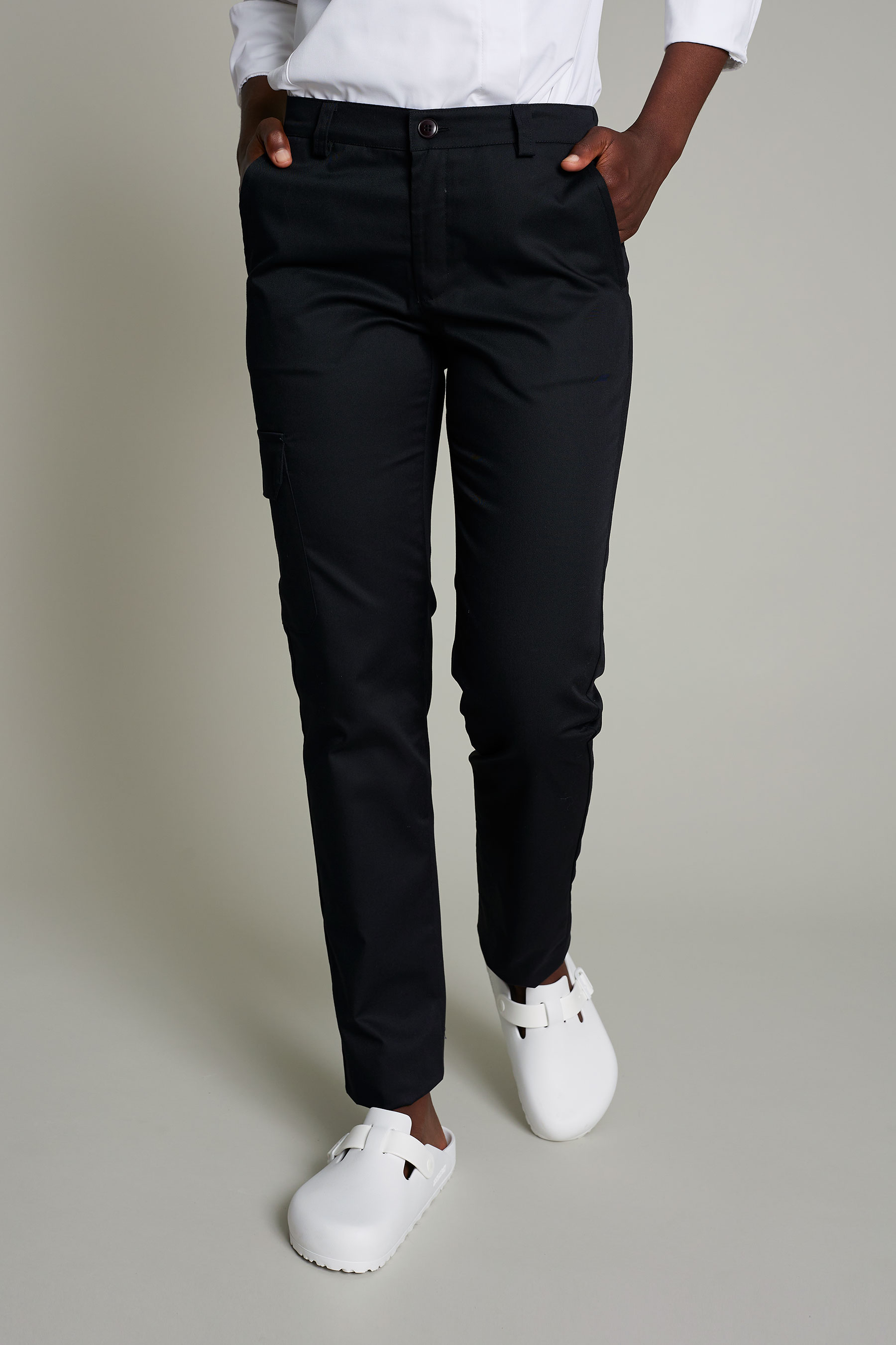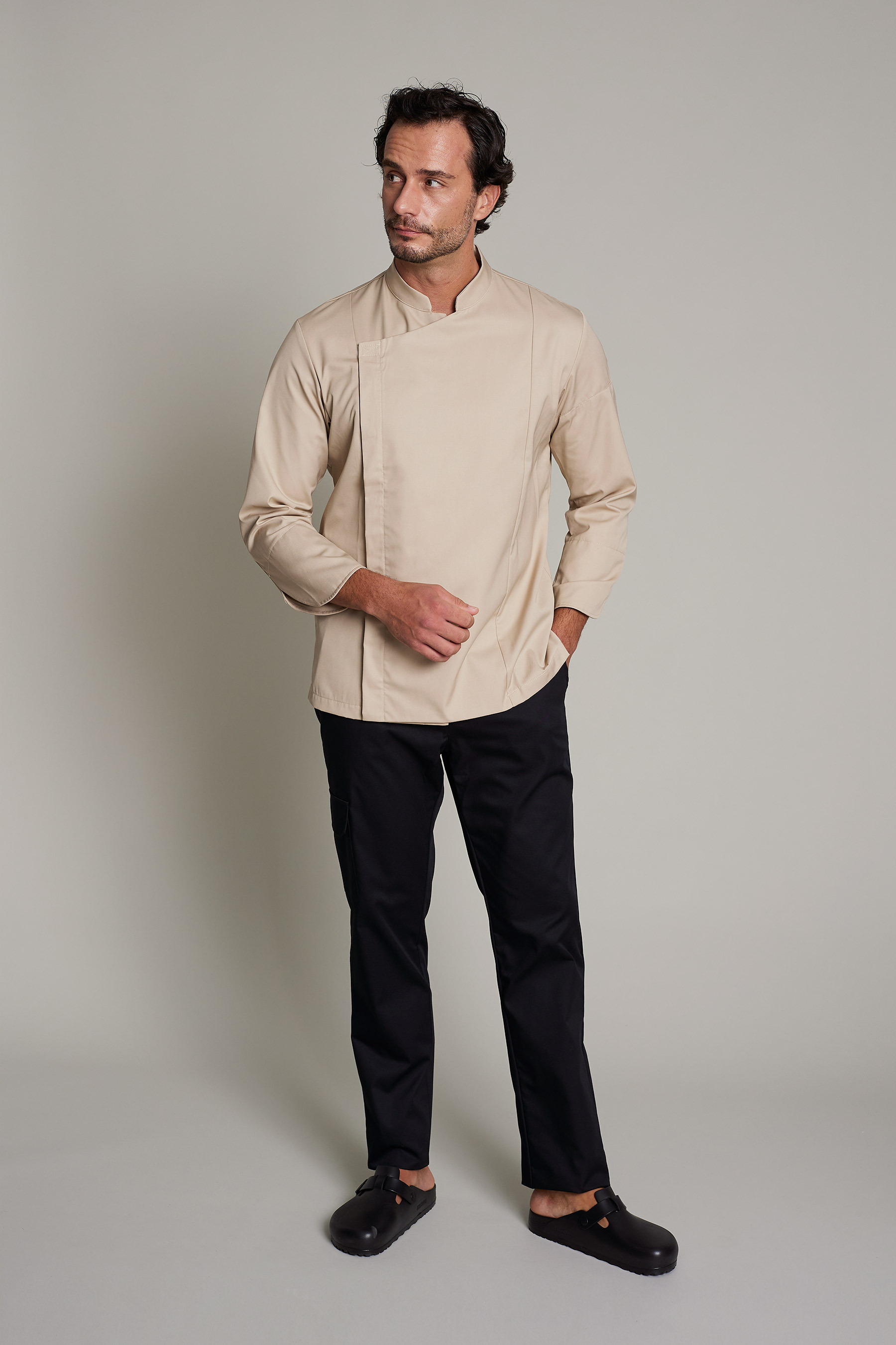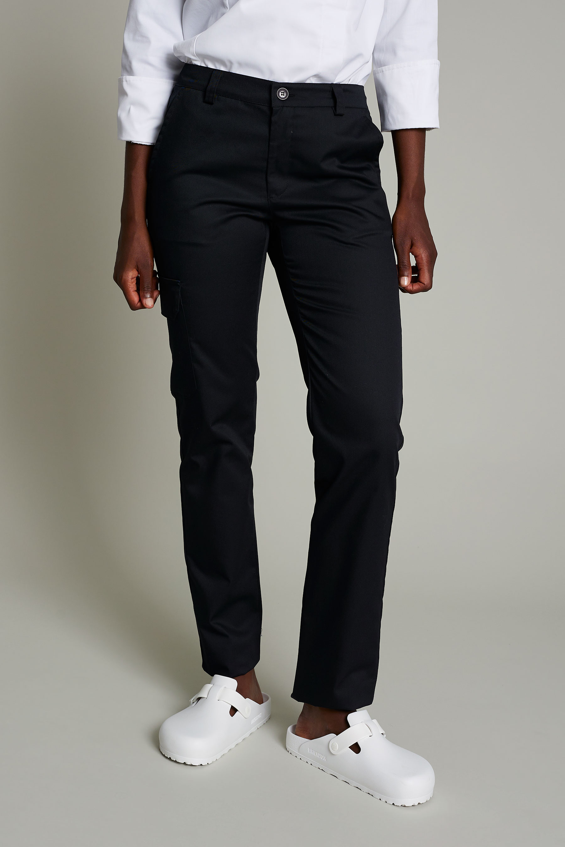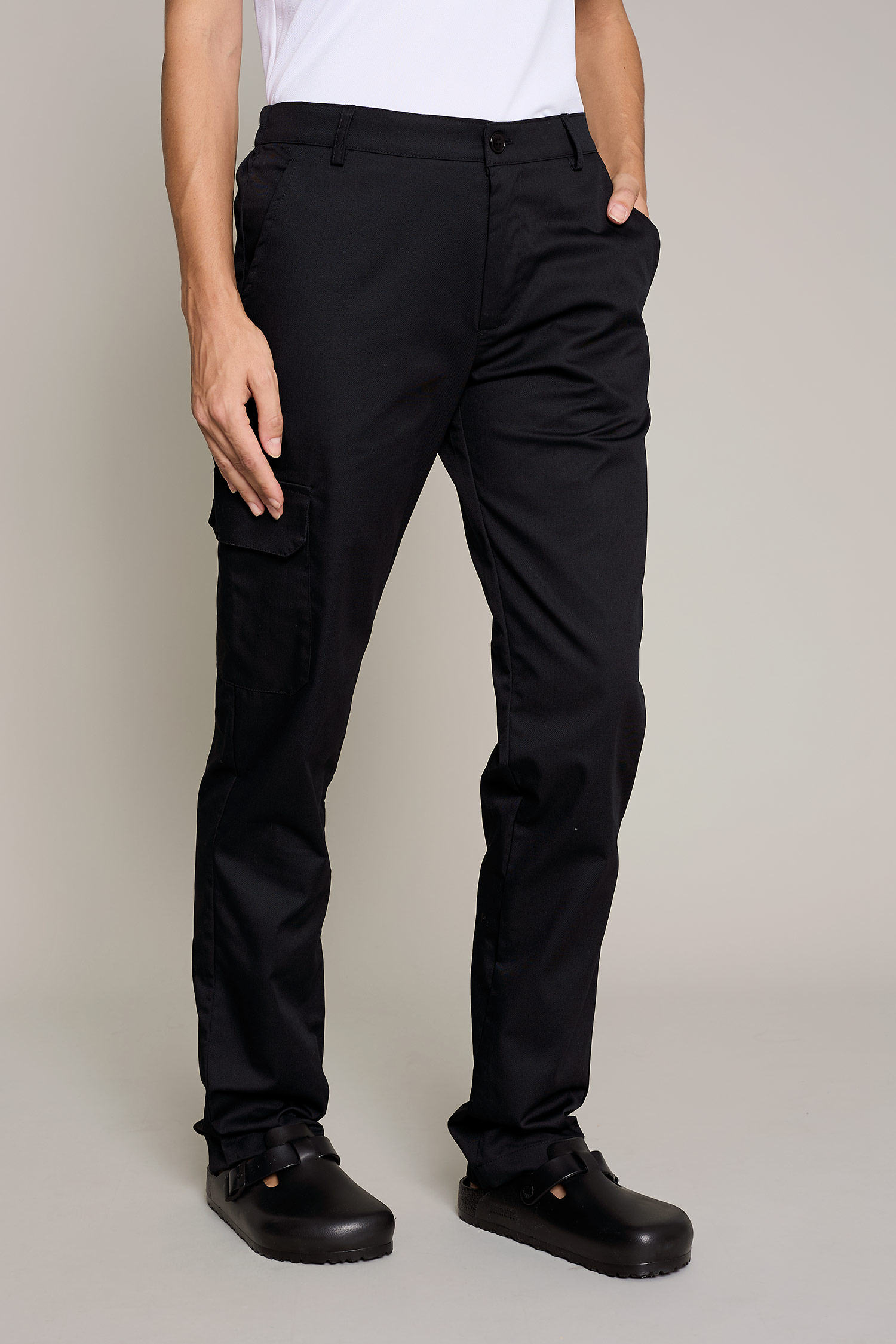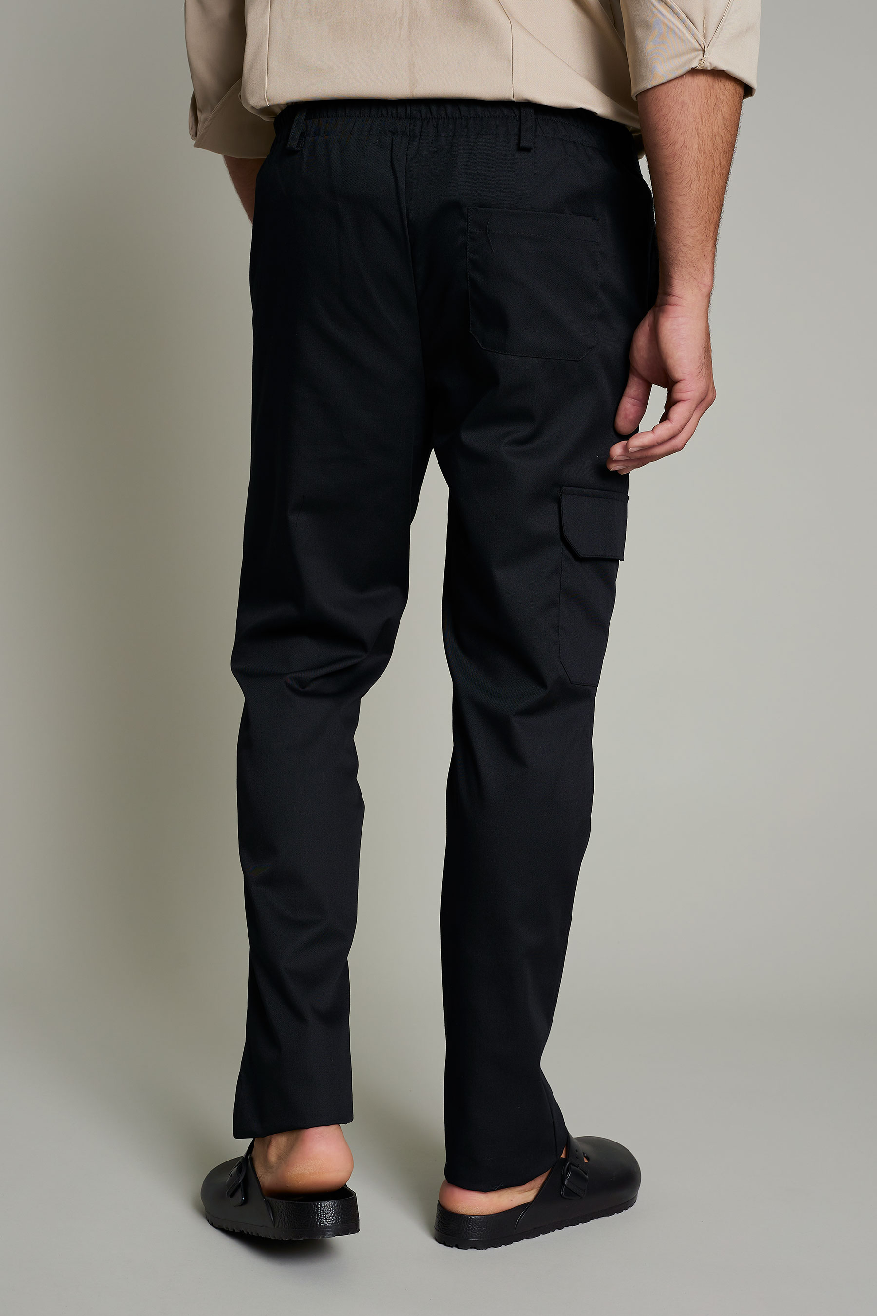 El pantalón de cocina unisex de color negro, diseñado para chefs y profesionales que valoran la funcionalidad sin perder estilo. Su media cintura elástica garantiza un ajuste perfecto y libertad de movimiento durante toda la jornada. Confeccionado en tejido técnico de 65% poliéster 35% algodón con un gramaje de 200 g/m², es resistente al uso intensivo, transpirable y fácil de mantener. Incluye certificación OEKO-TEX Standard 100, garantizando el contacto con la piel. Un básico, cómodo, duradero y esencial para cualquier cocina profesional