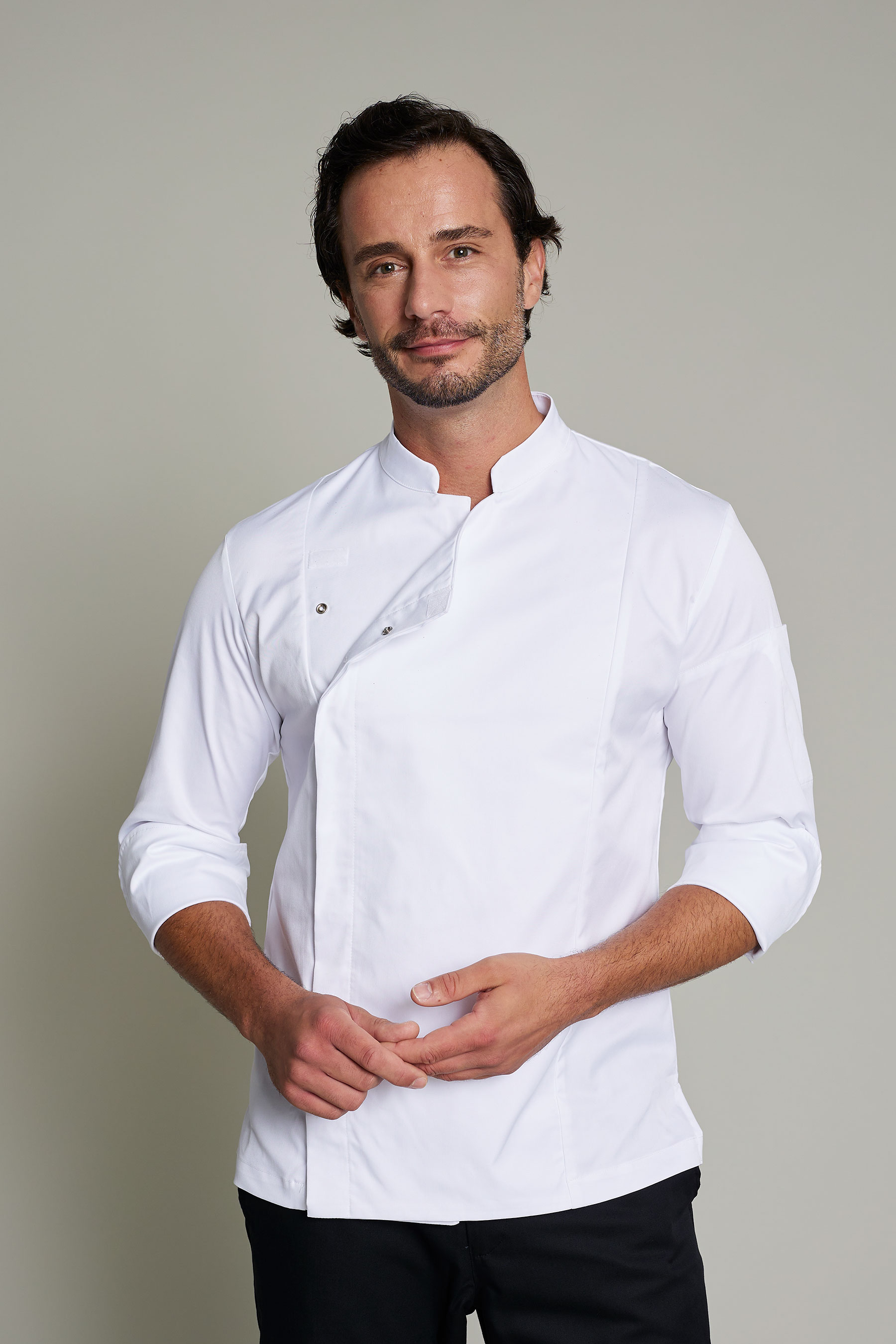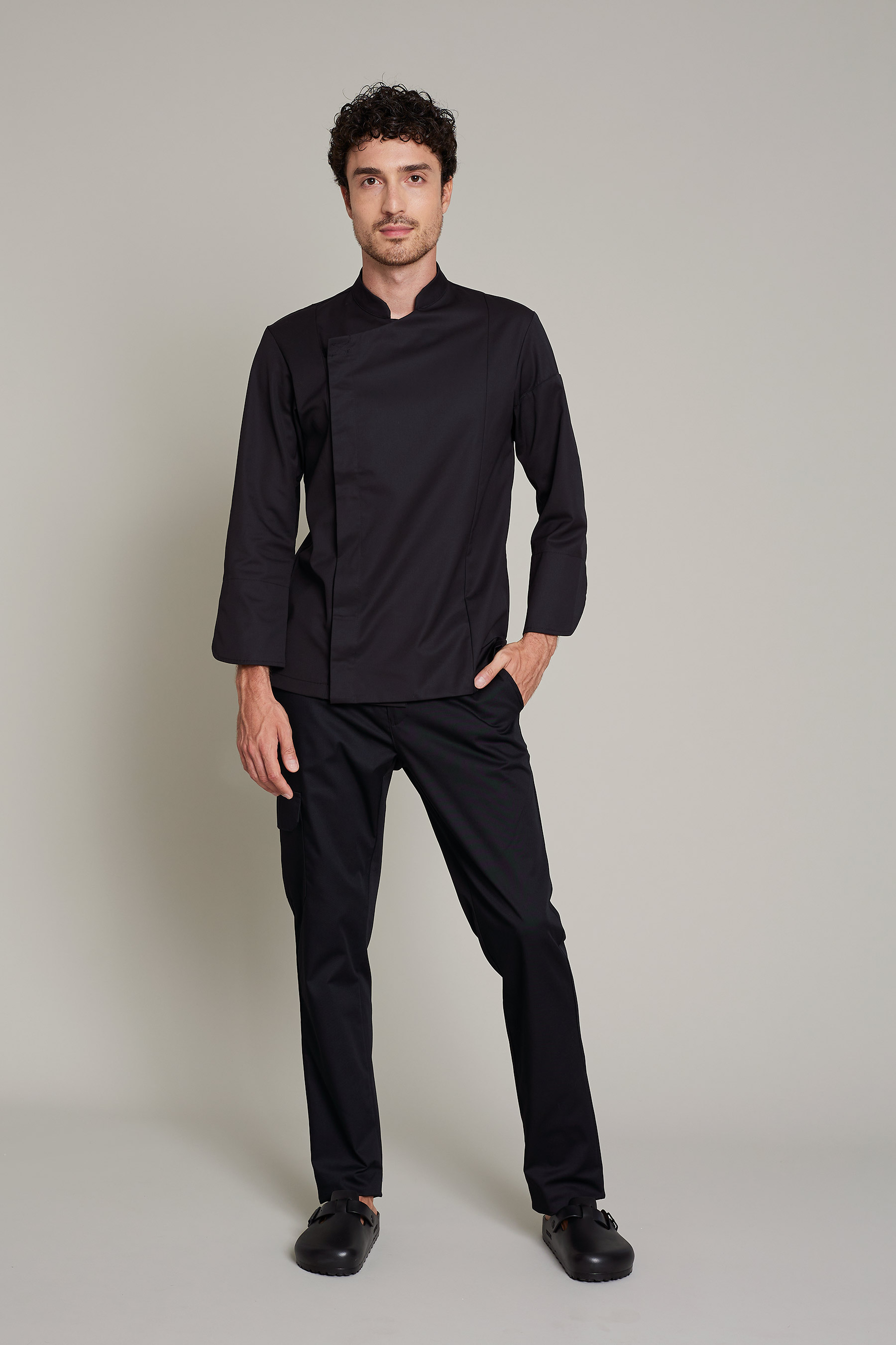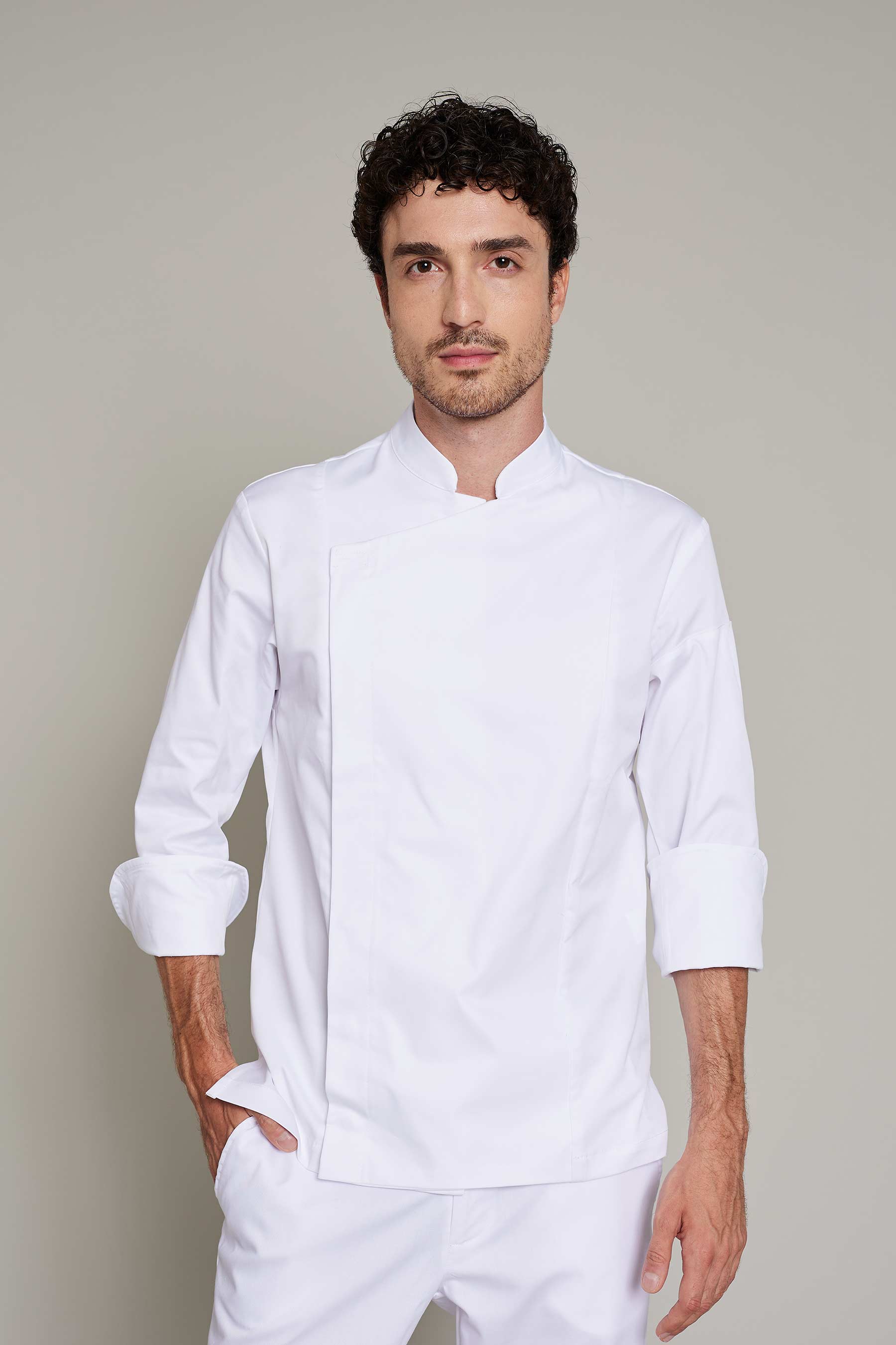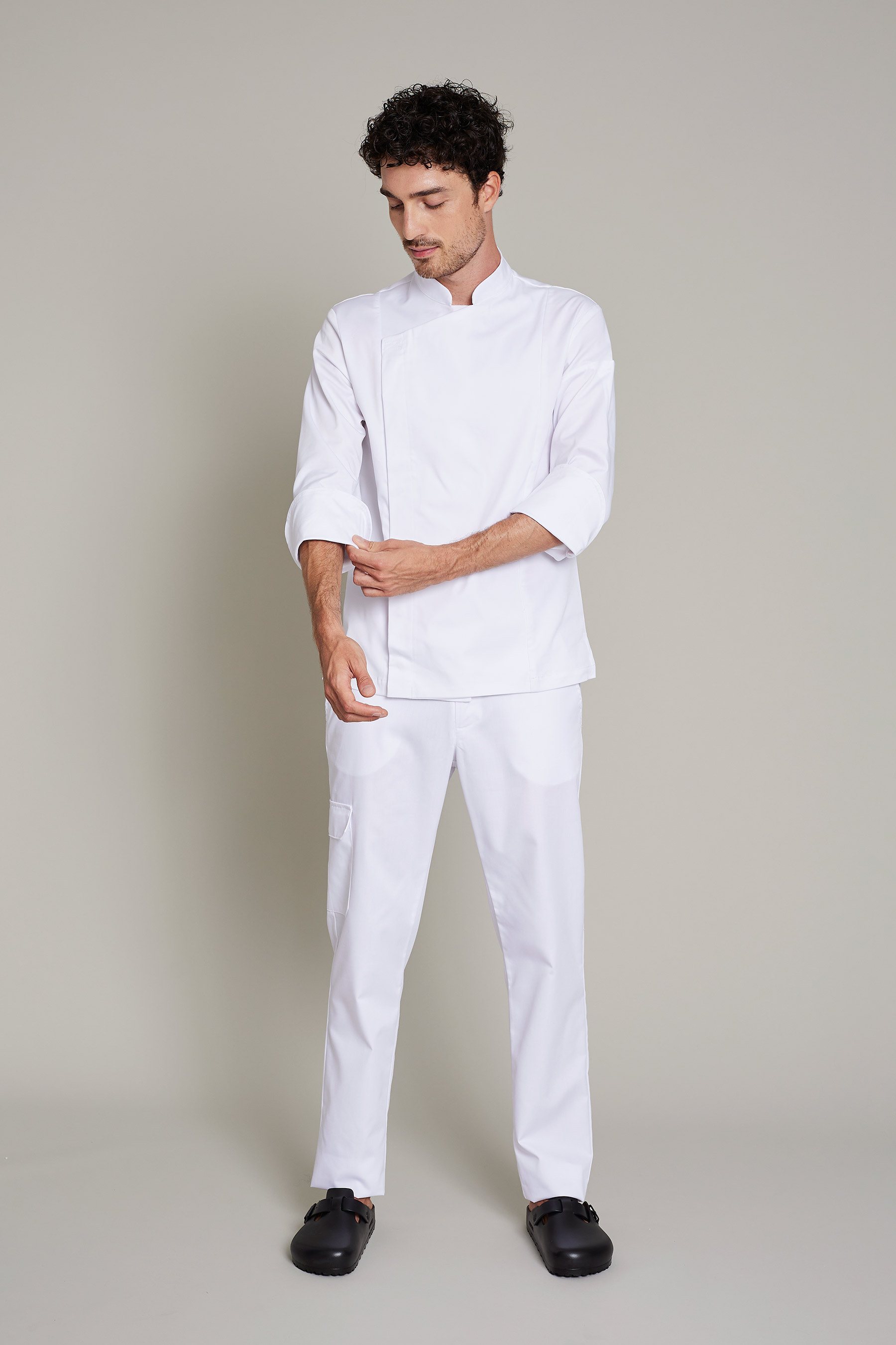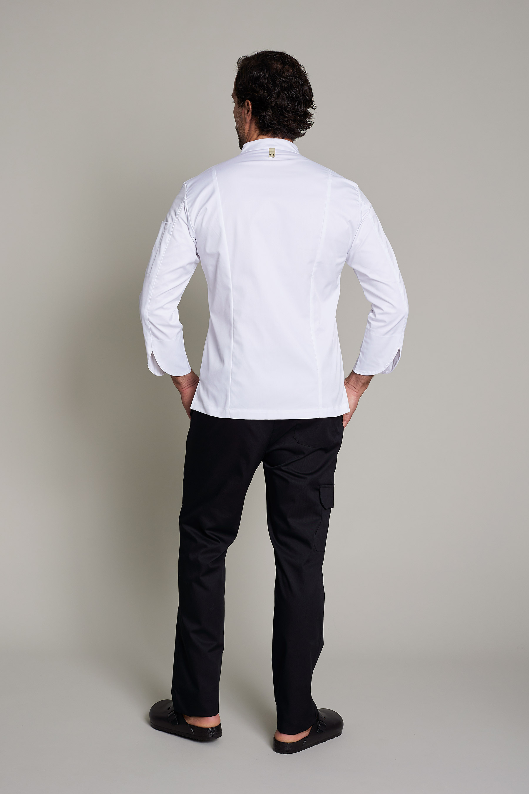 La casaca de cocina de hombre en color blanco, ha sido diseñada para profesionales del sector de cocinas que requieren máxima movilidad y confort. Fabricada en 50% algodón orgánico 50% poliéster reciclado, este modelo combina un diseño funcional y sostenible. Gracias a su gramaje de 180 g/m², proporciona la ligereza necesaria para moverse con libertad sin comprometer la durabilidad de la prenda. El uso de poliéster reciclado refuerza el compromiso con la sostenibilidad sin sacrificar rendimiento. La certificación OEKO-TEX Standard 100 asegura una prenda libre de sustancias nocivas. Su tejido técnico facilita la evacuación de la humedad, manteniendo la piel seca y libre de olores incluso en turnos prolongados. Una propuesta pensada para profesionales que buscan uniformes que sean cómodos, funcionales y con estilo