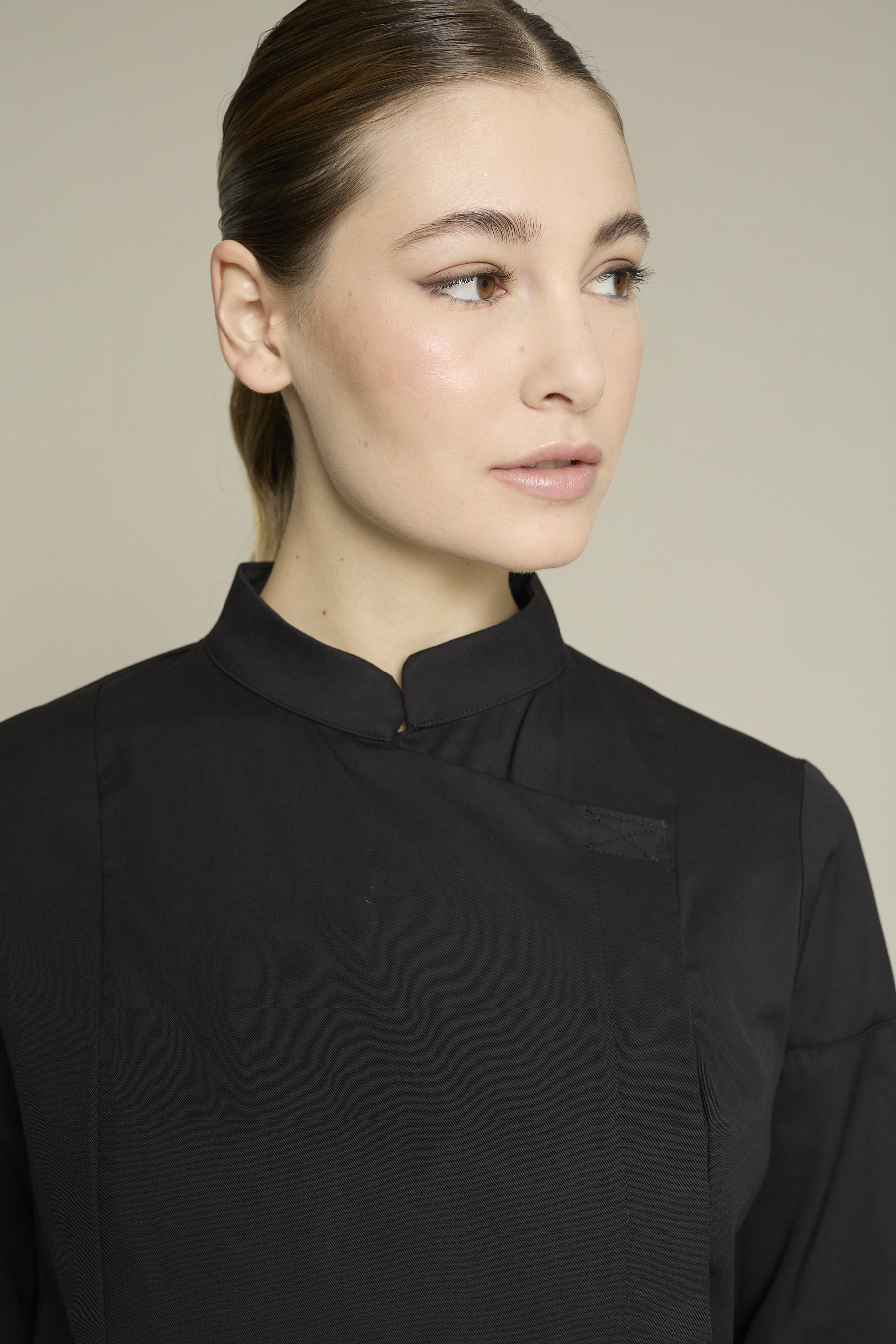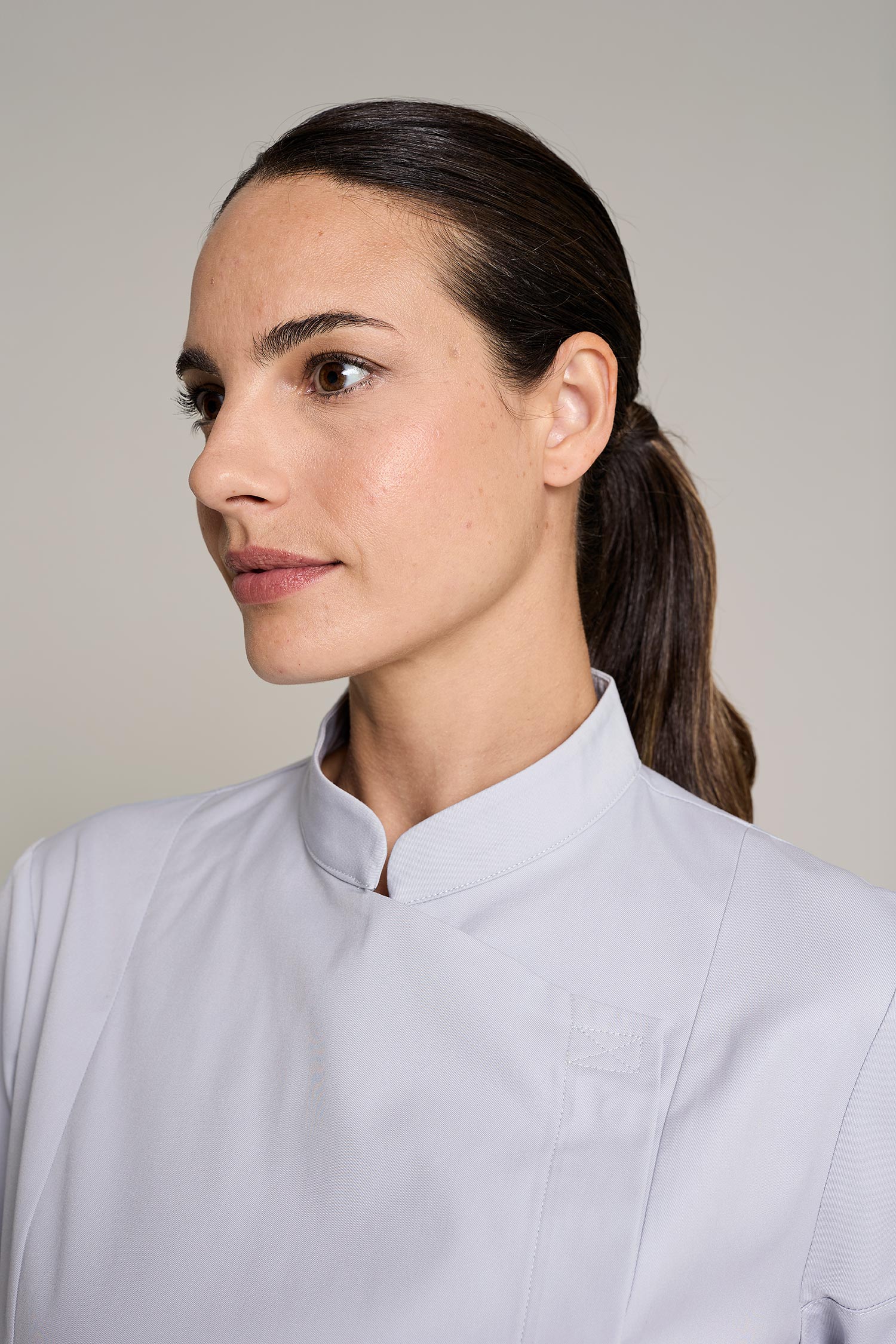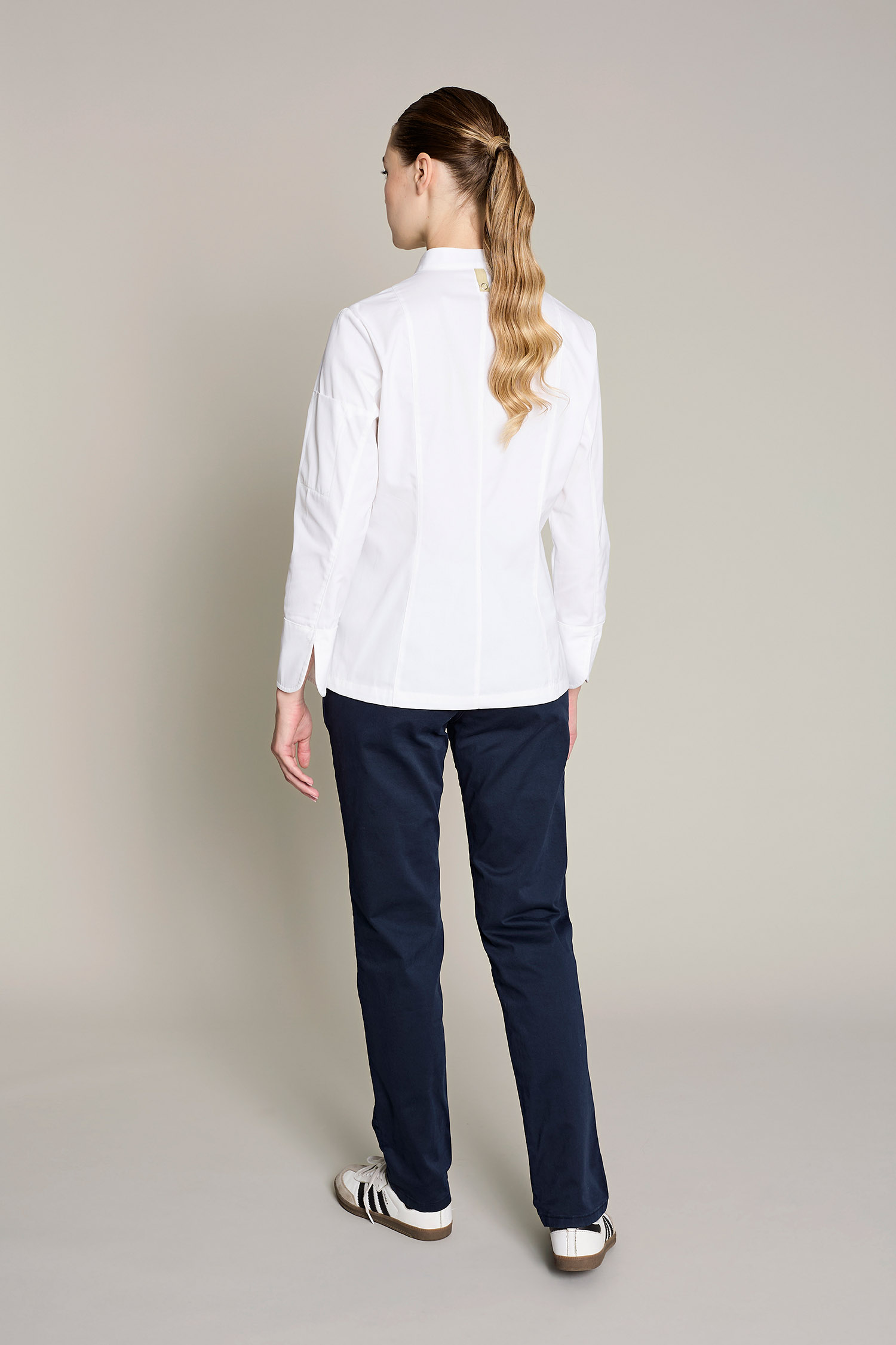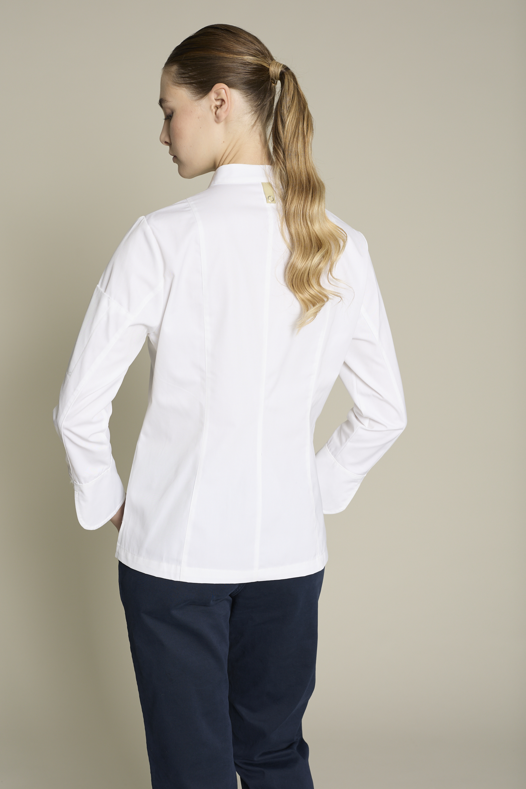 La casaca gotland premium para mujer en color blanco, combina funcionalidad y sostenibilidad. Diseñada para chefs que buscan alto rendimiento con conciencia ecológica. Confeccionada con 50% algodón orgánico 50% poliéster reciclado post-consumo, su gramaje de 180 g/m² ofrece suavidad, frescura y resistencia. Cuenta con cuello mao moderno, cierre cruzado y diseño ergonómico para máxima movilidad. Certificaciones GRS y OEKO-TEX Standard 100, que garantizan seguridad, sostenibilidad y calidad