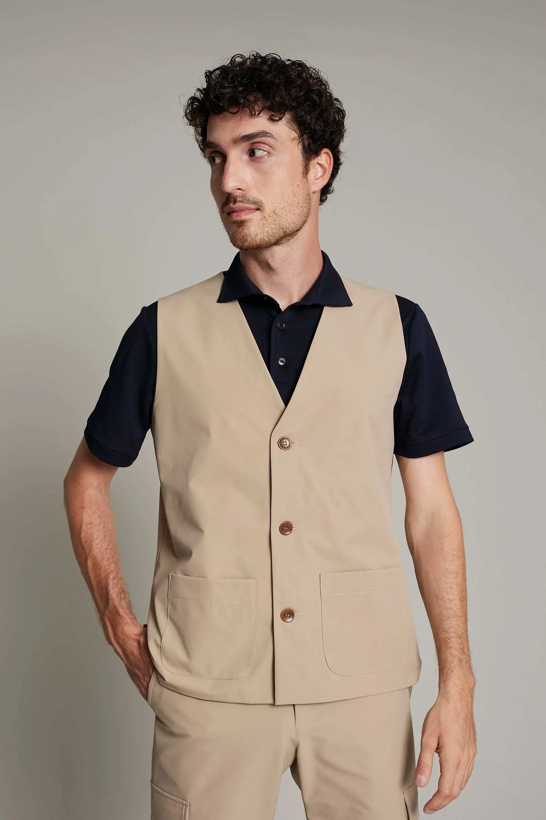 El Polo Italiano para hombre en azul combina elegancia y sostenibilidad. El cuello italiano con tapeta de tres botones añade un toque de sofisticación, mientras que la ligereza del tejido (180 g/m²) garantiza libertad de movimiento. Acabado premium, fácil mantenimiento y sin arrugas (no necesita plancha).