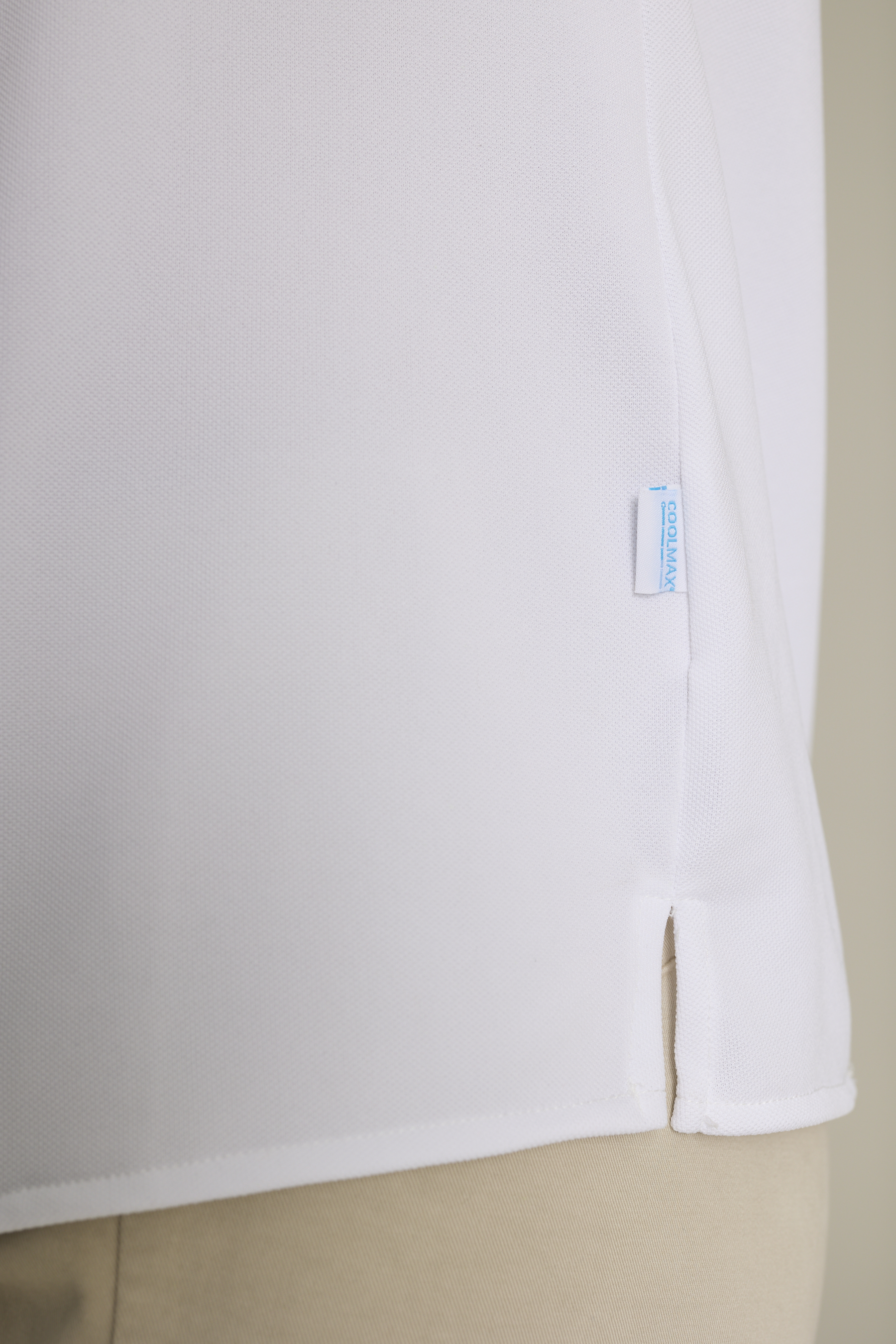 La camisa Milano en blanco está diseñada con tejido técnico Coolmax reciclado, ideal para quienes buscan transpirabilidad y confort. No requiere plancha.