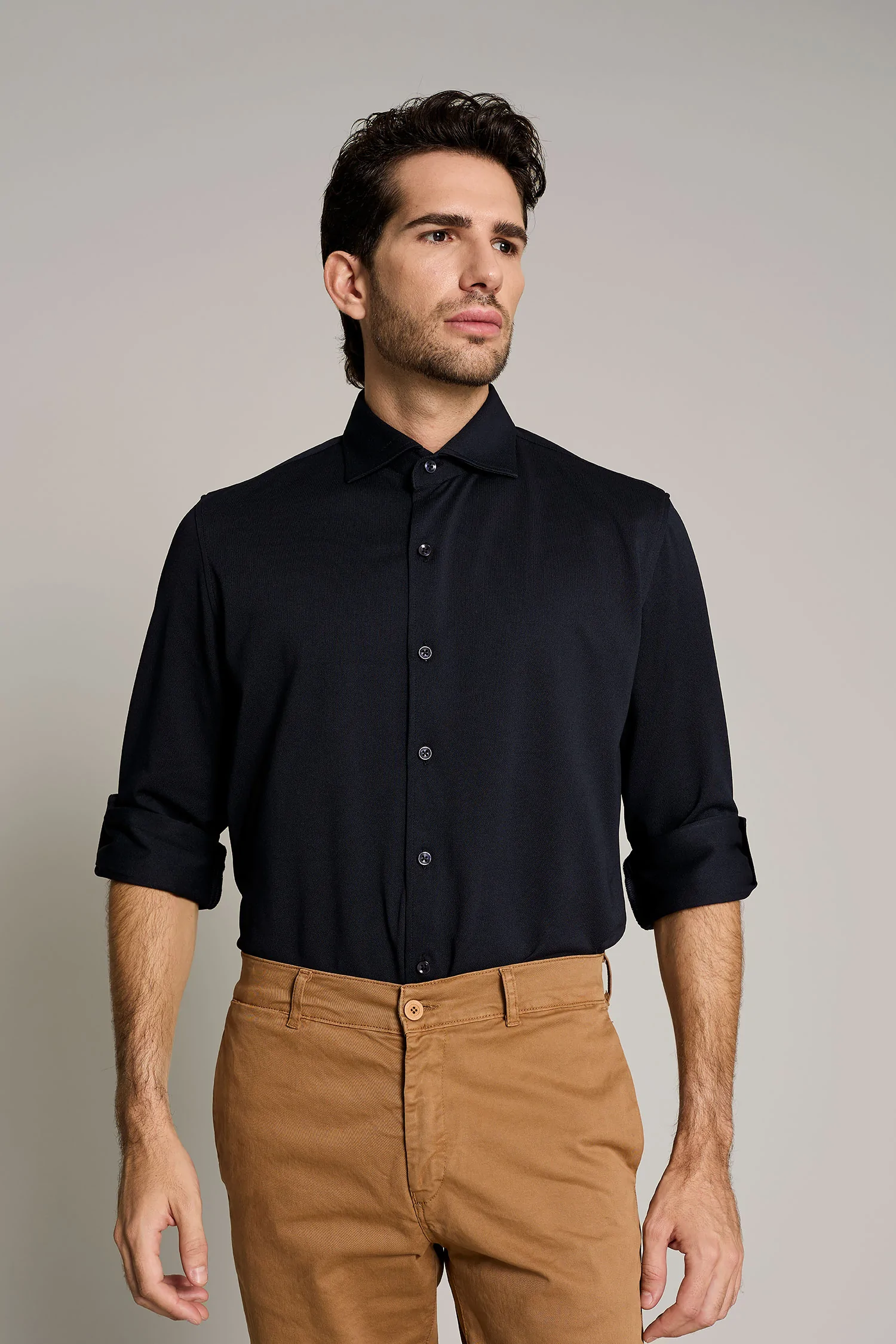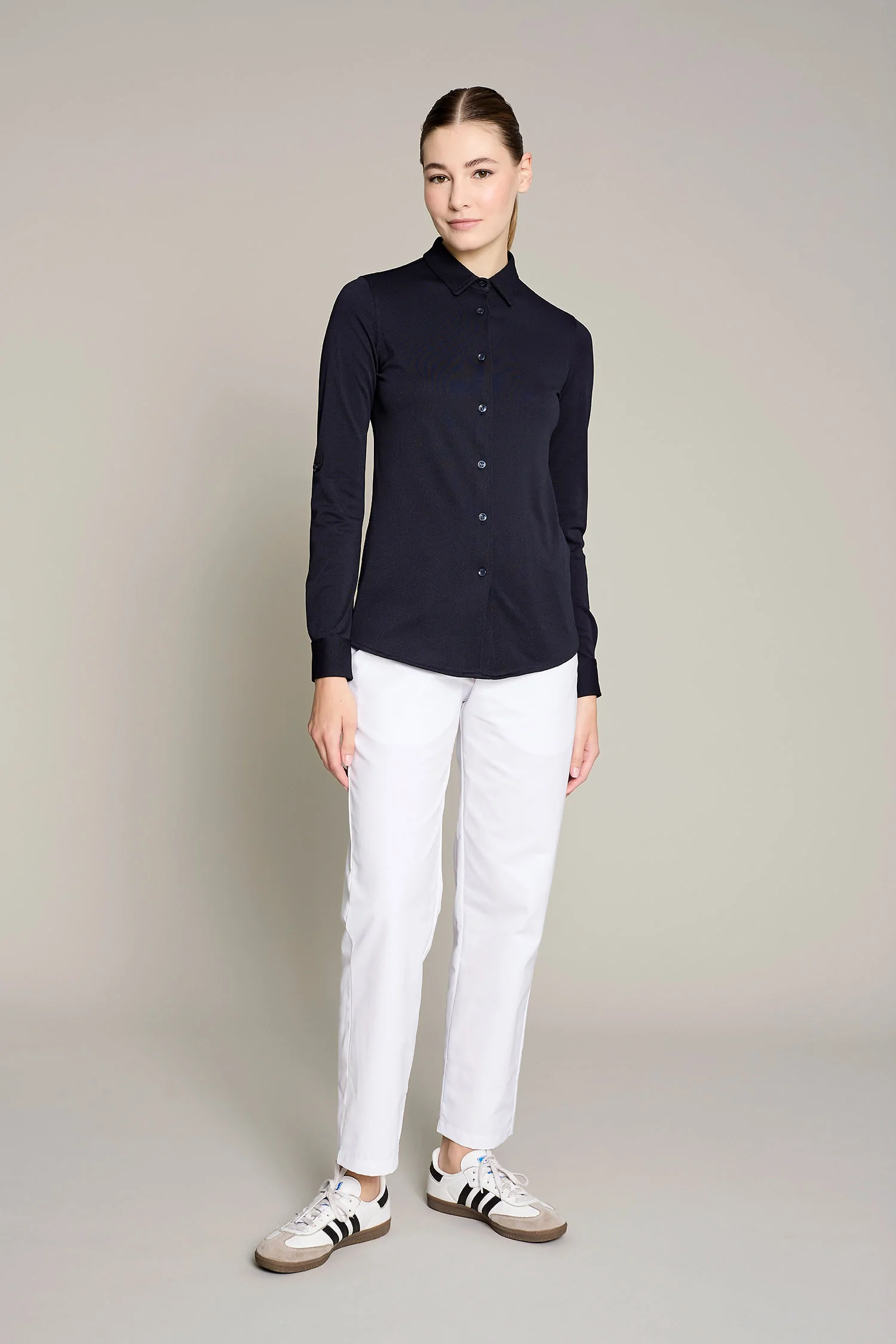 Su diseño incluye cuello camisero y puños con abertura para mayor comodidad. Acabado premium, fácil mantenimiento y sin arrugas (no necesita plancha).