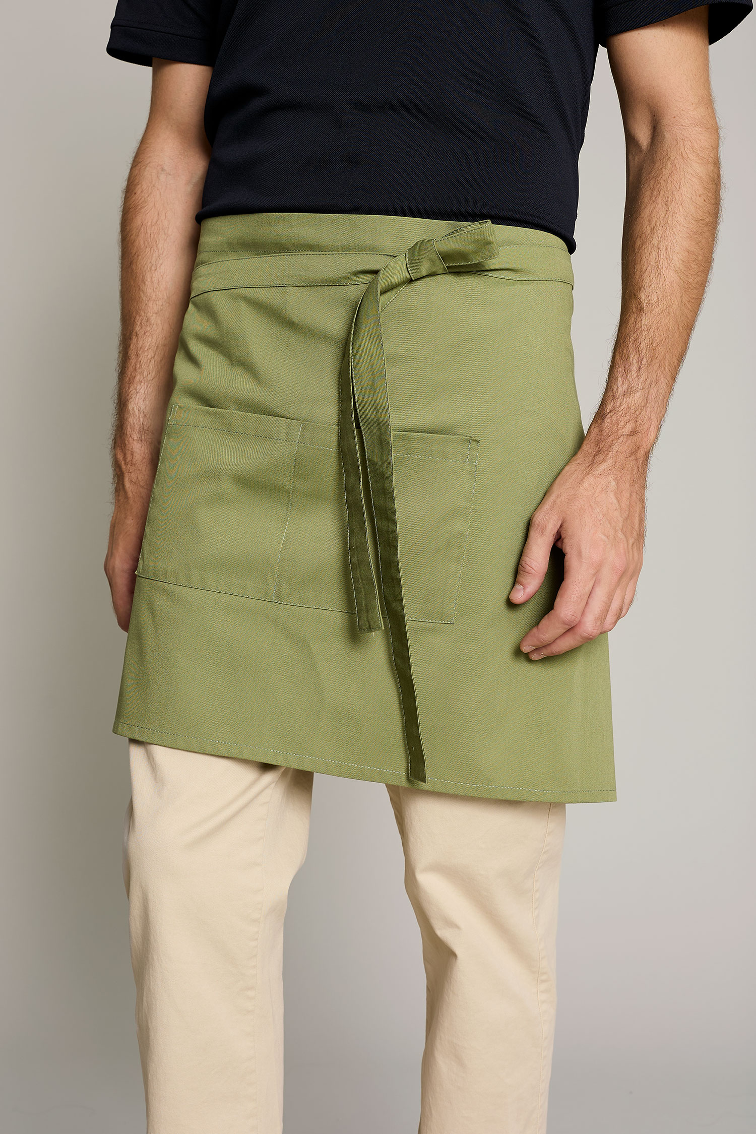 El mandil corto unisex en color verde está diseñado para ofrecer funcionalidad y estilo en entornos profesionales exigentes. Confeccionado en un tejido mezcla de 35% algodón y 65% poliéster, asegura durabilidad y rendimiento en largas jornadas laborales. Su diseño práctico incluye un doble bolsillo frontal tipo plastrón, ideal para mantener accesorios al alcance de la mano. Como parte de nuestra Colección Delantales con Propósito, este delantal se produce en talleres sociales Km 0 en colaboración con la Fundación Roure. Cada compra apoya la inclusión laboral de personas en situación vulnerable, contribuyendo a un impacto social positivo y significativo