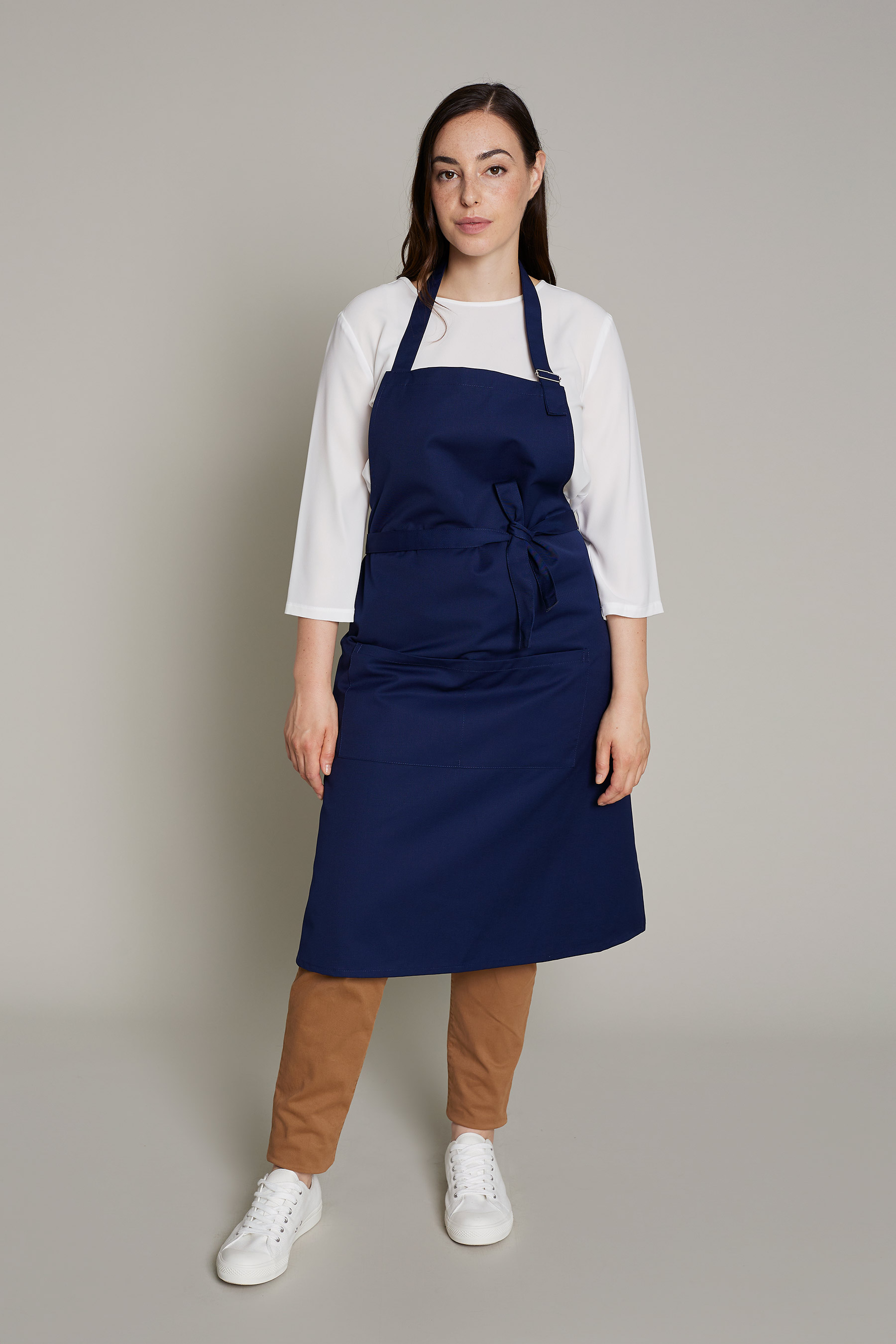 Mandil corto unisex en color caldera con doble bolsillo tipo plastrón. Elaborado en talleres sociales Km 0 para generar impacto positivo