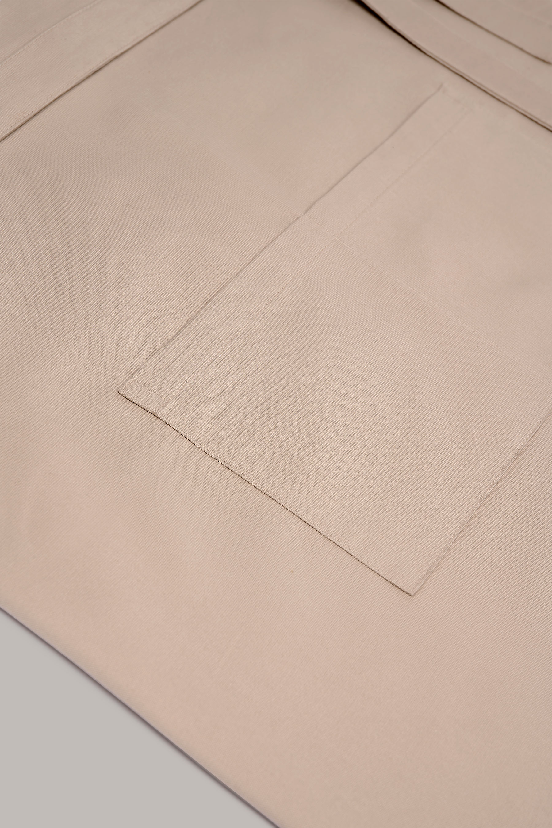 Mandil corto color lino-piedra con bolsillo doble central. Tejido sostenible con impacto social positivo
