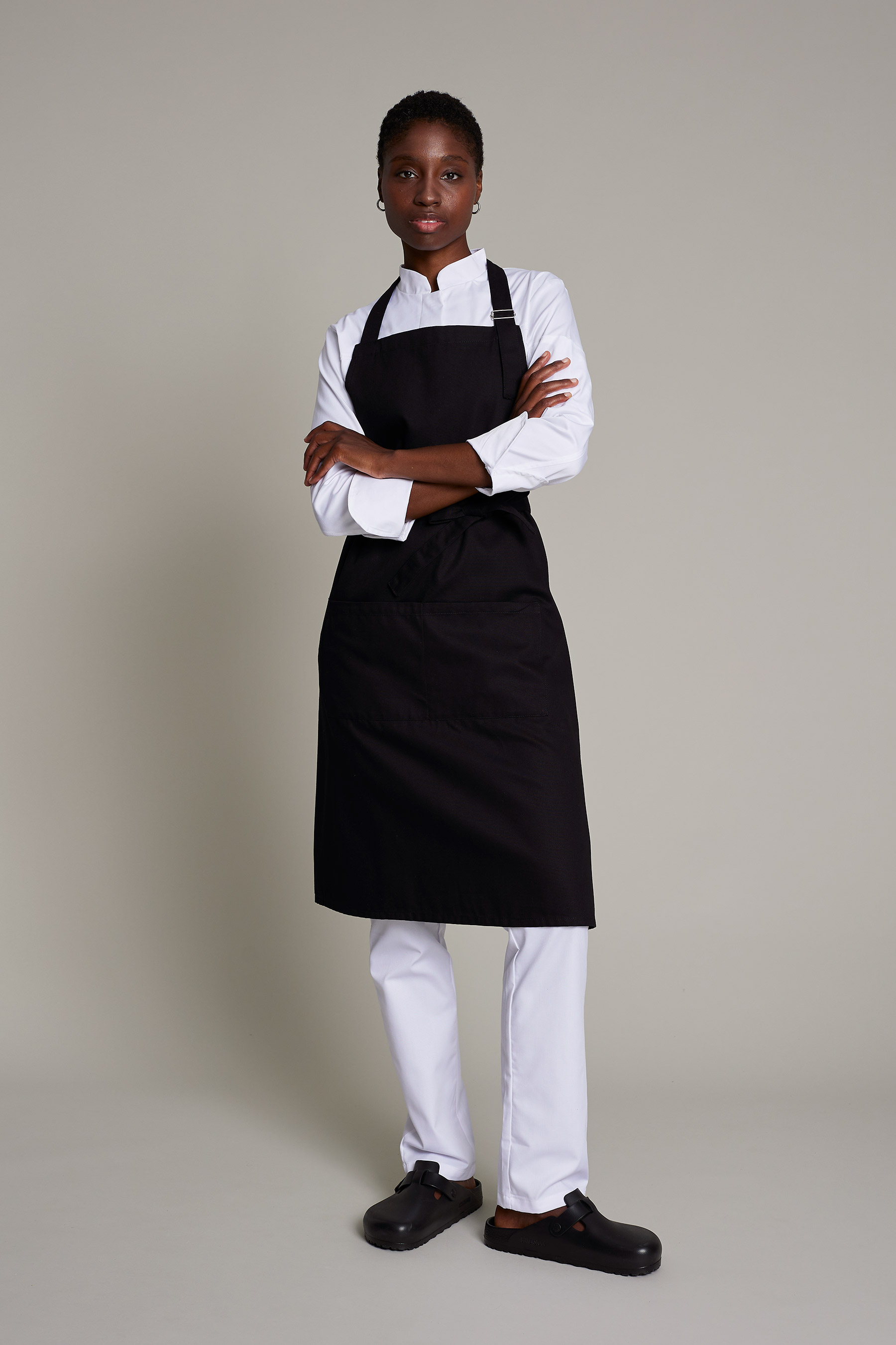 Delantal caldera con hebilla ajustable, doble bolsillo frontal y propósito social. Comodidad y estilo en entornos laborales