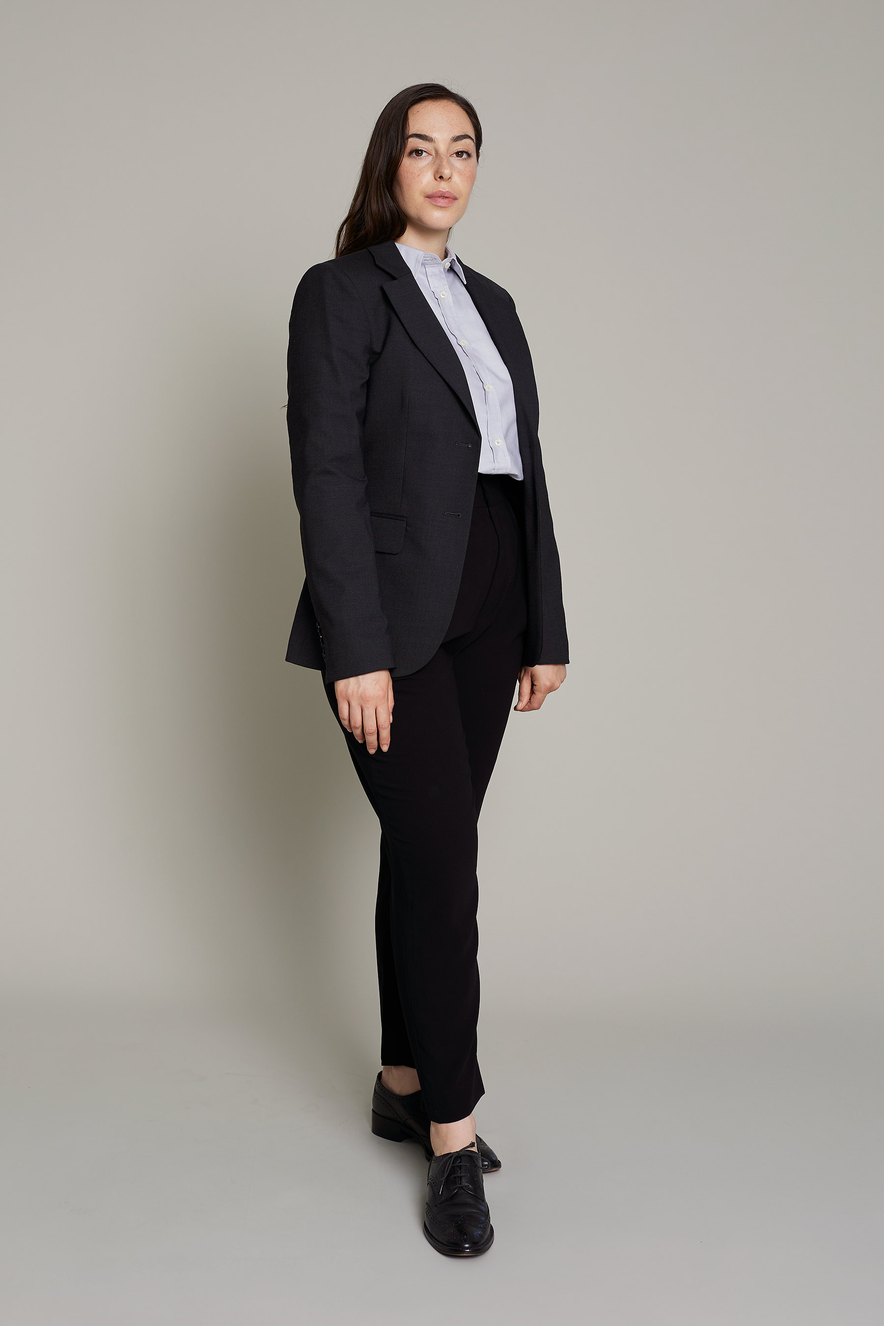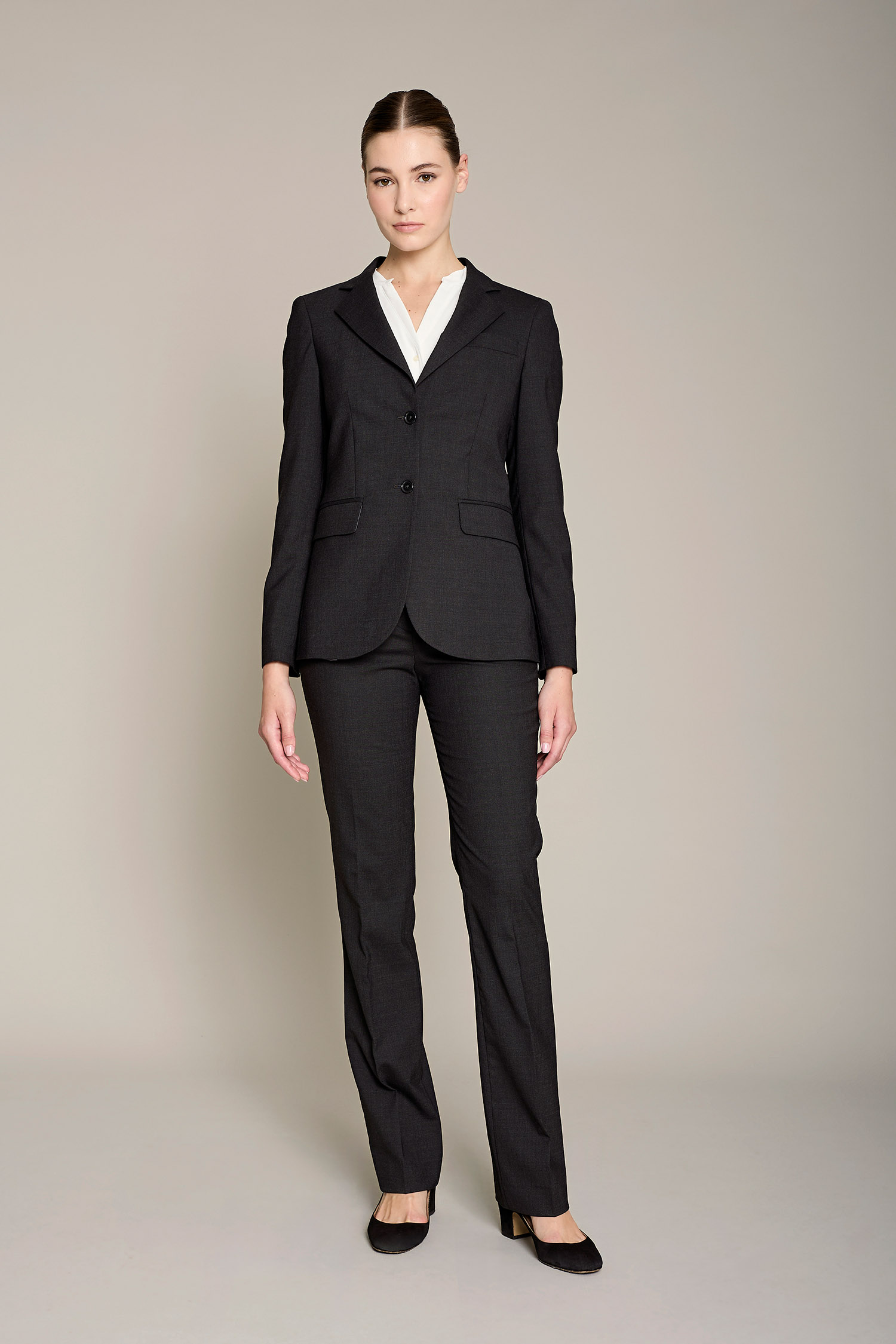 La americana sastre de mujer en color gris, tiene cuello mao y es una prenda diseñada para profesionales que buscan estilo y confort sin comprometer la funcionalidad. Su diseño moderno y tejido técnico permiten una gran libertad de movimiento, adaptándose perfectamente a cualquier entorno de trabajo. Con una composición de 44% lana 54% poliéster 2% elastán, esta prenda garantiza transpirabilidad y resistencia al desgaste