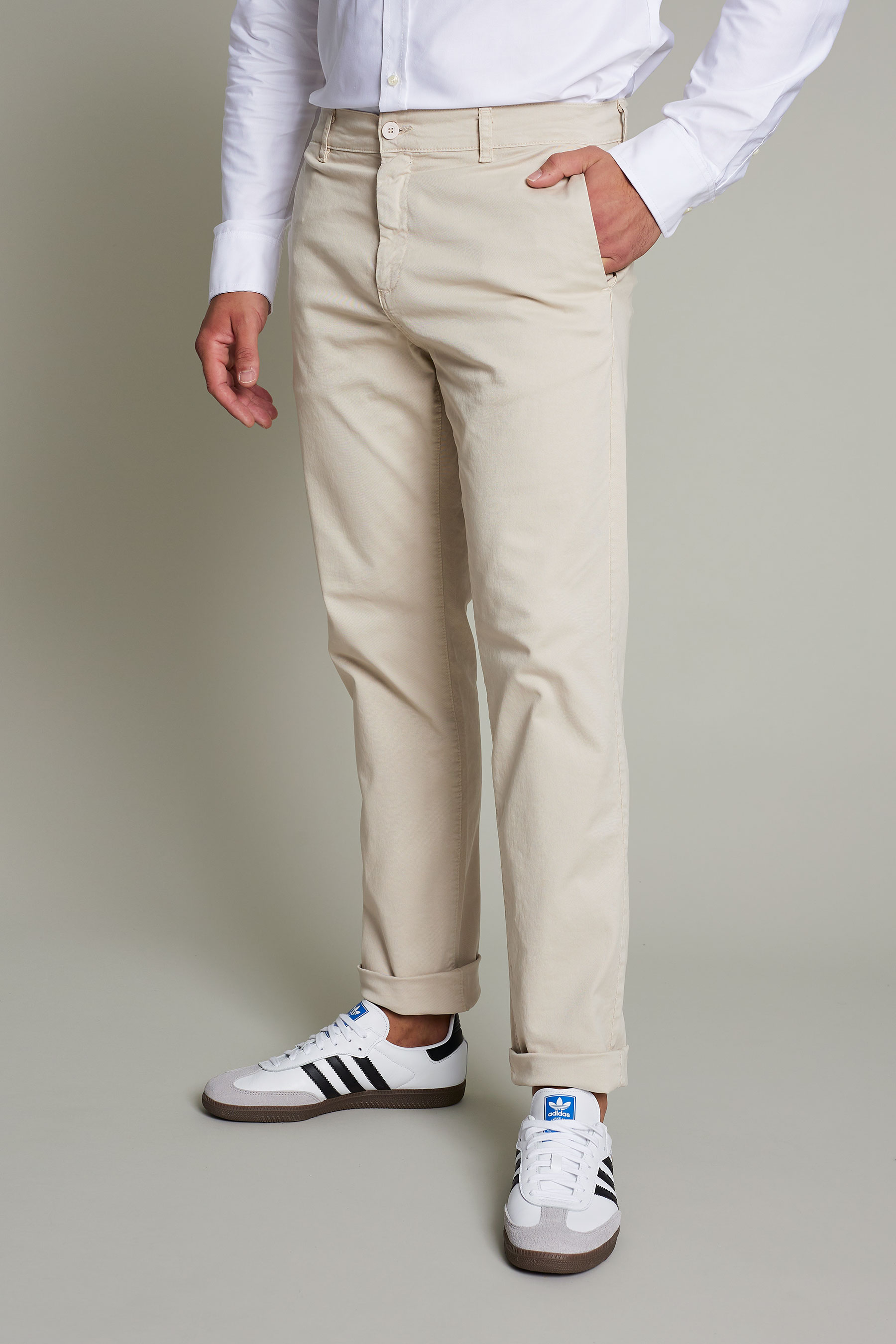 Pantalón chino de hombre en color beige lavado de algodón para un máximo confort y estilo para el trabajo