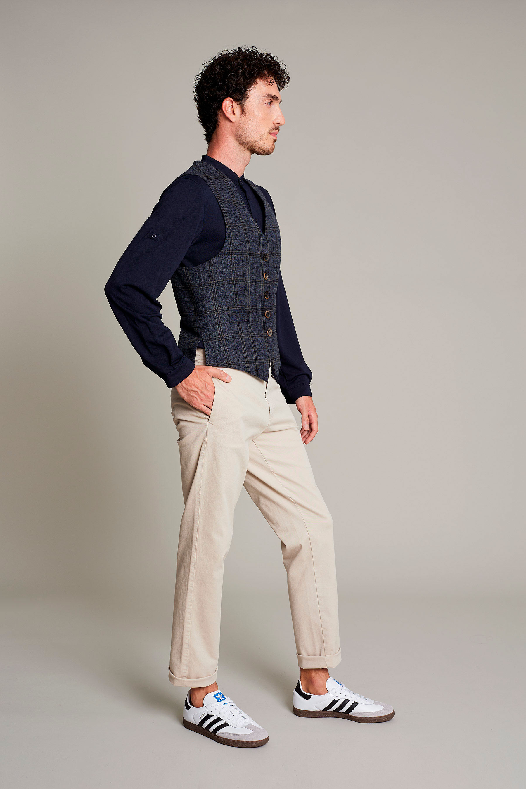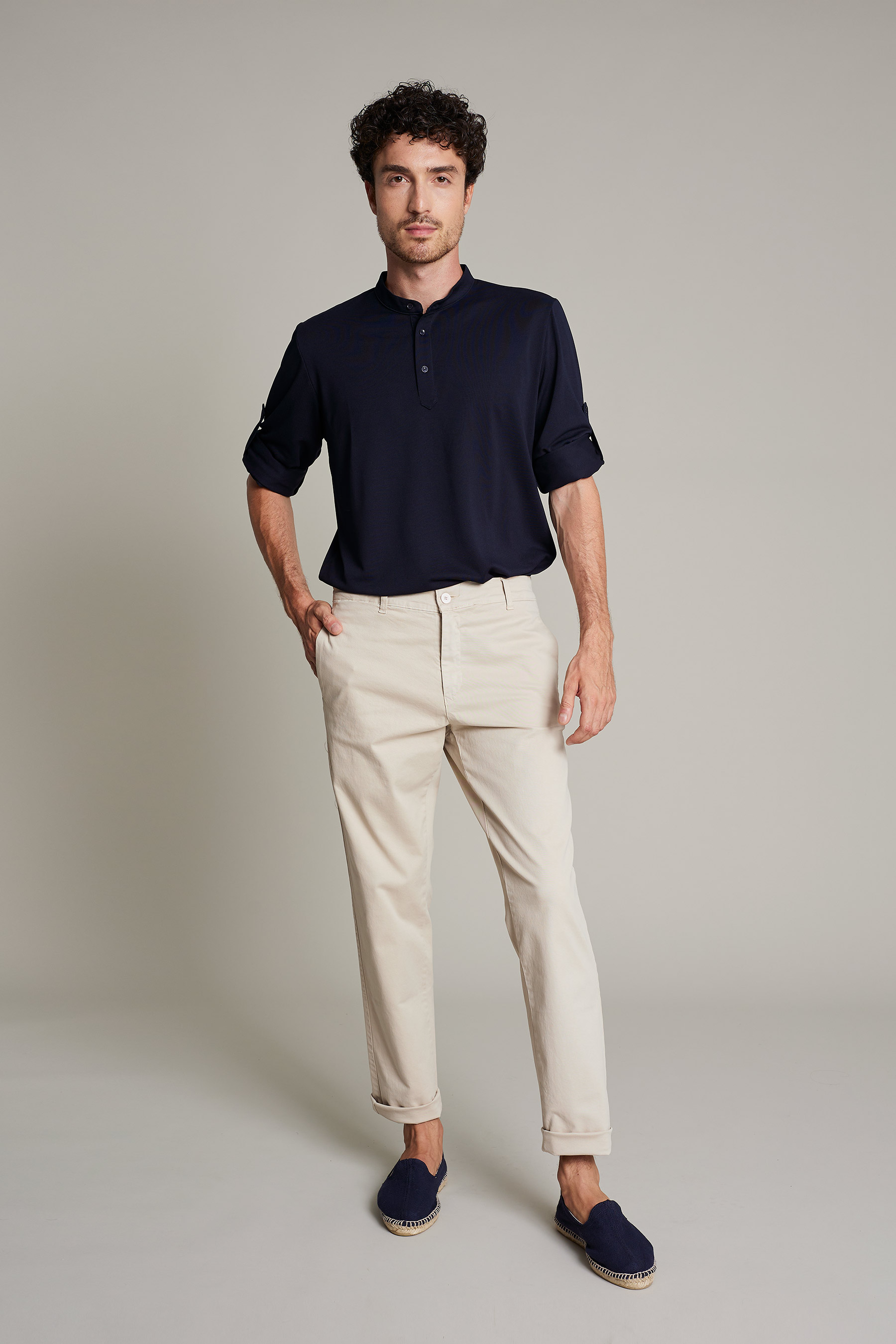 El pantalón chino de hombre lavado beige combina estilo casual y profesional para entornos laborales exigentes. Su confección con 97% algodón 3% elastán lo hace especialmente cómodo, permitiendo moverse con libertad sin perder elegancia. Su corte contemporáneo, adaptable y versátil, lo convierte en una opción ideal tanto para sectores de hostelería como para retail o servicios profesionales. Su gramaje 280 g/m² le otorgan estructura, resistencia y suavidad al tacto. Una prenda esencial diseñada y estética atemporal
