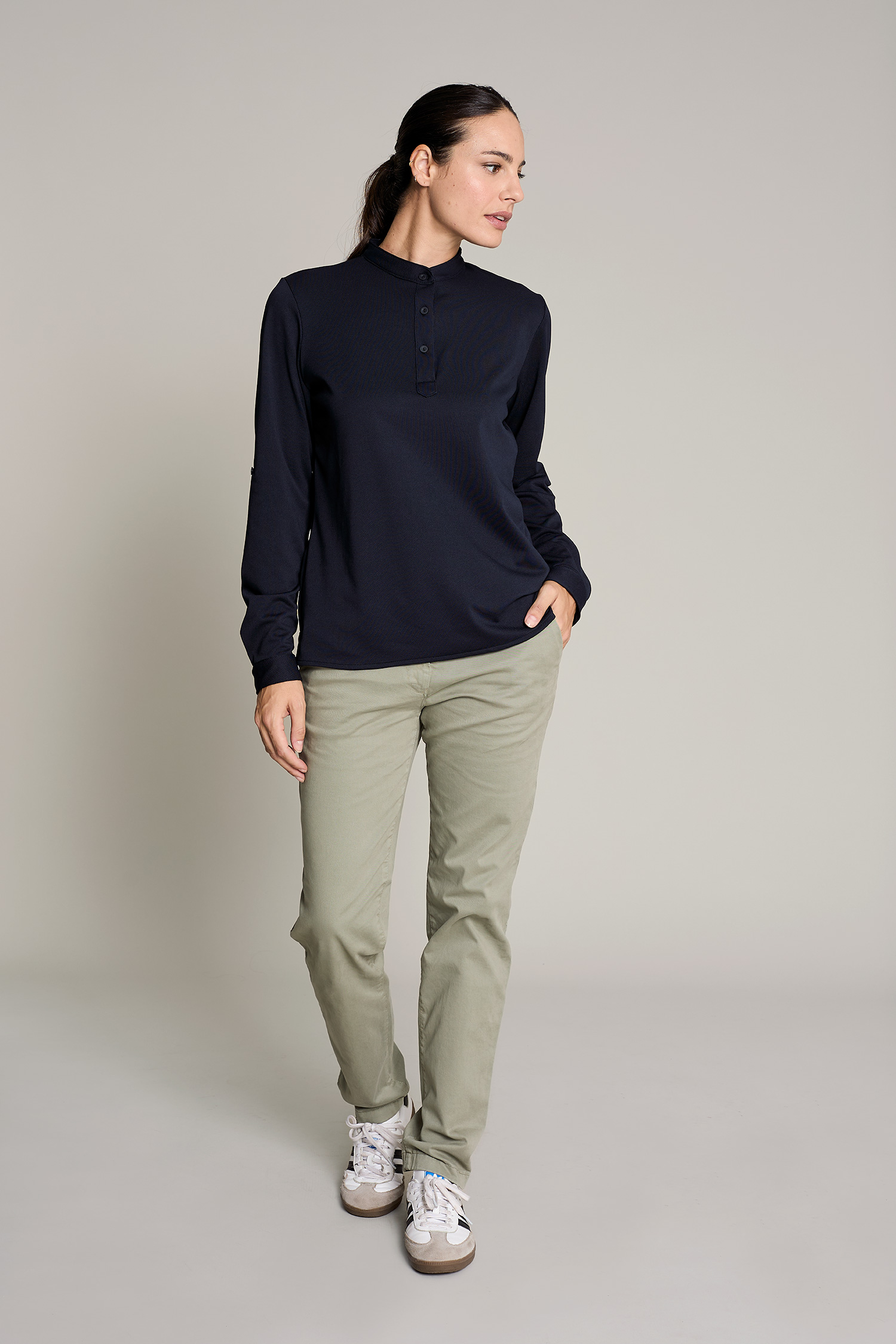 Pantalón chino de mujer en color verde lavado de algodón para un máximo confort y estilo para el trabajo