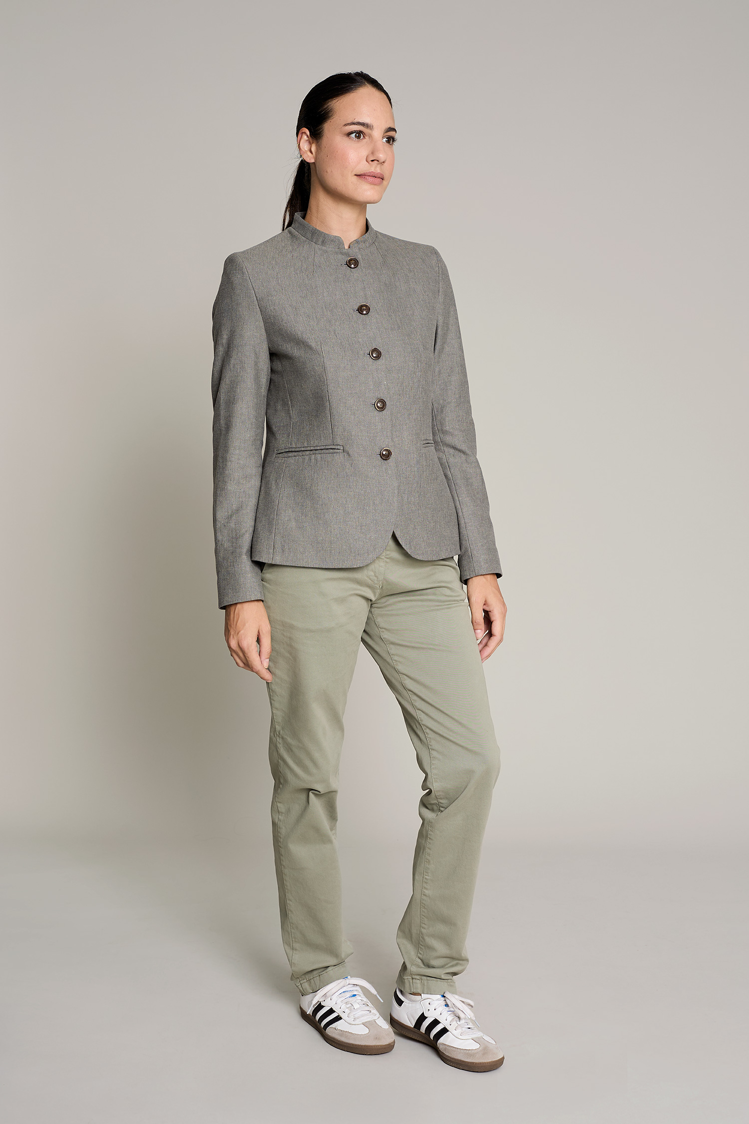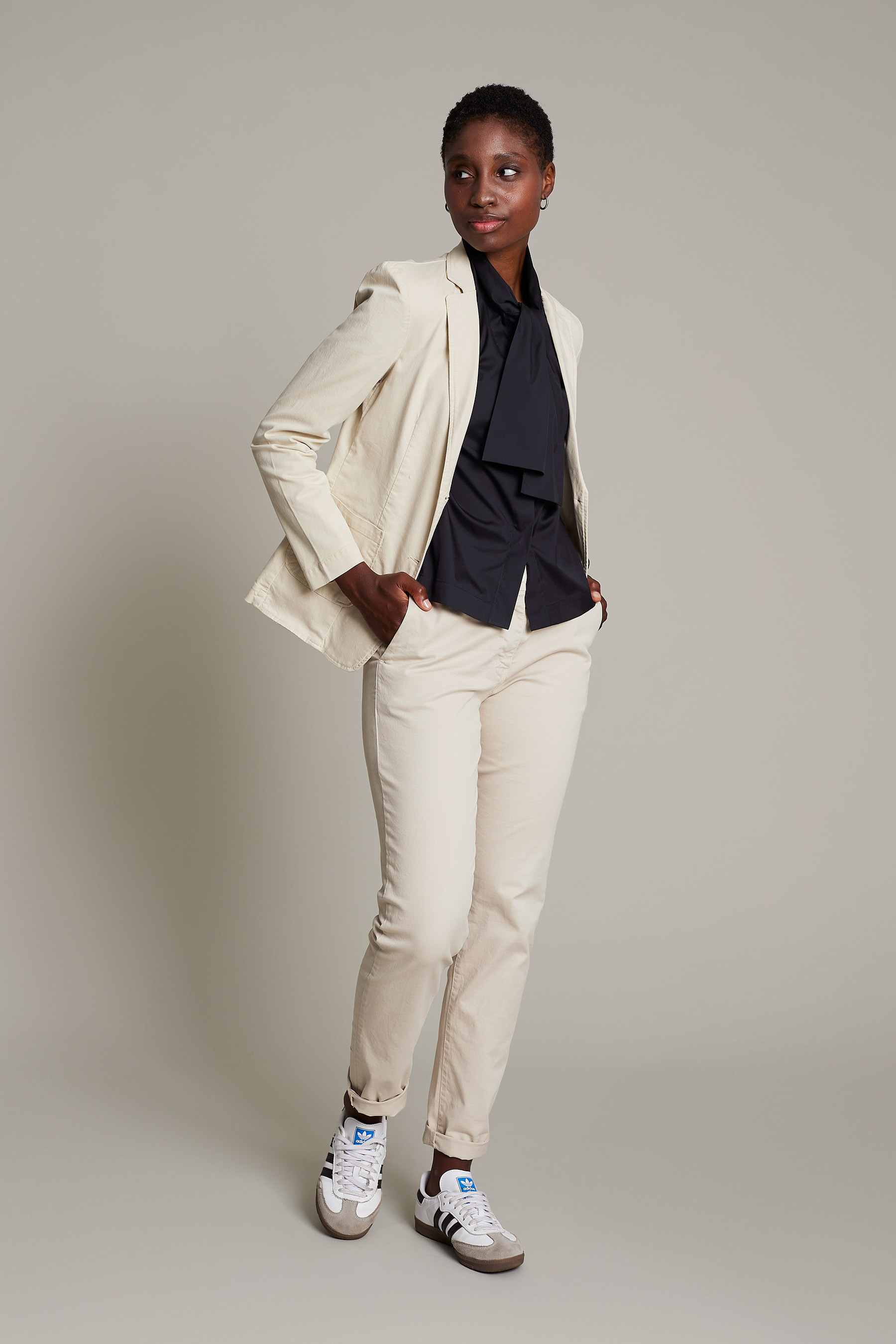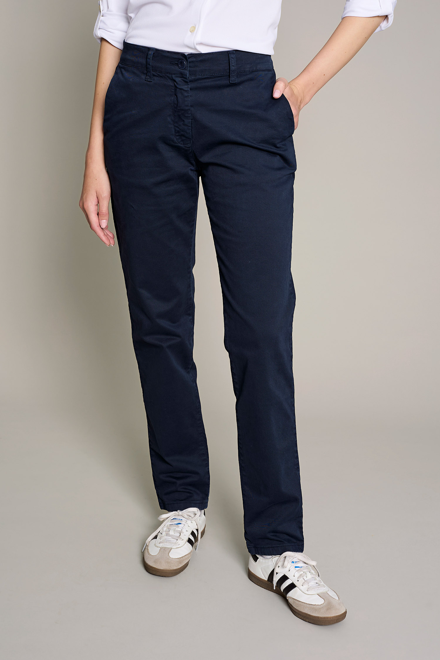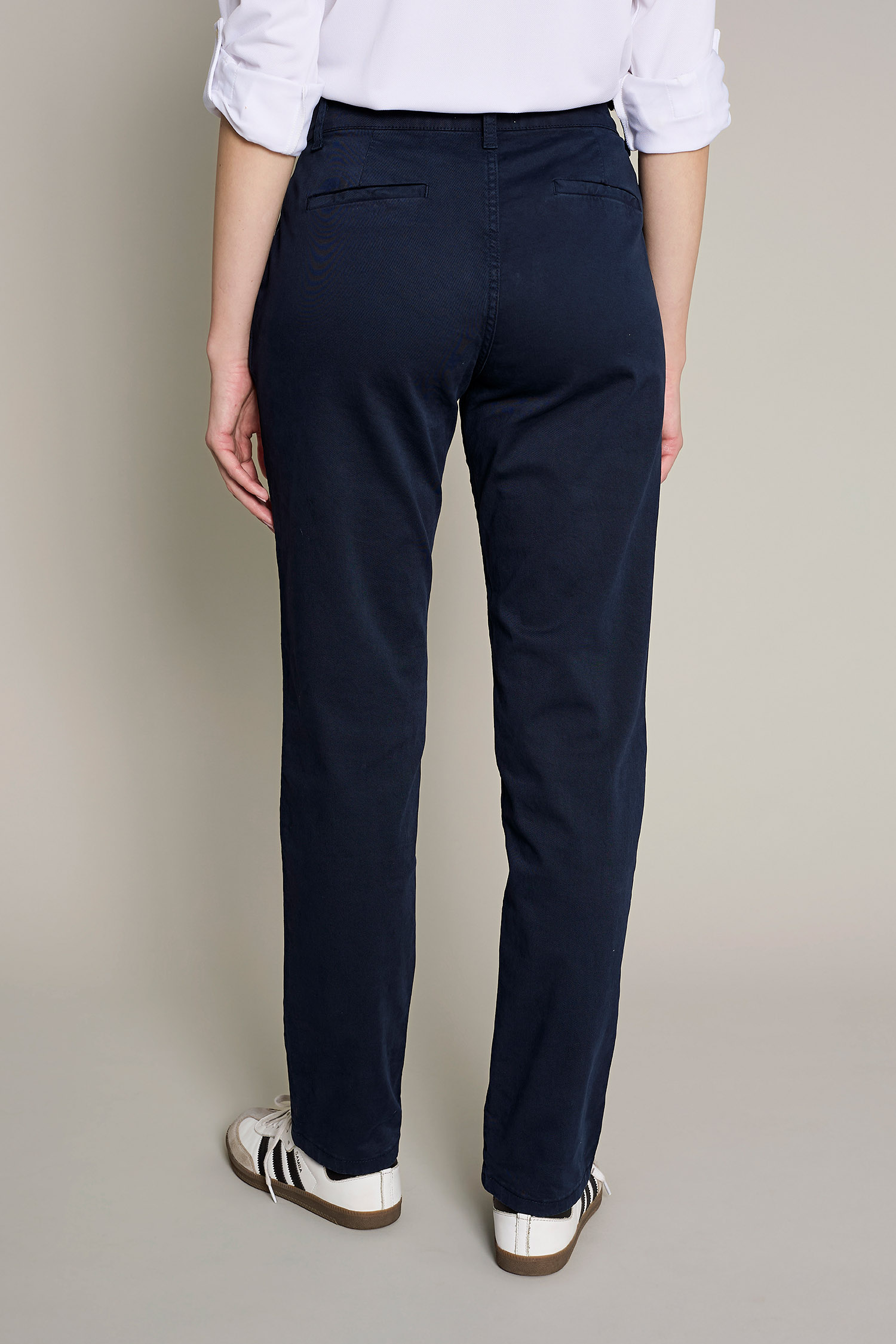 Pantalón chino de mujer en color beige lavado de algodón para un máximo confort y estilo para el trabajo