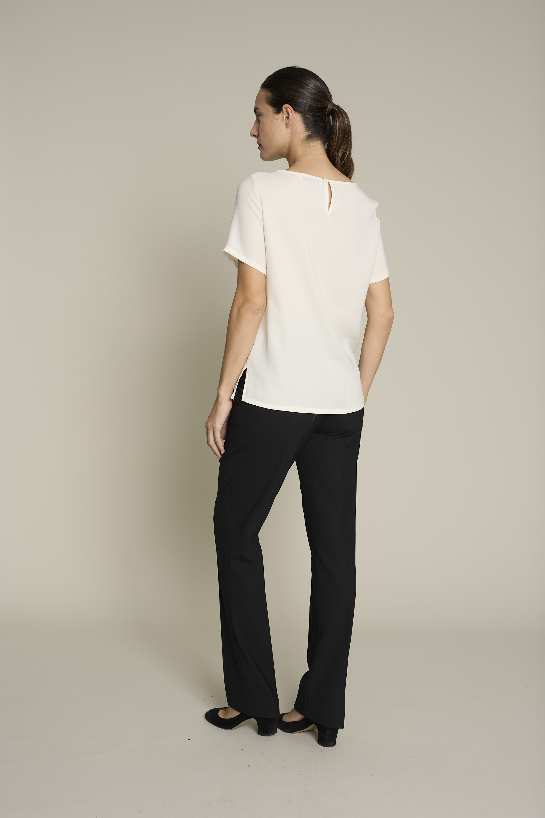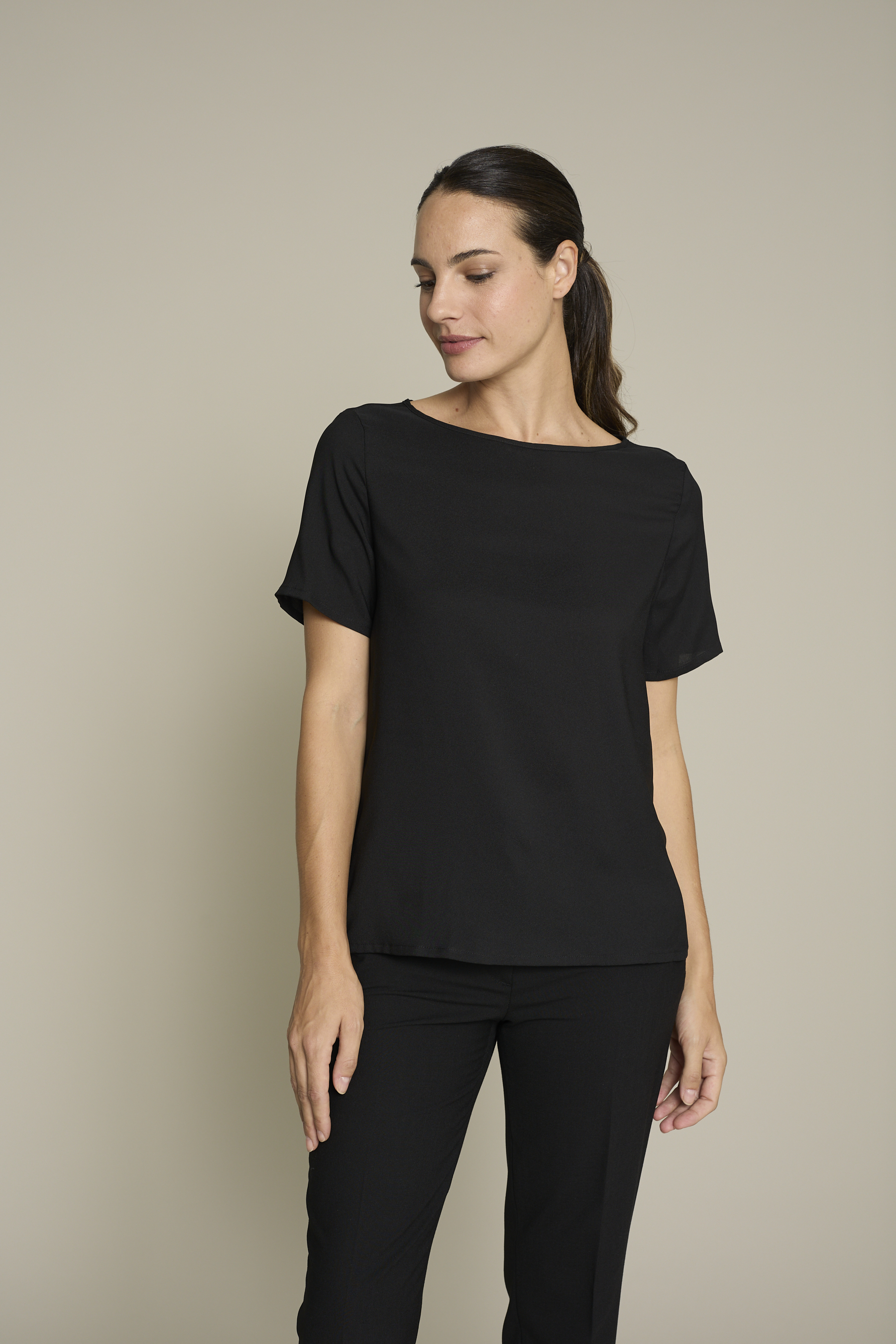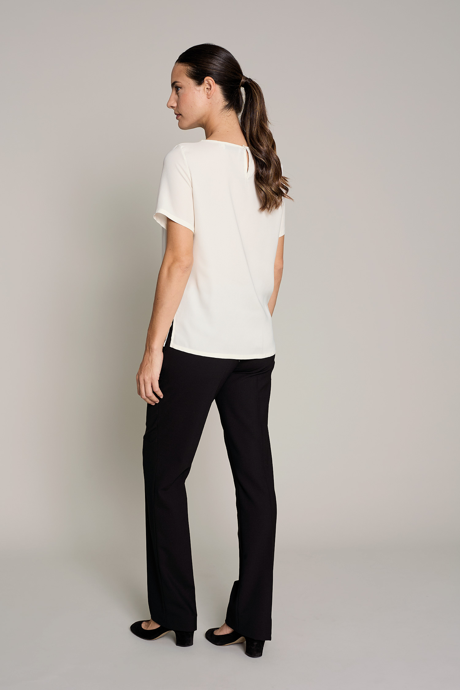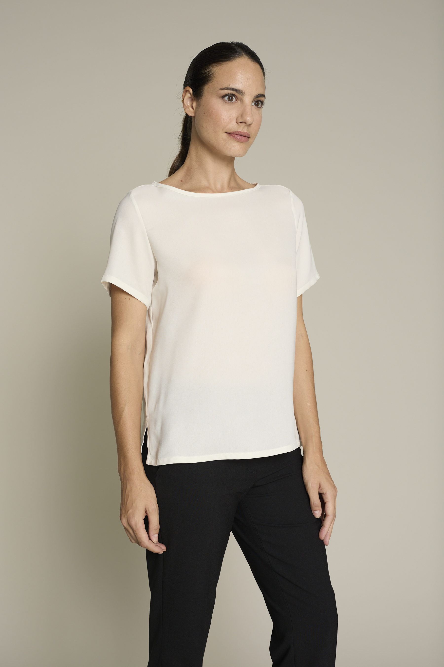 Top de mujer en color blanco con tejido poliéster para un máximo confort y estilo para el trabajo