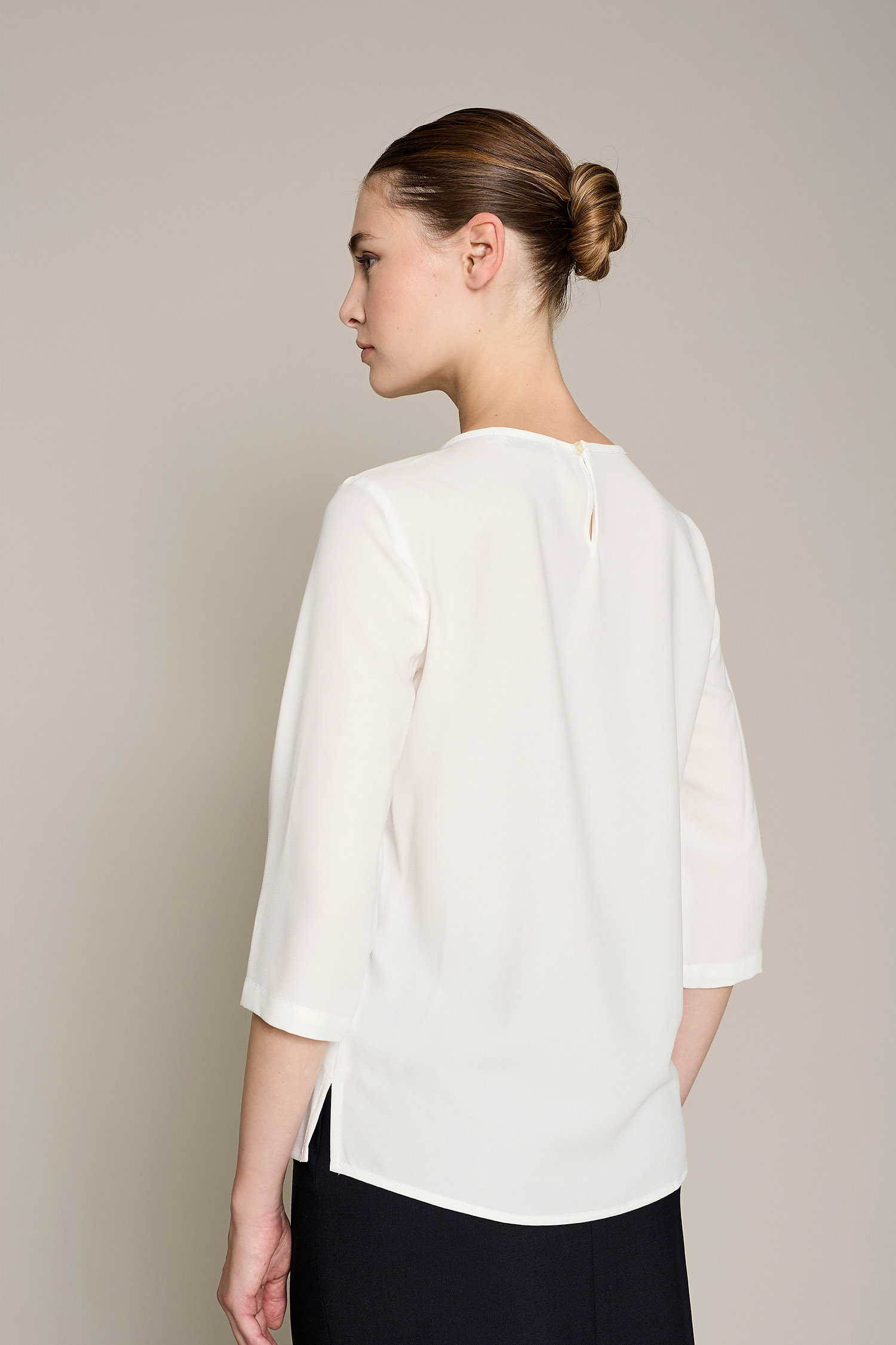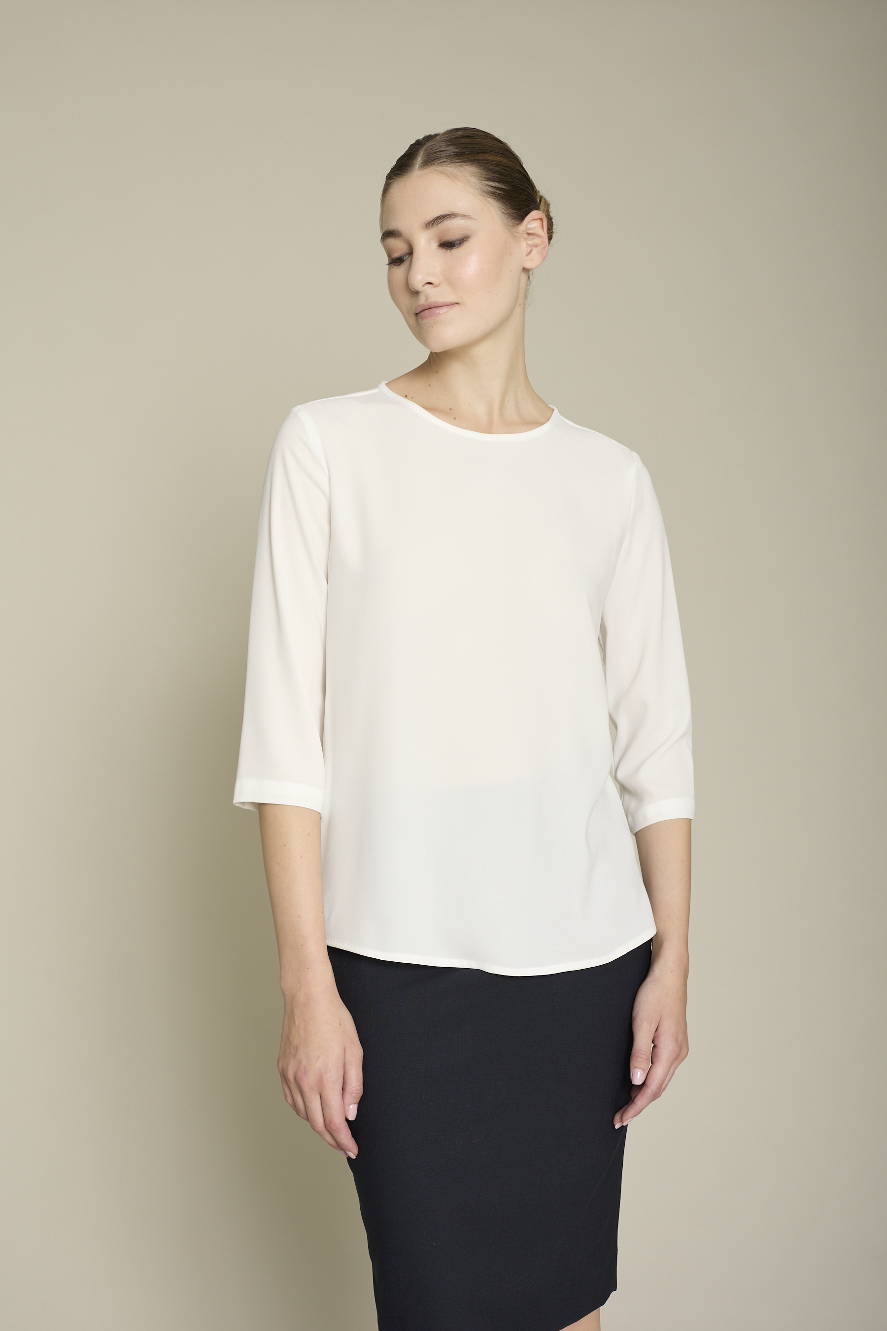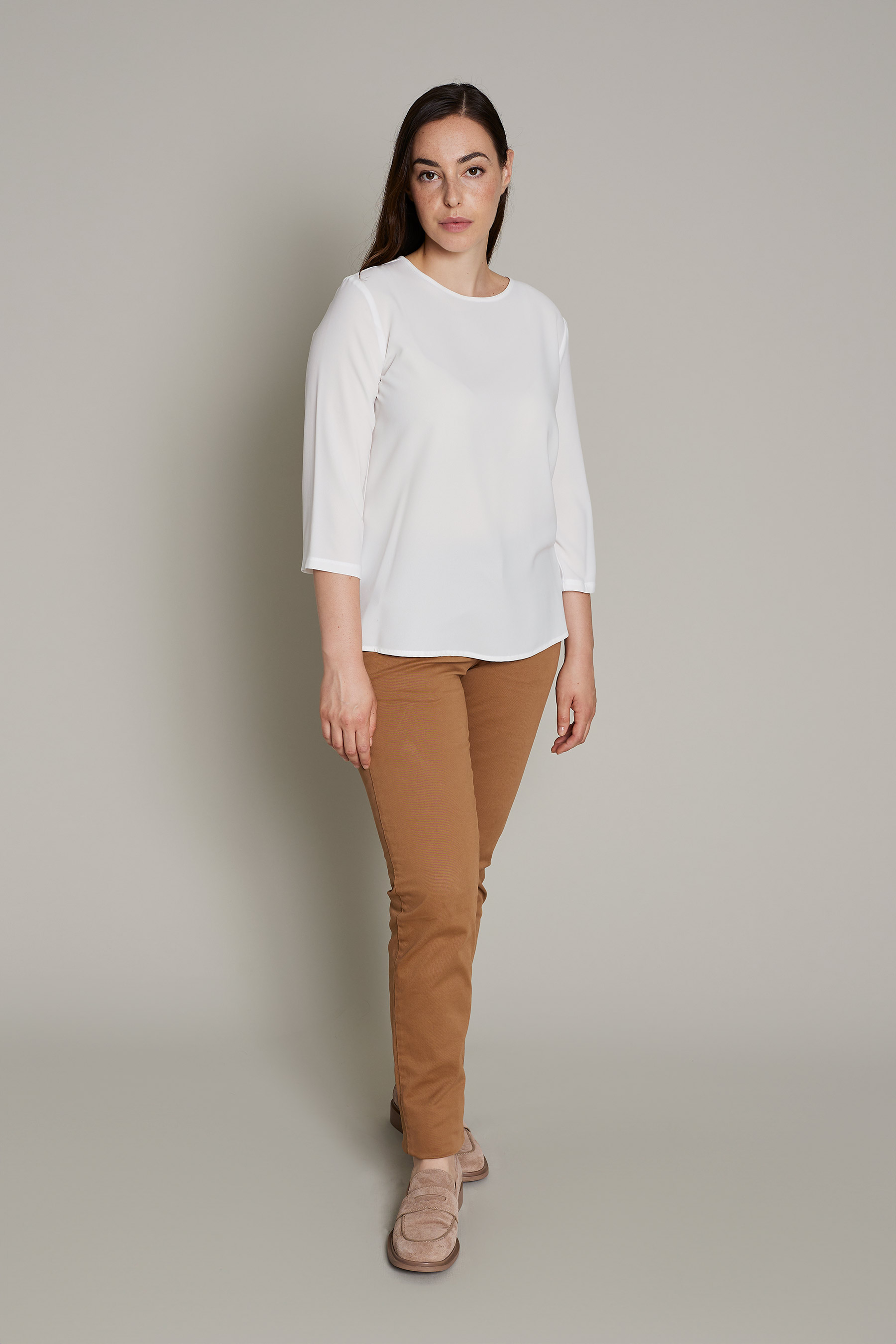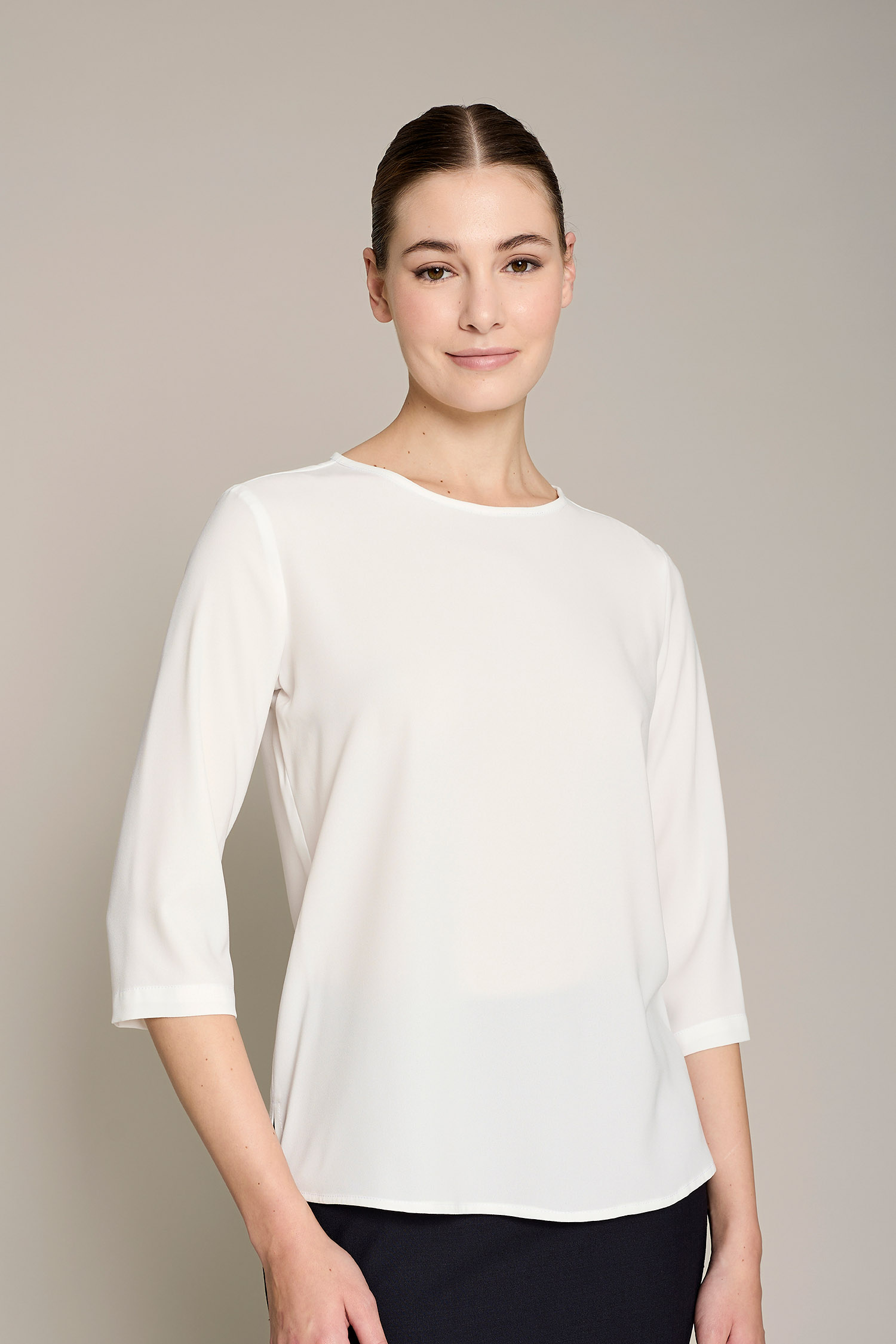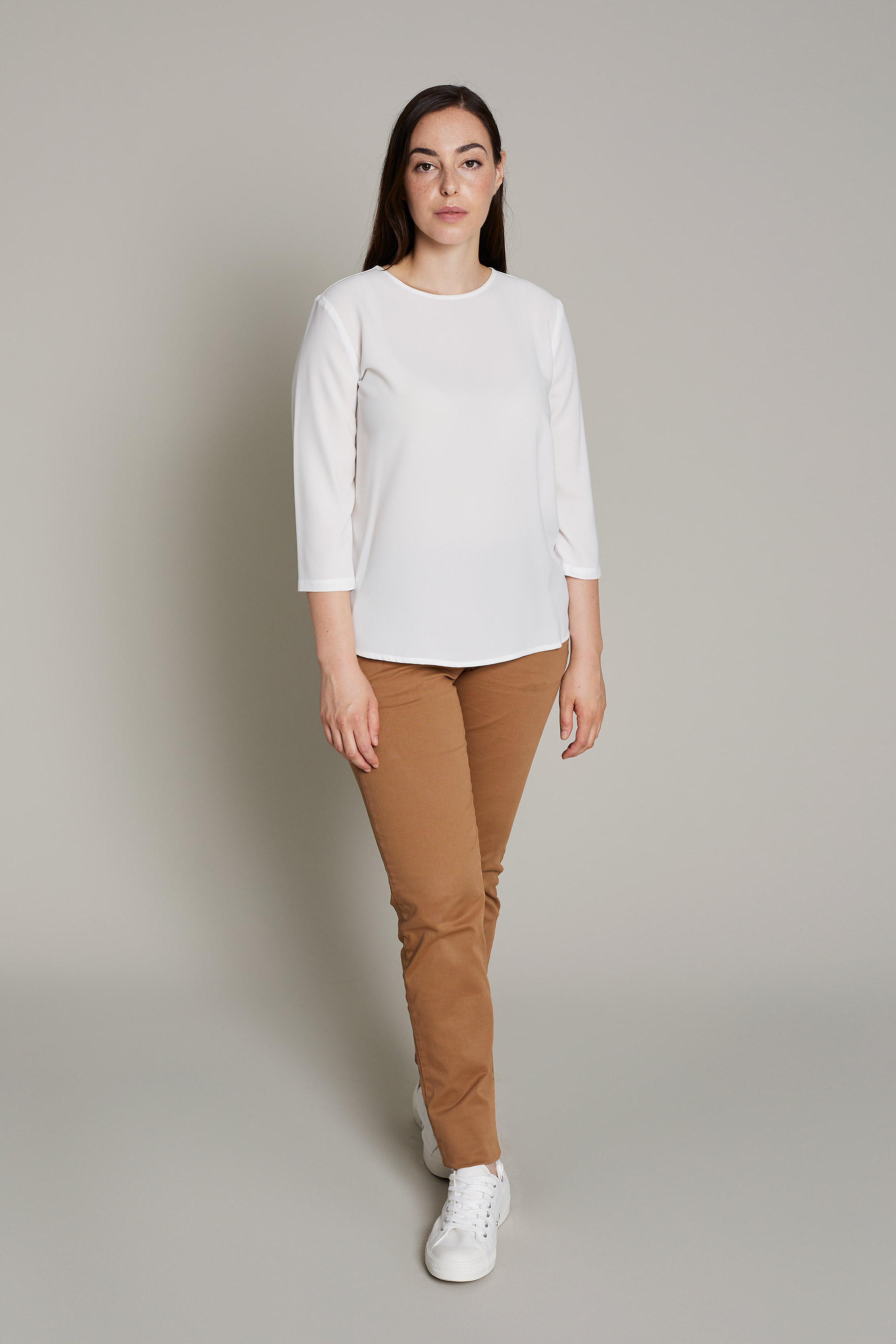 Blusa Andrea de mujer en color blanco para un máximo confort y estilo para el trabajo. No requiere plancha