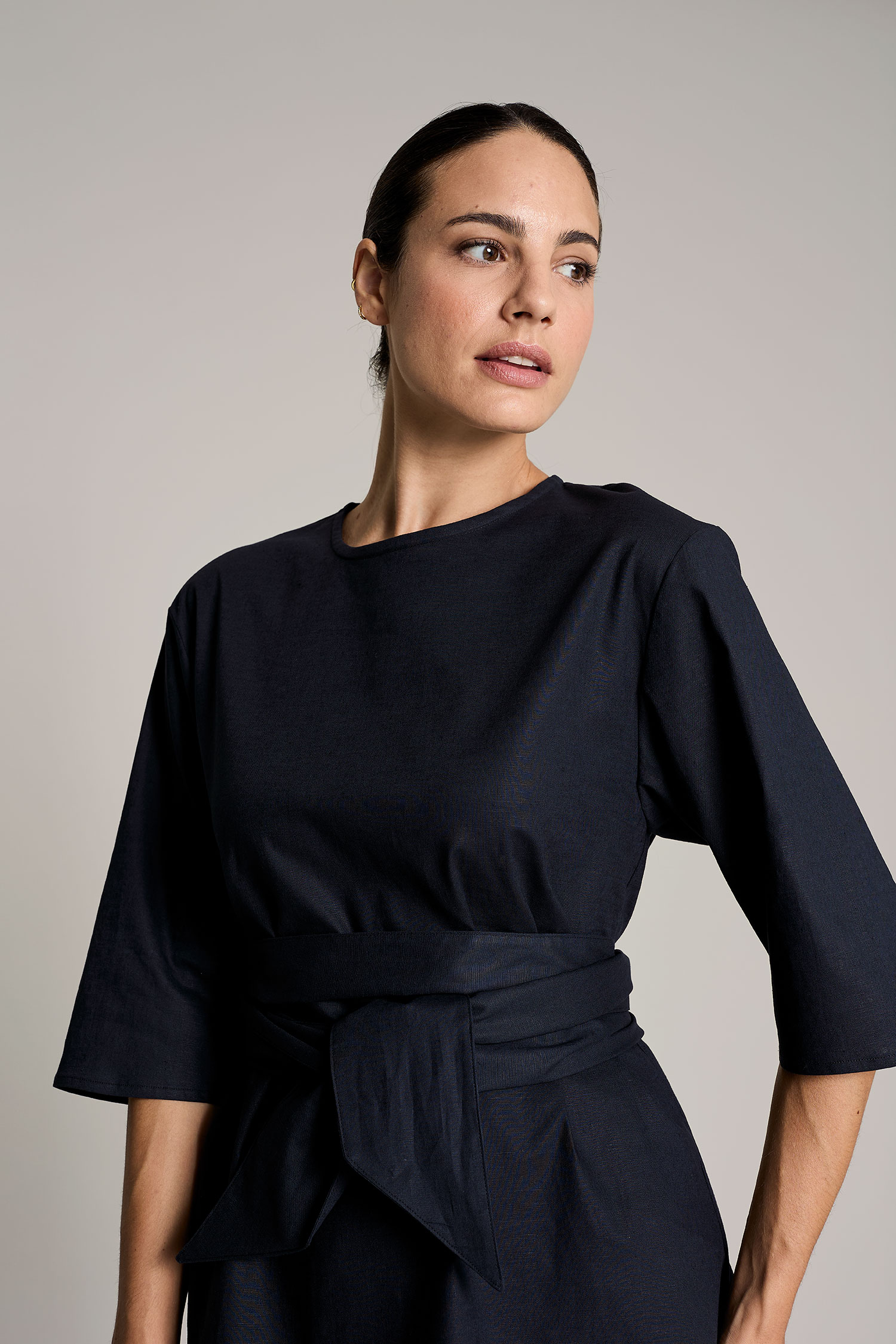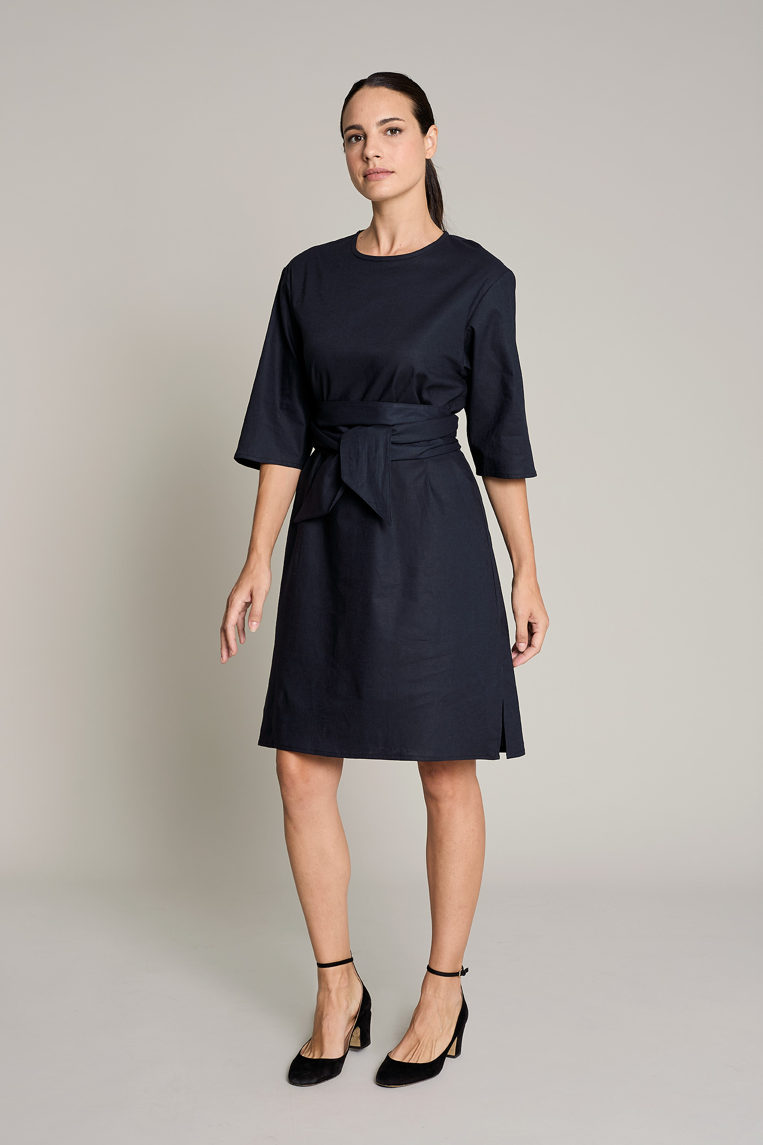 El vestido margot de mujer en color azul combina elegancia y comodidad. Diseñada para ofrecer estilo y comodidad en el entorno laboral y la ligereza del tejido 195 g/m² garantiza libertad de movimiento. Confeccionado con 50% Lino 48% Algodón 2% Spandex, este tejido no solo aporta suavidad sino también una excelente transpirabilidad. Su diseño clásico y versátil la hace ideal para diversos sectores profesionales. No requiere plancha, facilitando su mantenimiento y uso diario