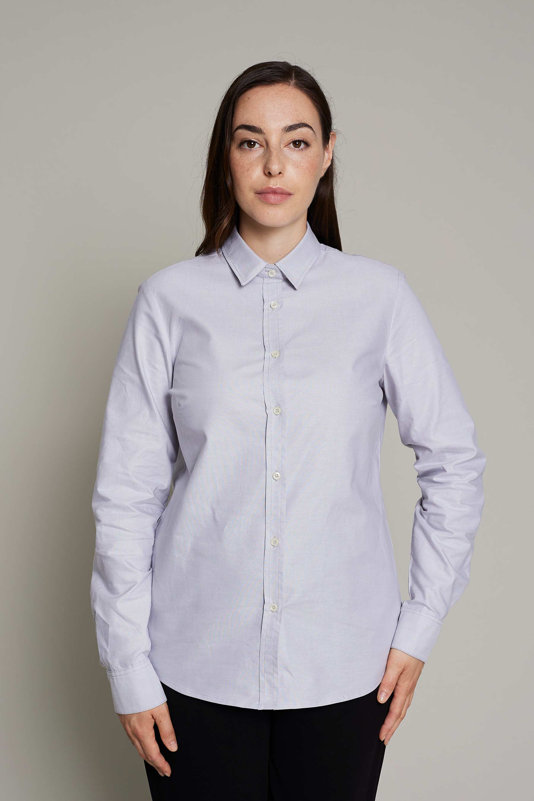 La camisa de mujer en color gris combina elegancia y sostenibilidad. El modelo Dakota diseñada para ofrecer estilo y comodidad en el entorno laboral y la ligereza del tejido 140 g/m² garantiza libertad de movimiento. Confeccionada con 100% algodón orgánico, este tejido no solo aporta suavidad sino también una excelente transpirabilidad. Su diseño clásico y versátil la hace ideal para diversos sectores profesionales