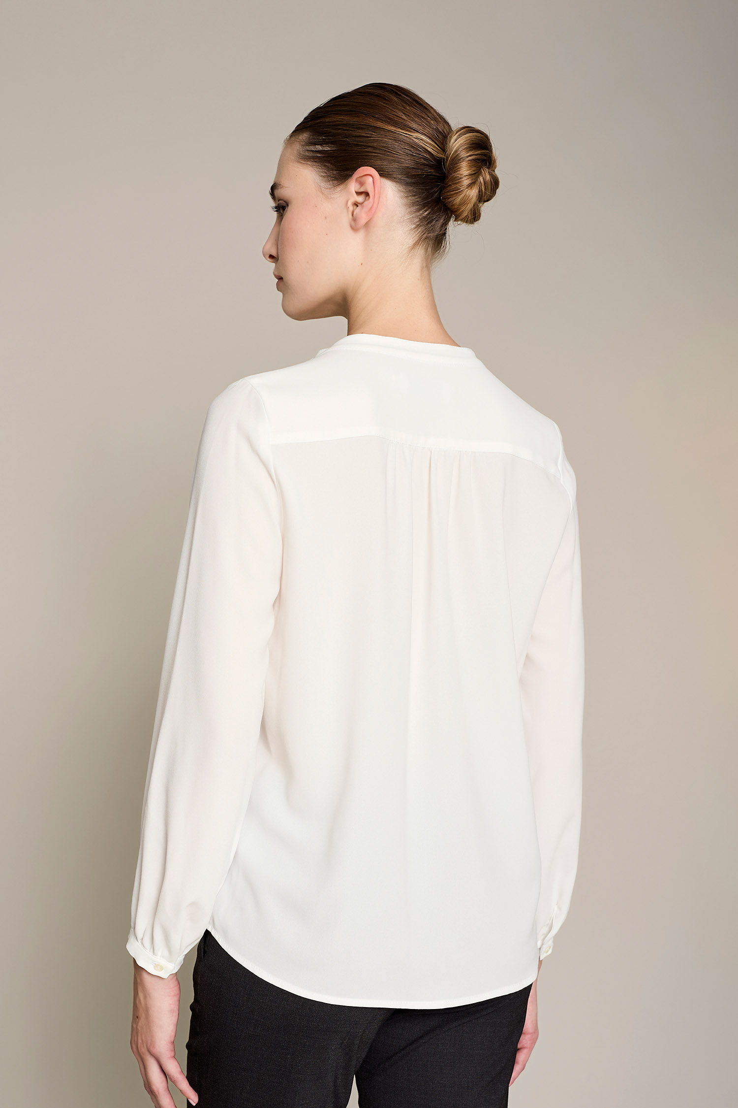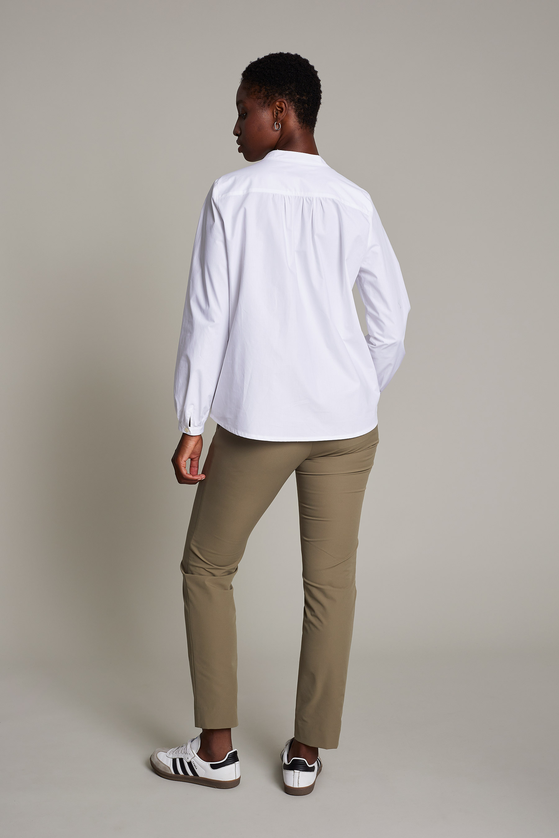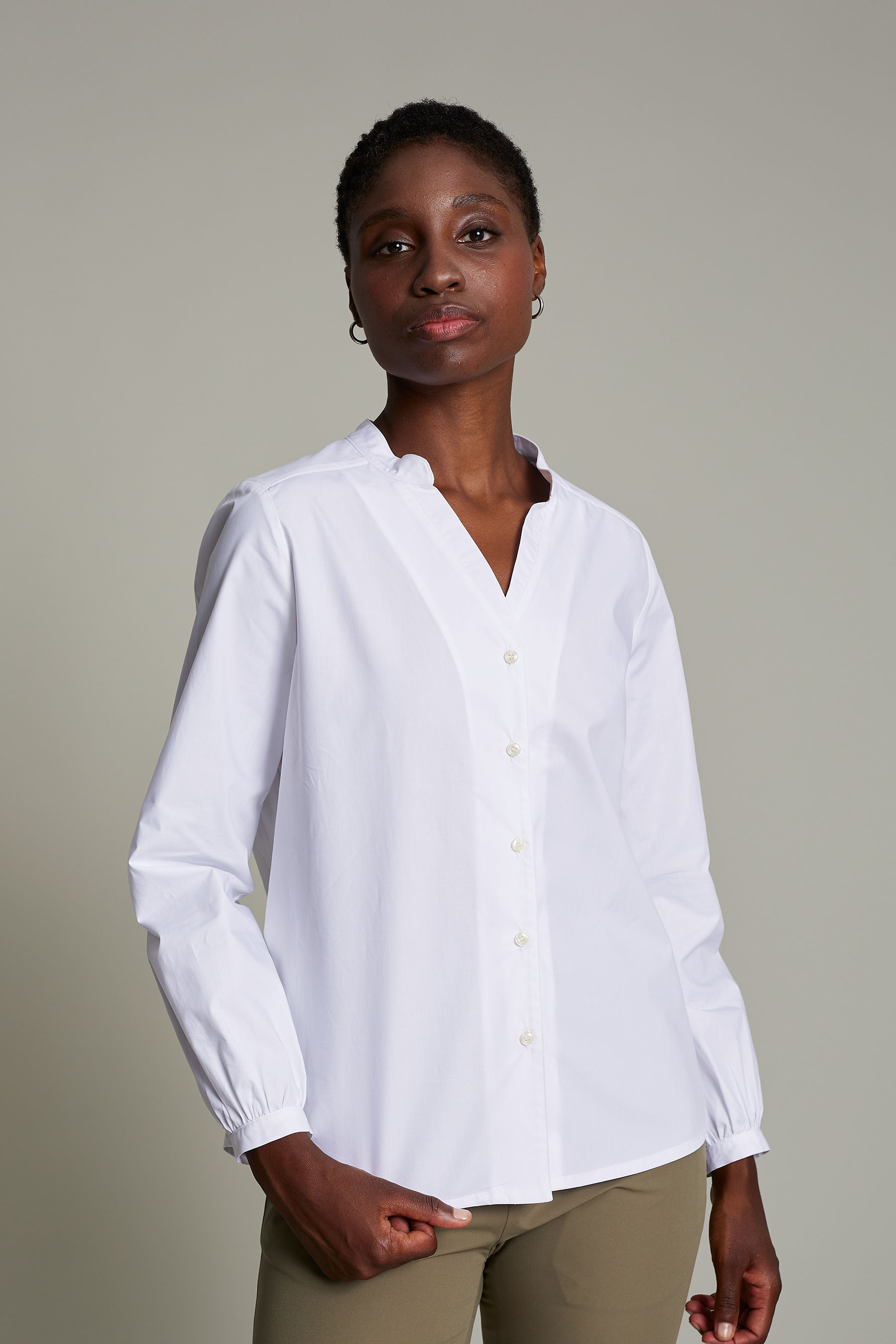 Blusa Amanda de mujer en color beige con tejido de algodón orgánico que ofrece un máximo confort y sostenibilidad