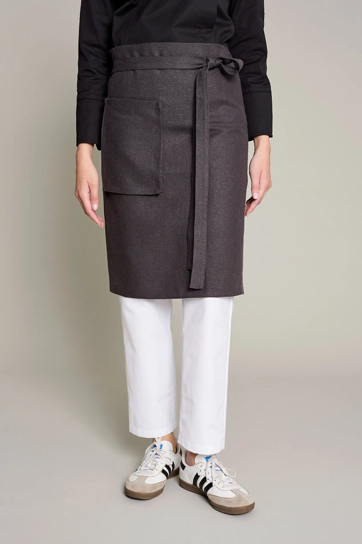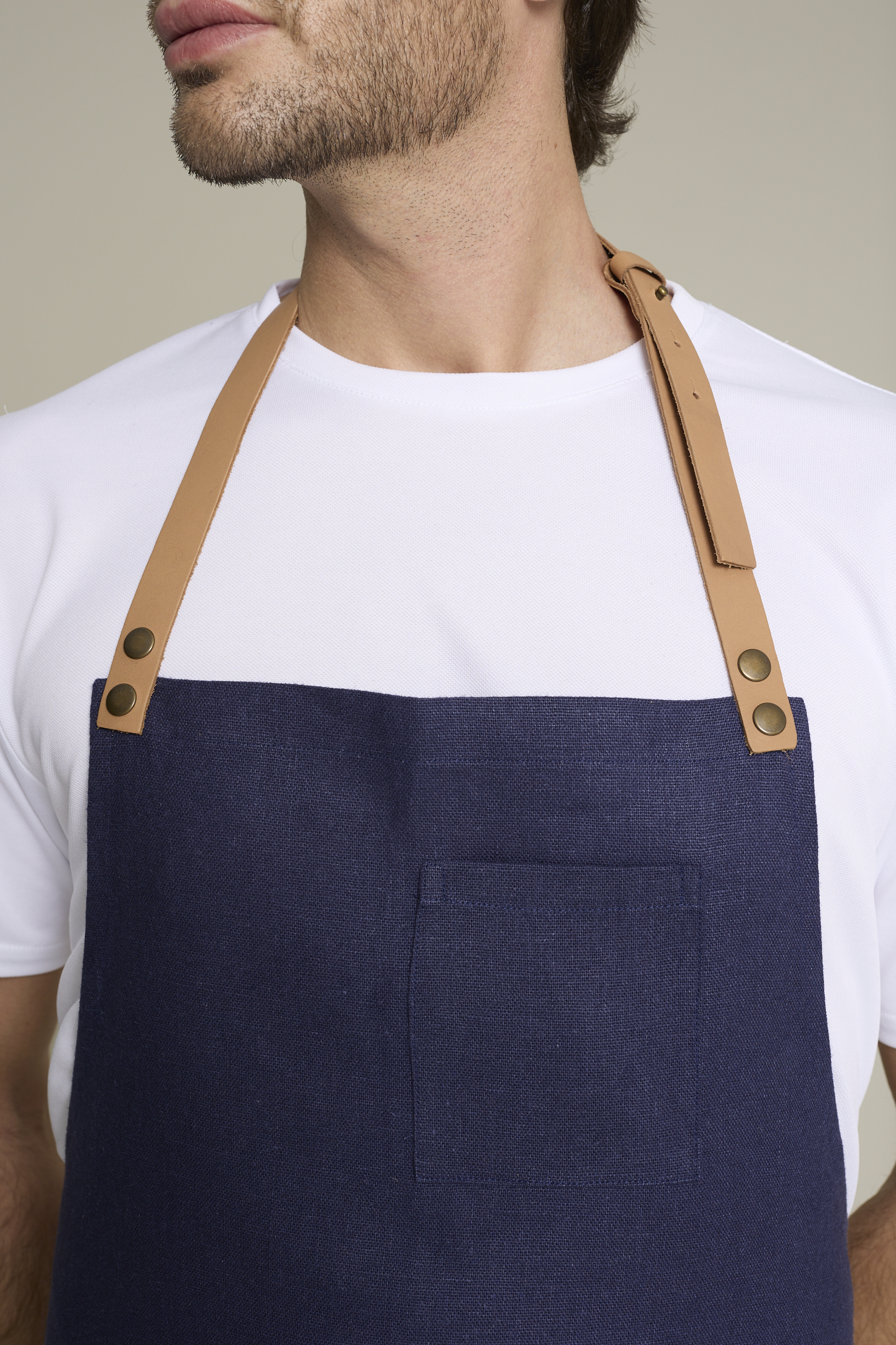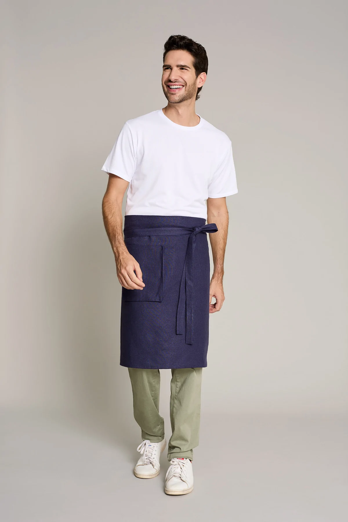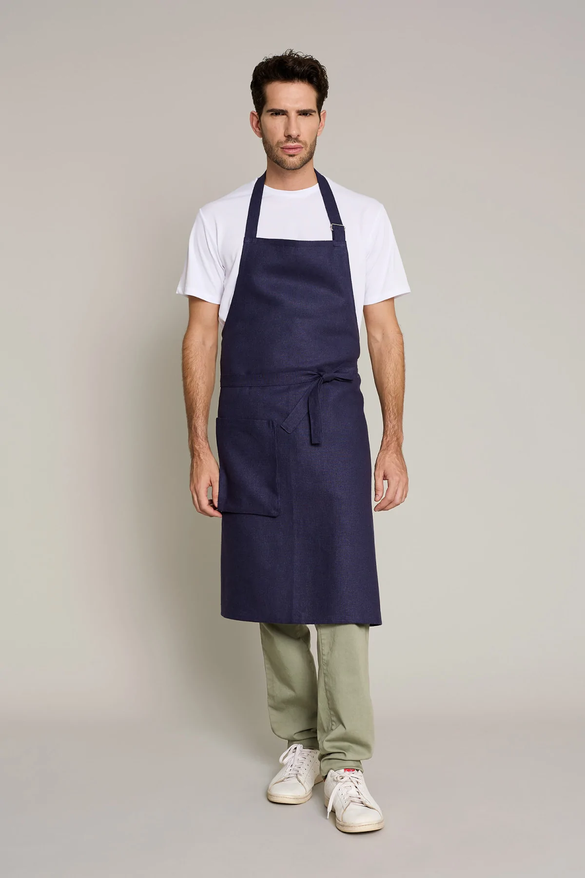 Mandil unisex en color lino natural, que ofrece comodidad y estilo en entornos laborales
