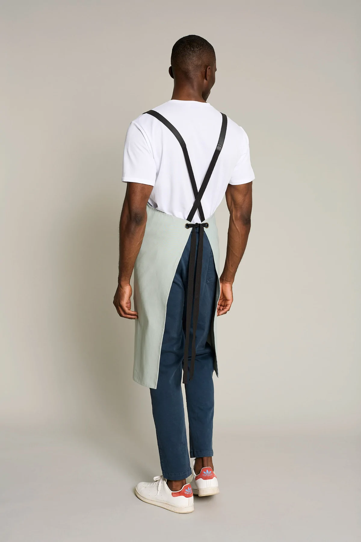 Delantal unisex en color natural con tira ajustable, ofrece comodidad y estilo en entornos laborales