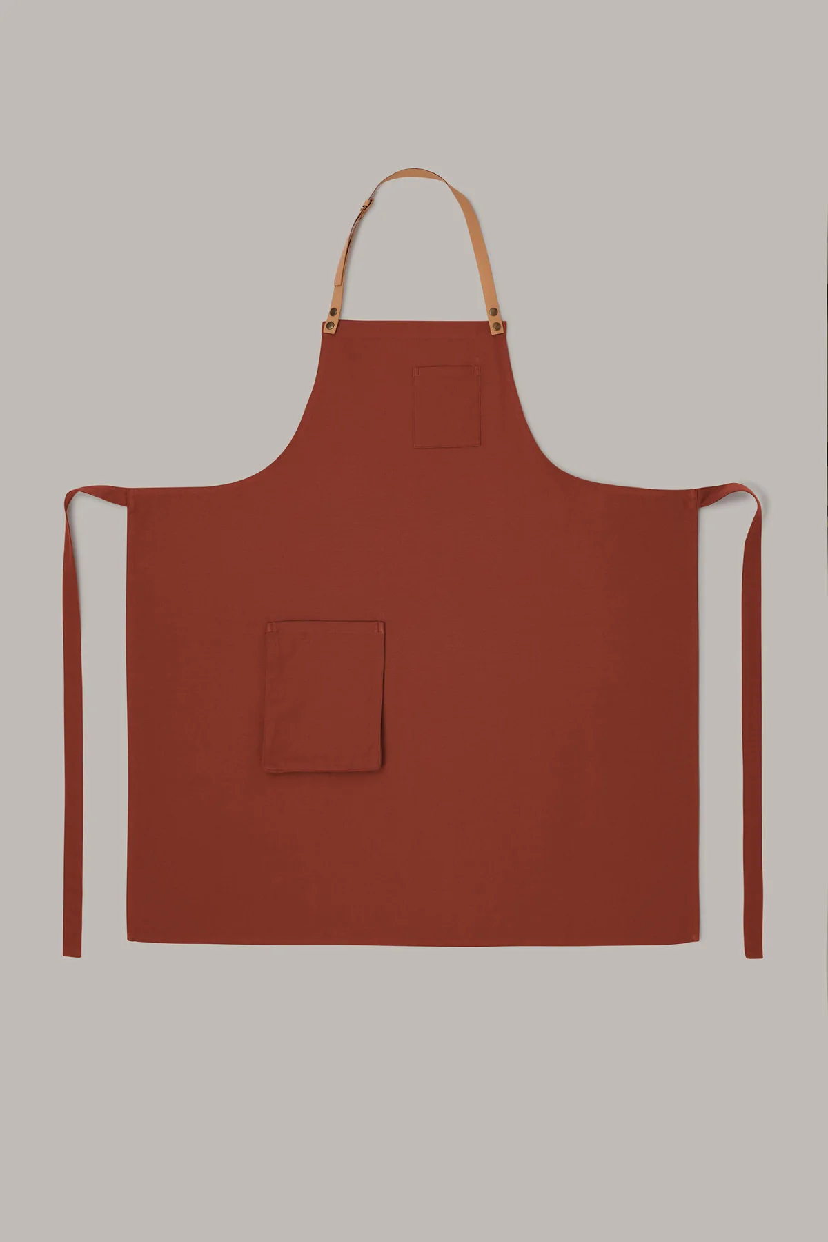 Delantal unisex en color caldera con tira ajustable, en tejido orgánico, que ofrece comodidad y sostenibilidad