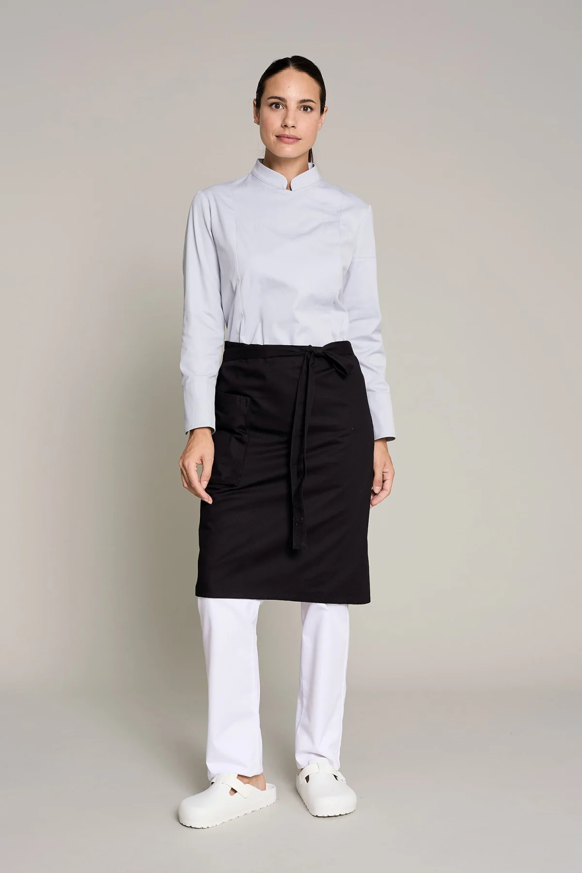 El delantal unisex de 91 cm de largo en color piedra está diseñado para entornos laborales que requieren resistencia y estilo. Fabricado en tejido de mezcla de 100% algodón orgánico, refleja el compromiso de la marca con la calidad local y la sostenibilidad, garantizando durabilidad y fácil mantenimiento. Su hebilla permite un ajuste cómodo y cuenta también con un bolsillo lateral tipo fuelle. Su tejido técnico facilita la evacuación de la humedad, siendo una prenda segura para pieles sensibles o alérgicas, ya que no tiene sustancias nocivas o químicos agresivos