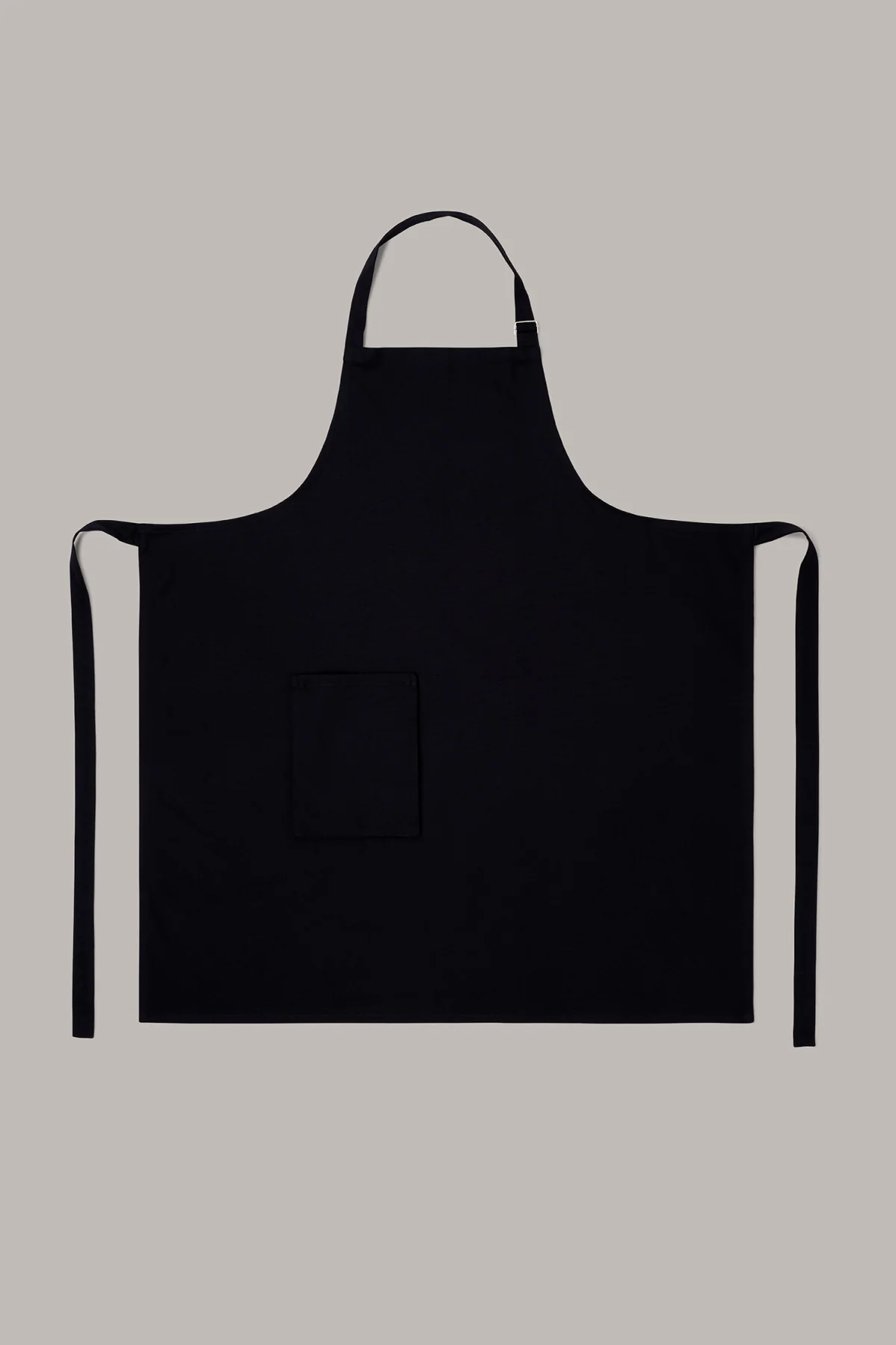 Delantal unisex en color negro con hebilla ajustable, en tejido orgánico, que ofrece comodidad y sostenibilidad