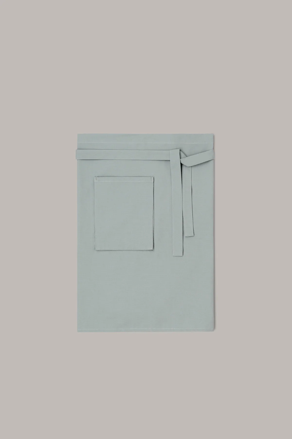 Mandil unisex en color azul, con tejido orgánico y reciclado, que ofrece comodidad y sostenibilidad. No requiere plancha