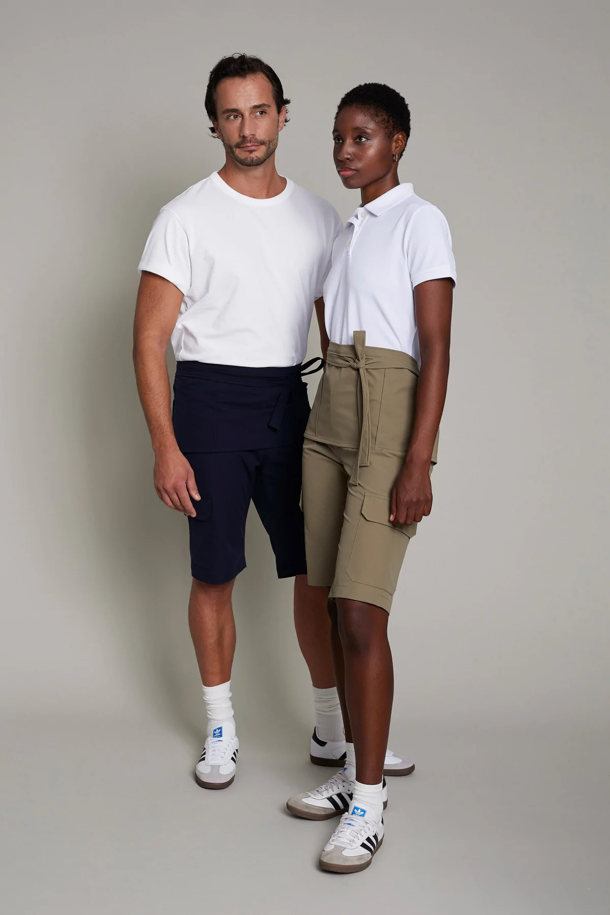 Delantal unisex en color gris con hebilla ajustable, ofrece comodidad y estilo en entornos laborales