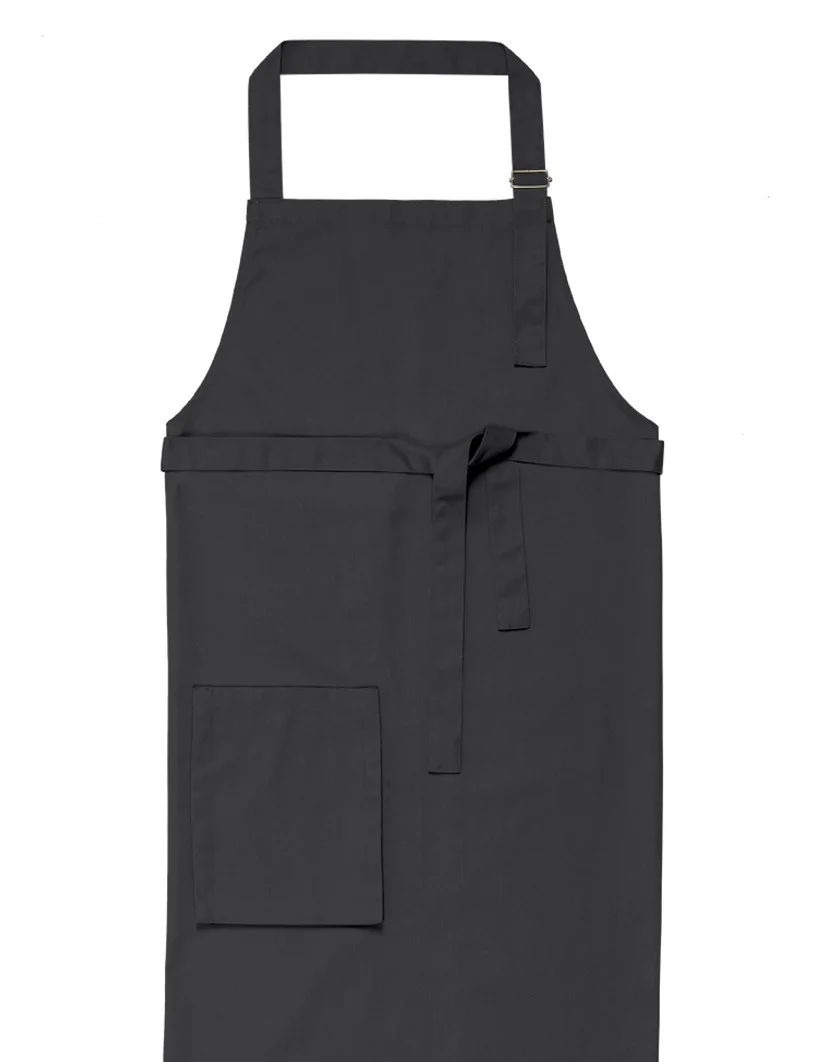 Delantal unisex en color gris con hebilla ajustable, ofrece comodidad y estilo en entornos laborales