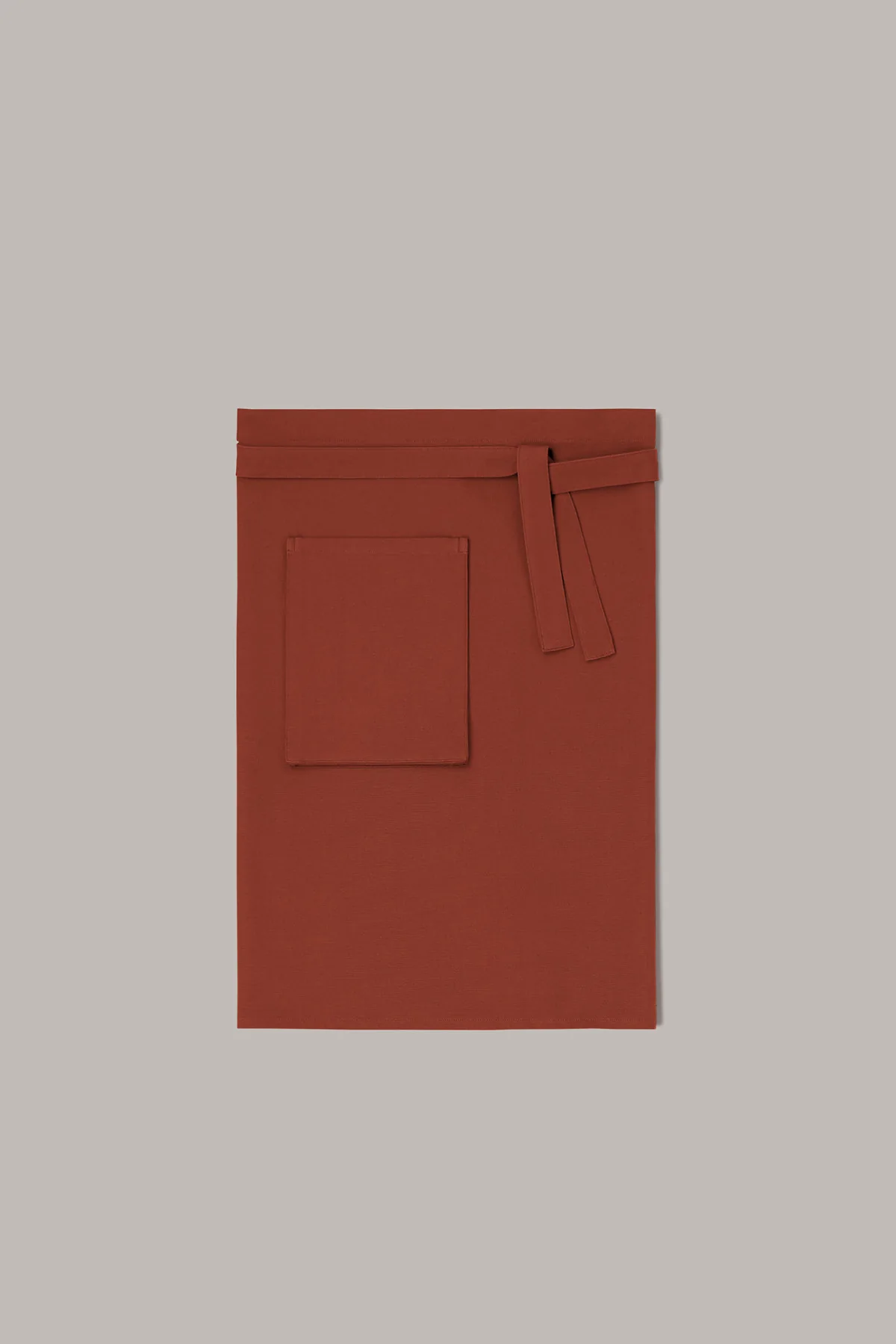 El delantal unisex en color caldera de 91 cm de largo, está diseñado para entornos laborales que requieren resistencia y estilo. Fabricado en tejido de mezcla de 100% algodón orgánico, que refleja el compromiso de la marca con la calidad local y la sostenibilidad garantizando durabilidad y fácil mantenimiento. Su hebilla metálica permite un ajuste cómodo, y cuenta también con un bolsillo central doble tipo plastrón. Su tejido técnico facilita la evacuación de la humedad, siendo una prenda segura para pieles sensibles o alérgicas, ya que no tiene sustancias nocivas o químicos agresivos