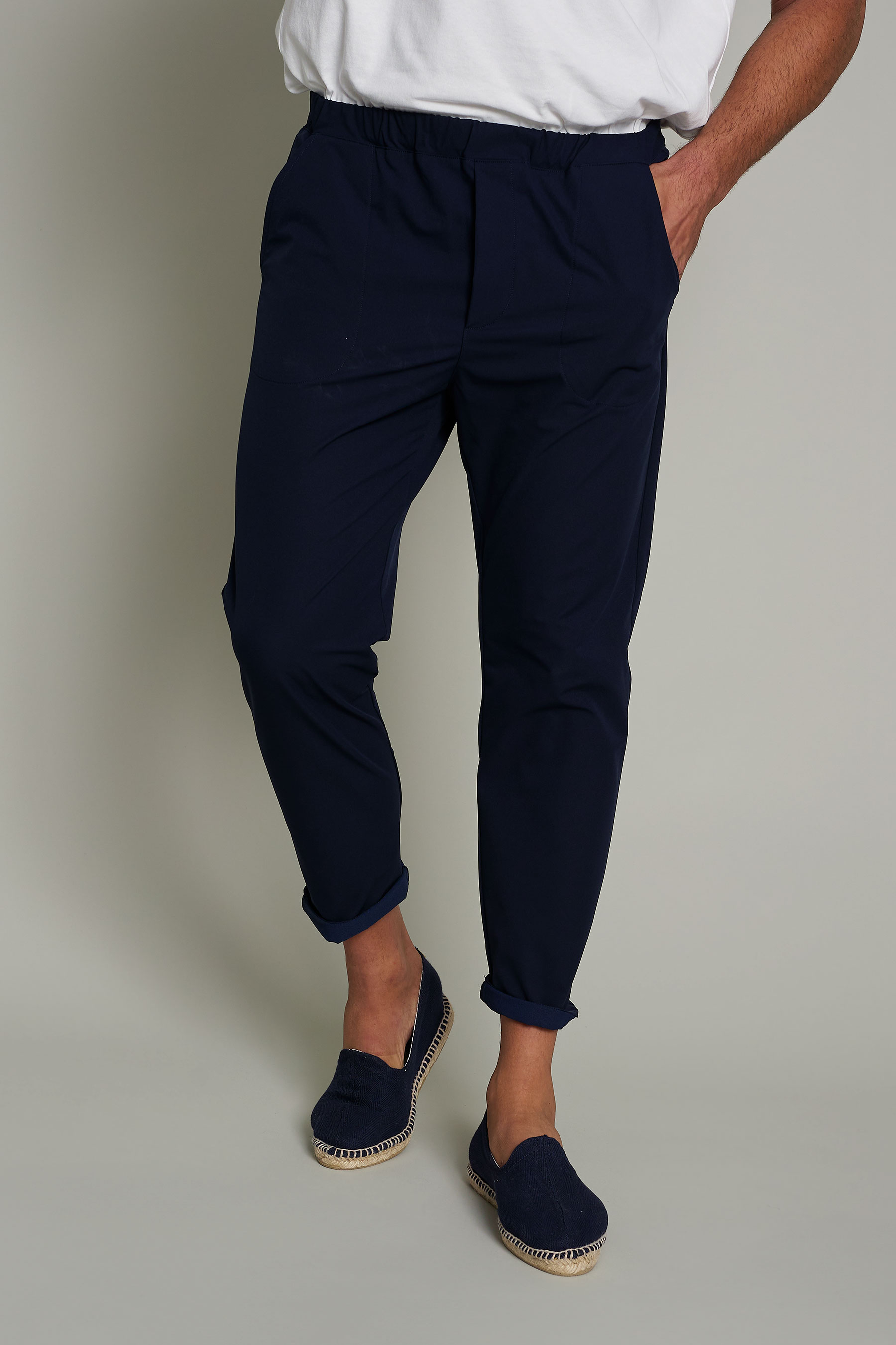 Confeccionado con 100% poliéster reciclado de alta calidad, proveniente de residuos plásticos (como botellas PET). Este material ofrece resistencia mecánica, durabilidad al lavado y es altamente reciclable, lo que contribuye a reducir la huella ecológica del producto. Tiene una elasticidad que permite una movilidad ergonómica sin deformación del tejido, adaptándose al cuerpo sin perder su forma original. Las fibras del tejido están tratadas con una tecnología de repelencia a líquidos. Aunque el tejido es técnico y denso, con un gramaje de 163 g/m², su construcción permite la circulación de aire entre las fibras, facilitando la evaporación de la humedad y ofreciendo una sensación de frescor. Su durabilidad, combinada con la menor necesidad de lavados y planchado, implica un menor consumo de agua, energía y detergente a lo largo de su vida útil. Tejido certificado OEKO-Tex Standard 100