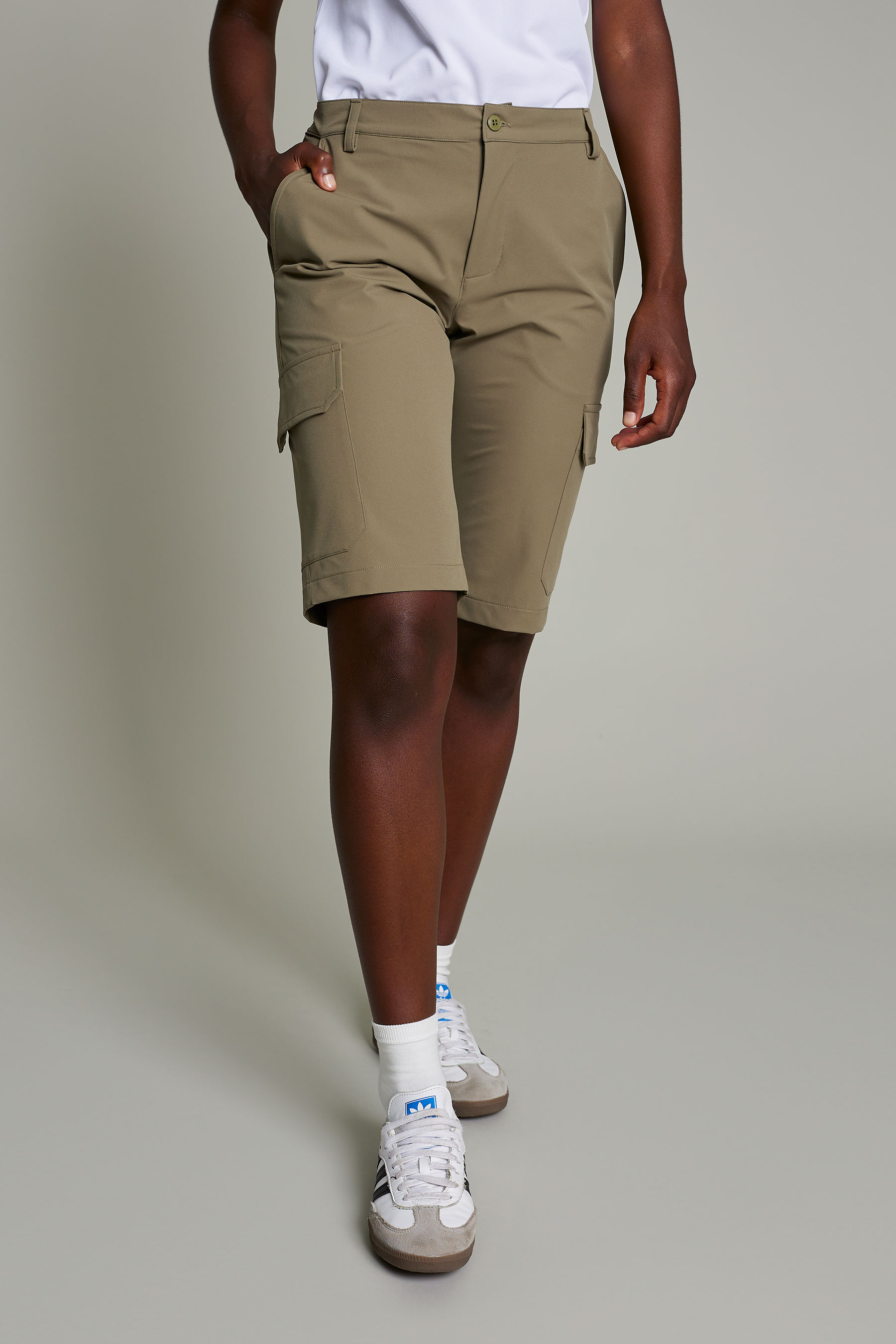 La bermuda unisex de color beige, combina elegancia y sostenibilidad. La ligereza del tejido 163 g/m² garantiza libertad de movimiento. Tejido técnico que tiene fácil mantenimiento, está diseñado para mantener su forma y apariencia sin arrugarse, ideal para el día a día. Prenda confeccionada con 100% poliéster reciclado que gracias a un tratamiento a nivel molecular, los líquidos como el café o vino, no penetran en la tela y resbalan evitando manchas. Cuenta con tecnología de transpiración avanzada y propiedades antibacterianas