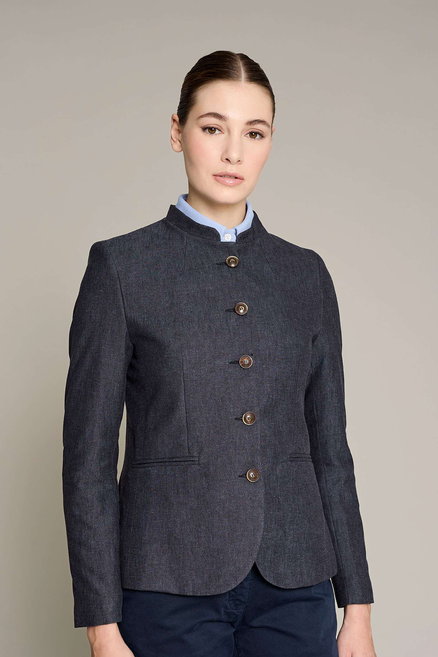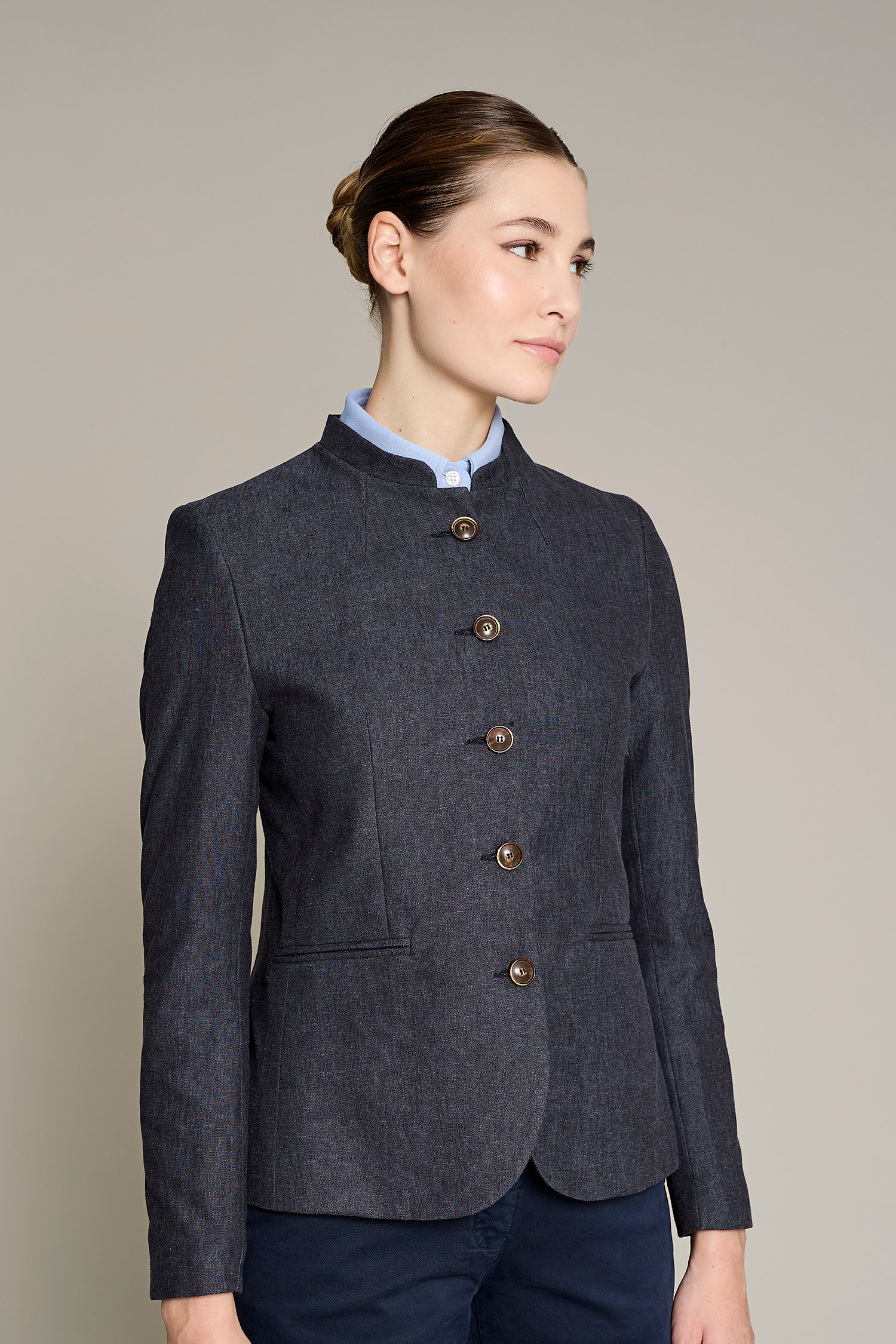 El chaleco paris de mujer en color azul combina funcionabilidad y estética. Diseñado para ofrecer estilo y comodidad en el entorno laboral y la ligereza del tejido 340 g/m² garantiza libertad de movimiento. Confeccionado con 50% lino 50% poliéster, este tejido no solo aporta suavidad sino también una excelente transpirabilidad. Su diseño clásico y versátil la hace ideal para diversos sectores profesionales