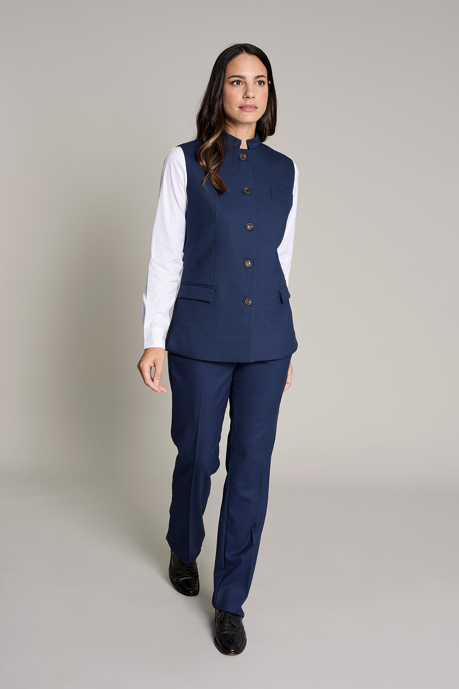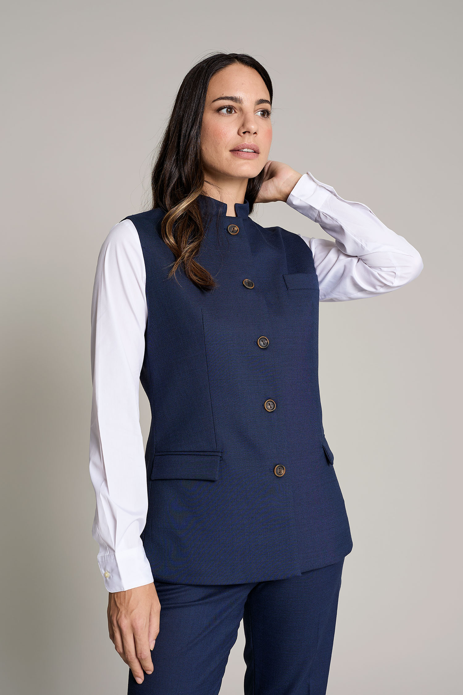Chaleco Levita largo de mujer en color azul para un máximo confort y estilo para el trabajo