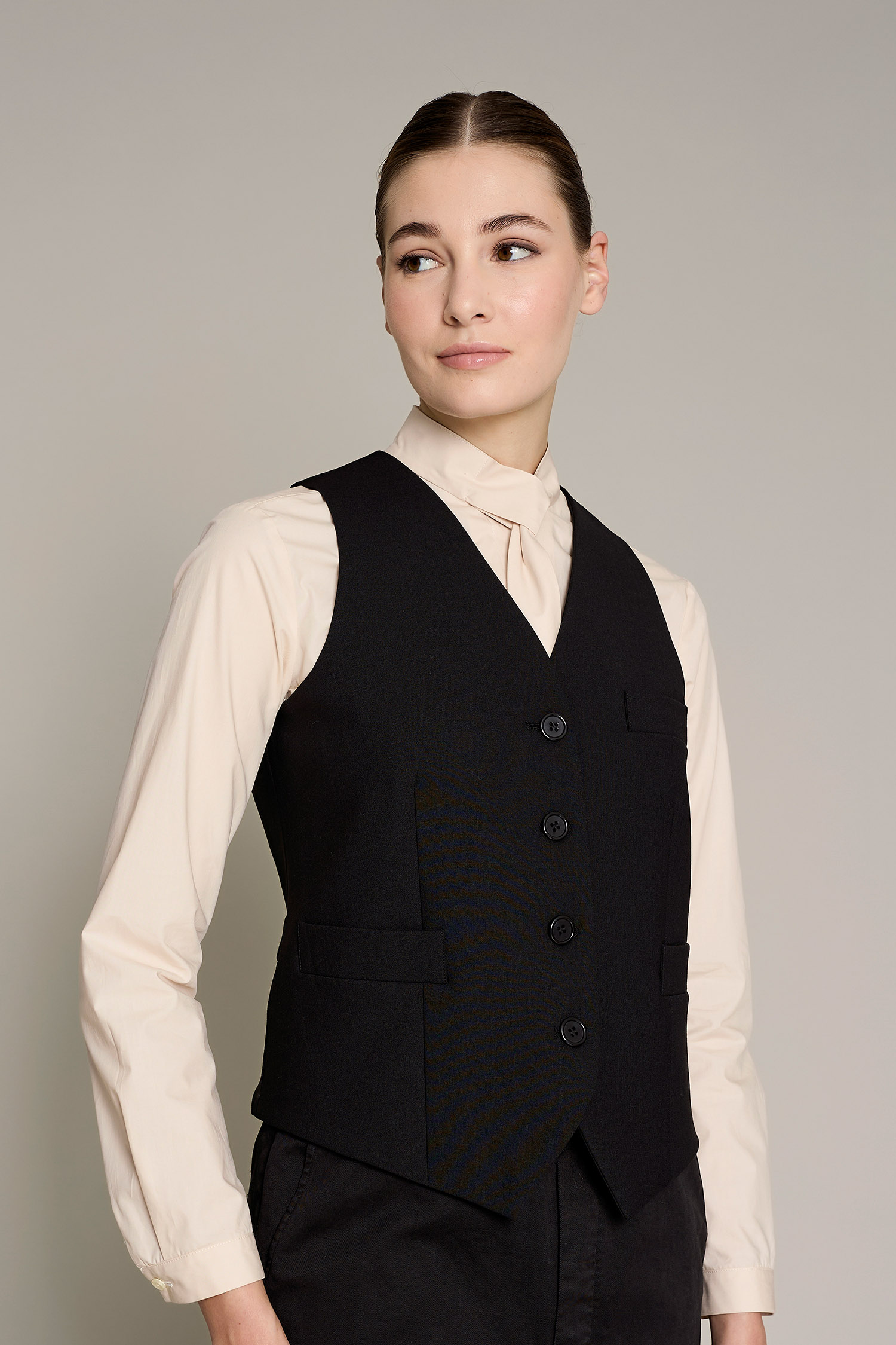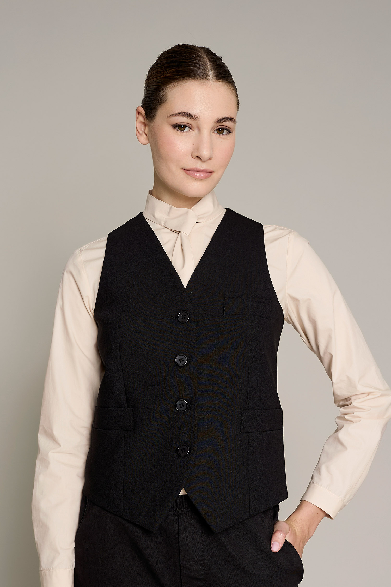 Chaleco Newman de mujer en color negro, que ofrece un máximo confort y estilo para el trabajo