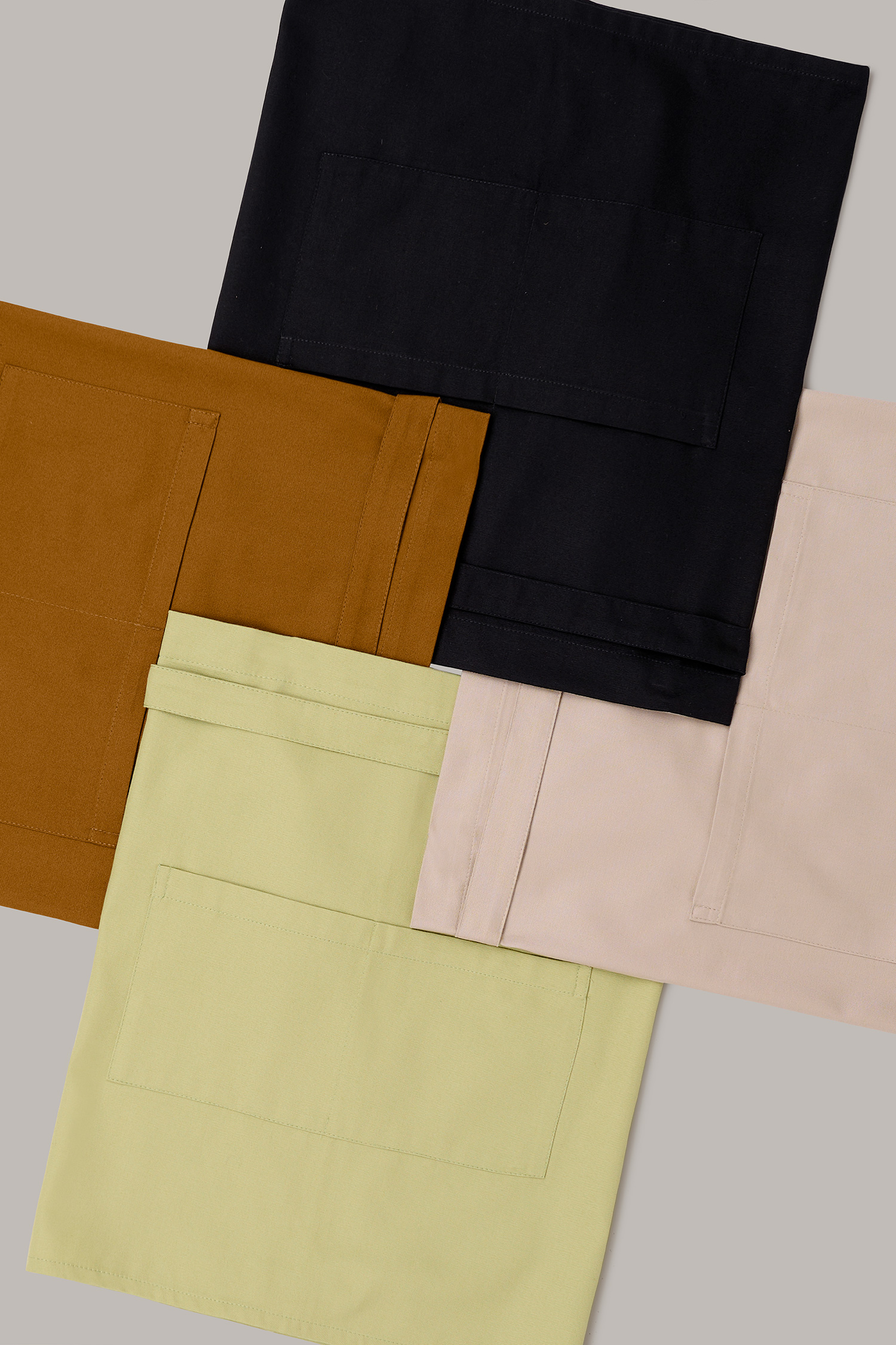 To ensure maximum durability and maintain the premium quality of your organic cotton apron, follow these care steps: Washing: Wash at a maximum temperature of 30 °C to preserve the fabric's softness. Color sorting: Always wash with similar colors and use a gentle spin cycle to prevent damage. Ironing: Use a medium temperature (two dots on the iron) to avoid damaging the fibers. Drying: Tumble drying is allowed at a low temperature to maintain its original shape. Cleaning products: Avoid using bleach or harsh stain removers to protect the color and texture. Fabric softeners are not recommended. Dry cleaning: Dry cleaning is permitted using perchloroethylene as a solvent. With these simple care instructions, your apron will retain its style and functionality for a long time.