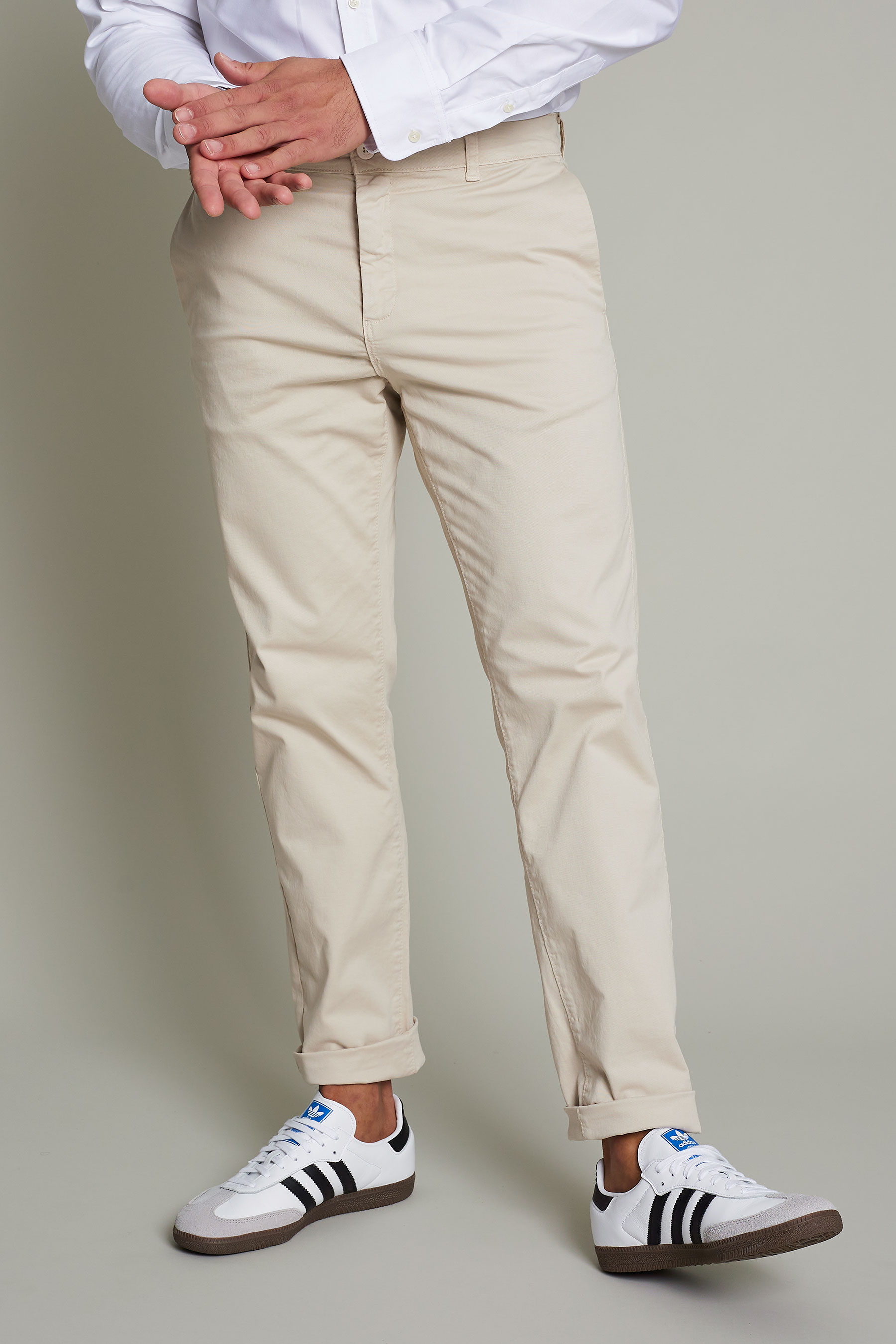 Men's beige washed cotton chino pants for maximum comfort and style for work