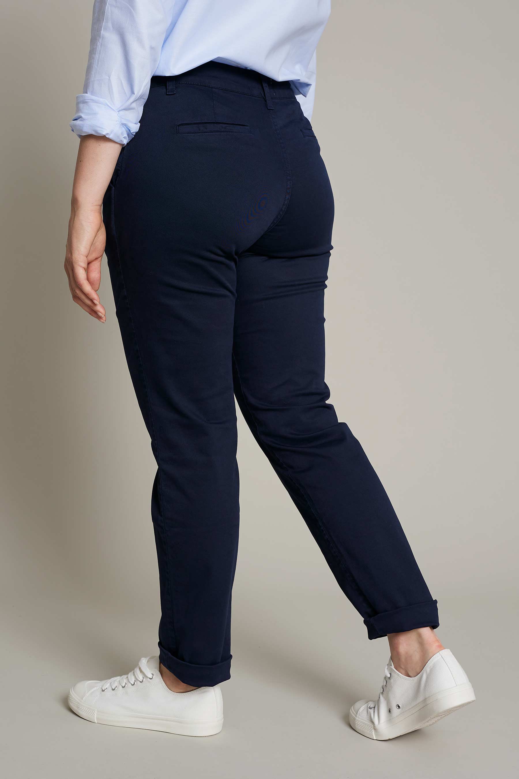 Women's blue washed cotton chino pants for maximum comfort and style for work