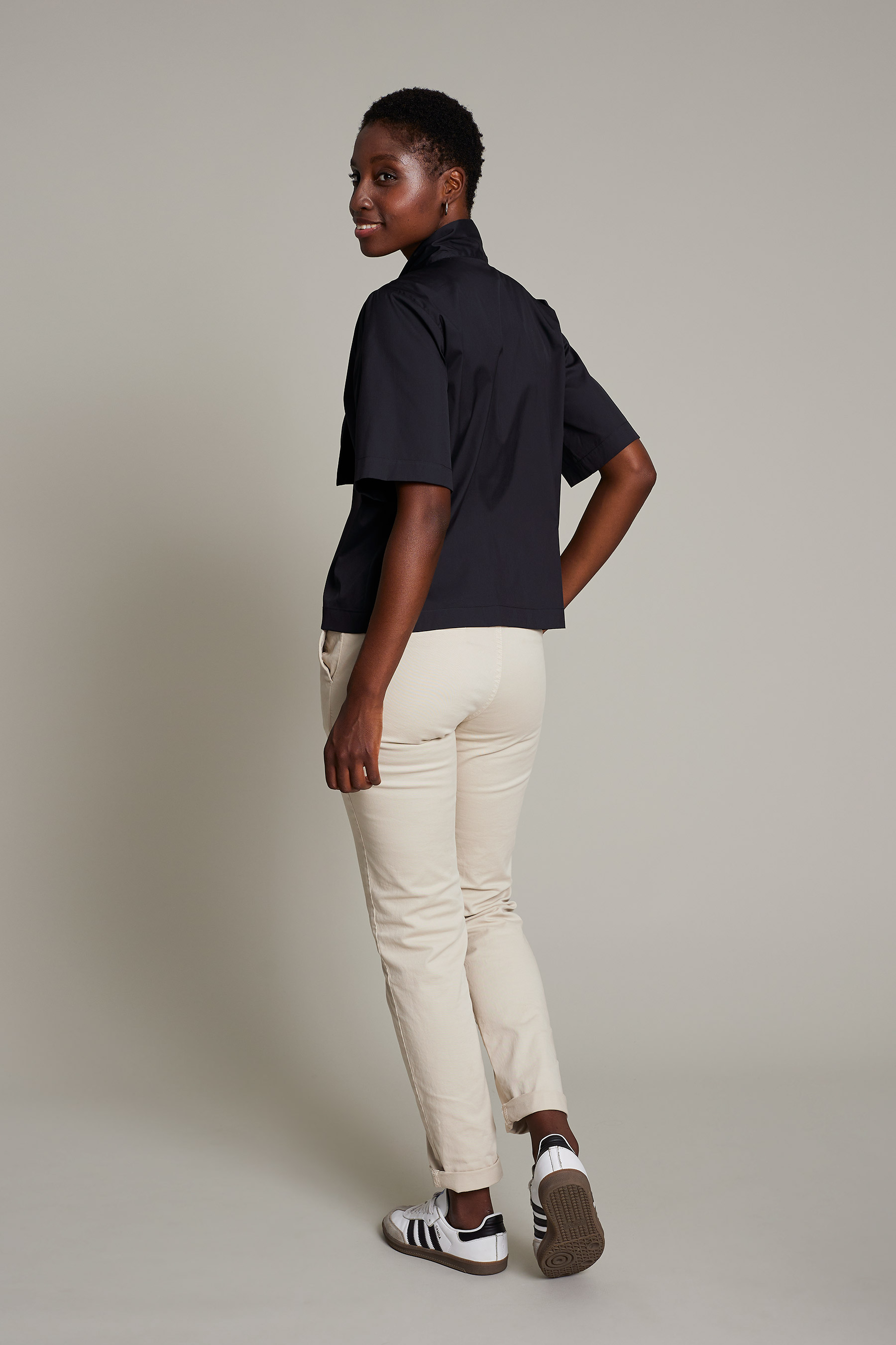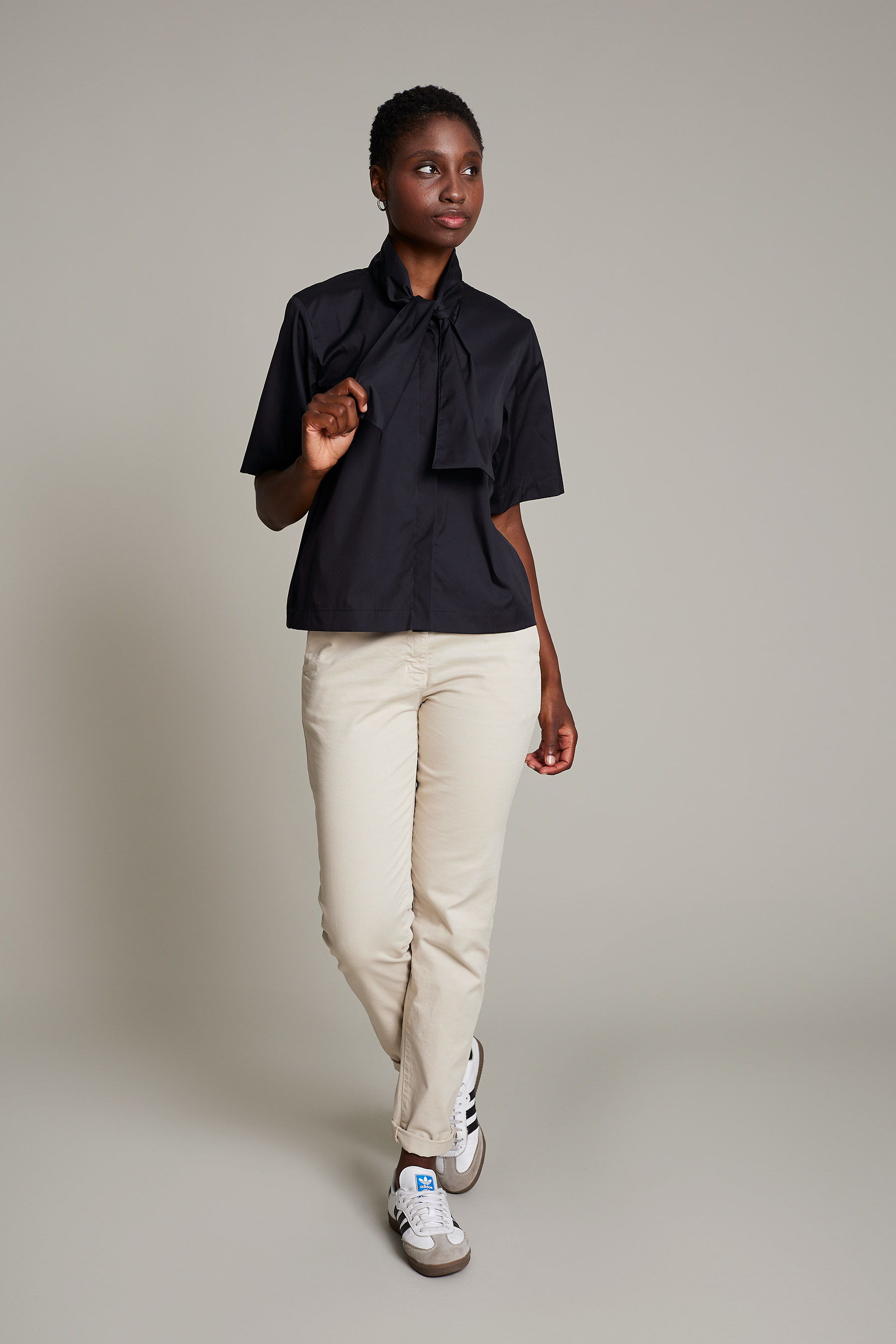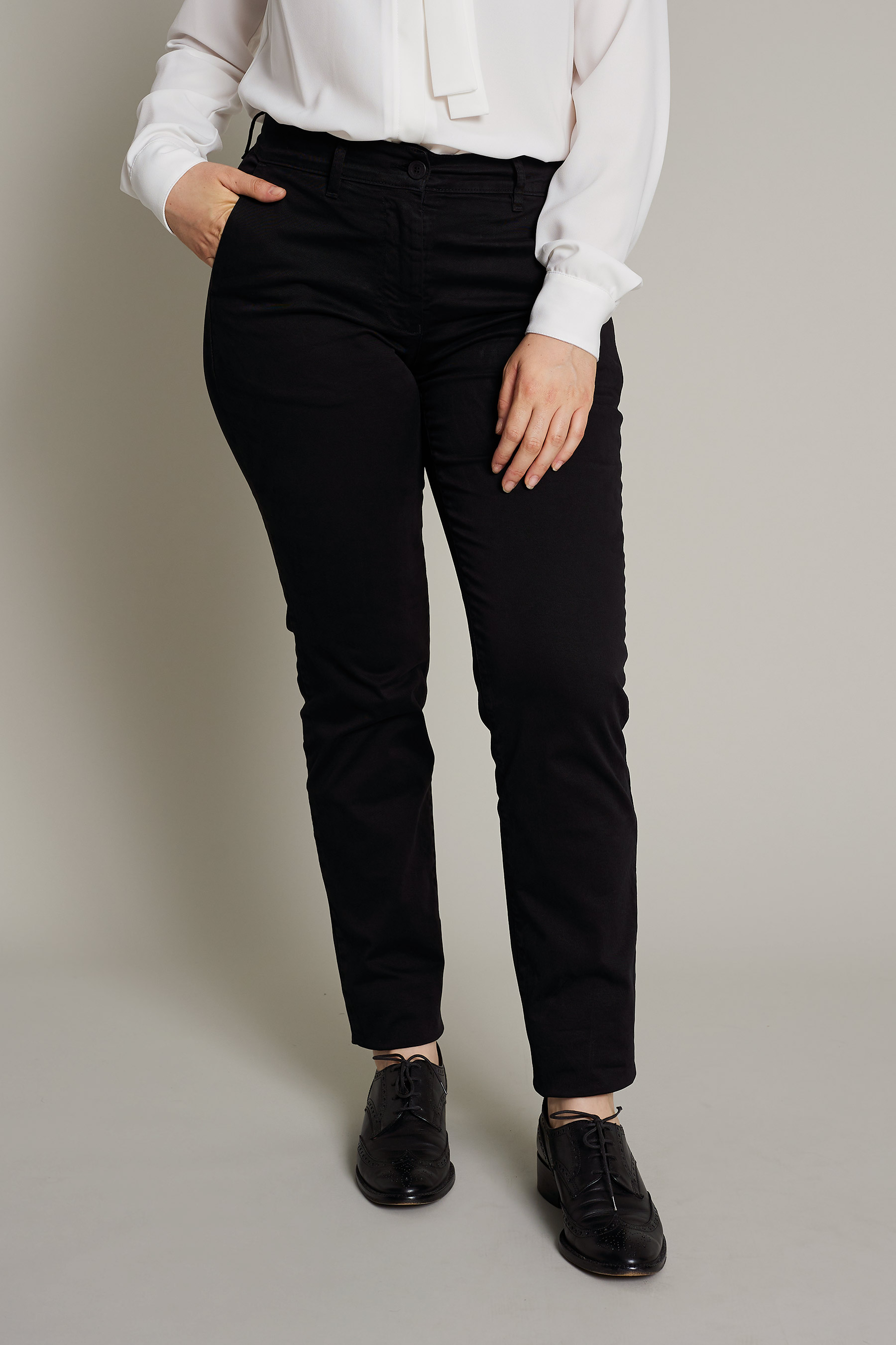 Women's chino pants in black washed cotton for maximum comfort and style for work