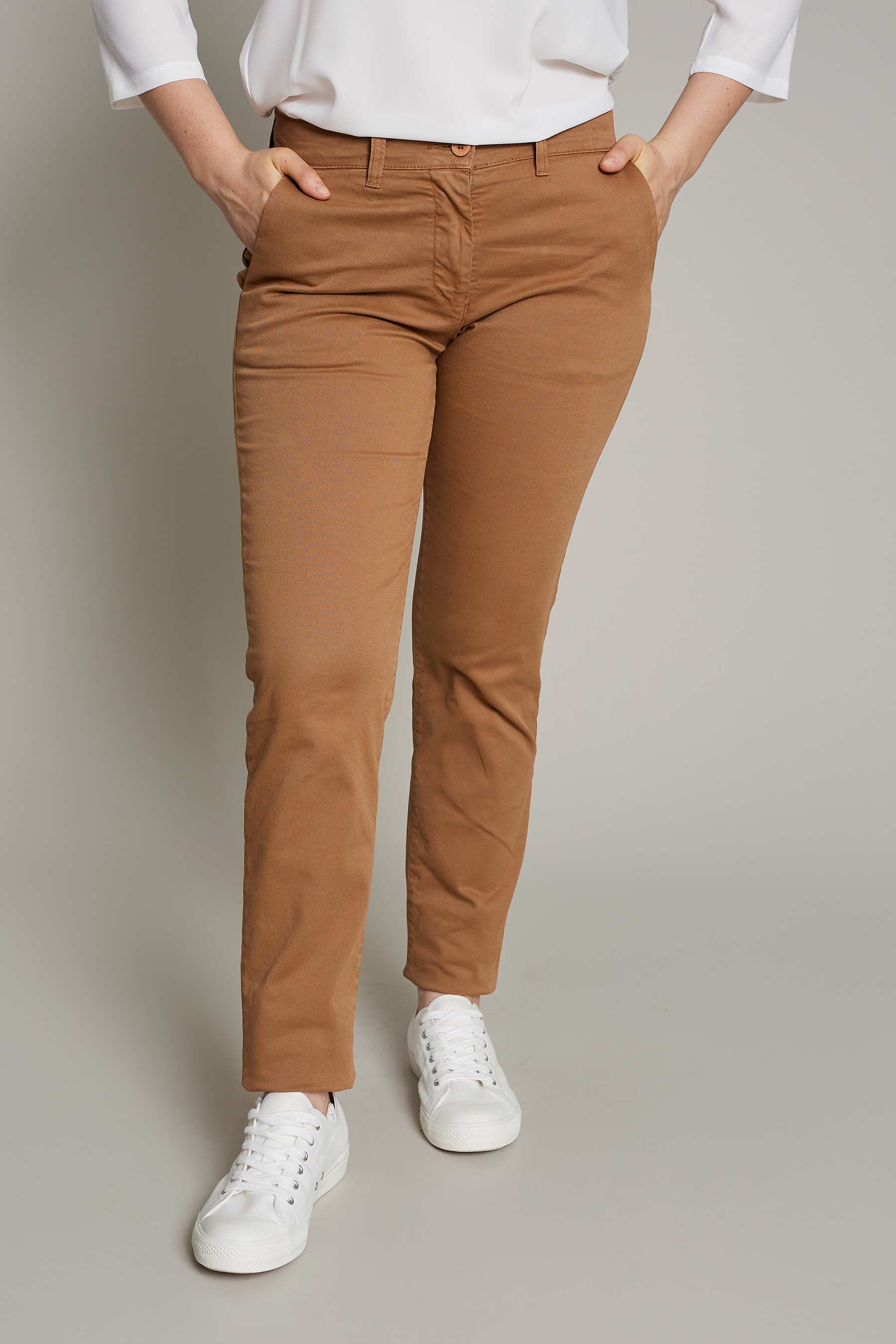 Women's chino pants in washed camel cotton for maximum comfort and style for work
