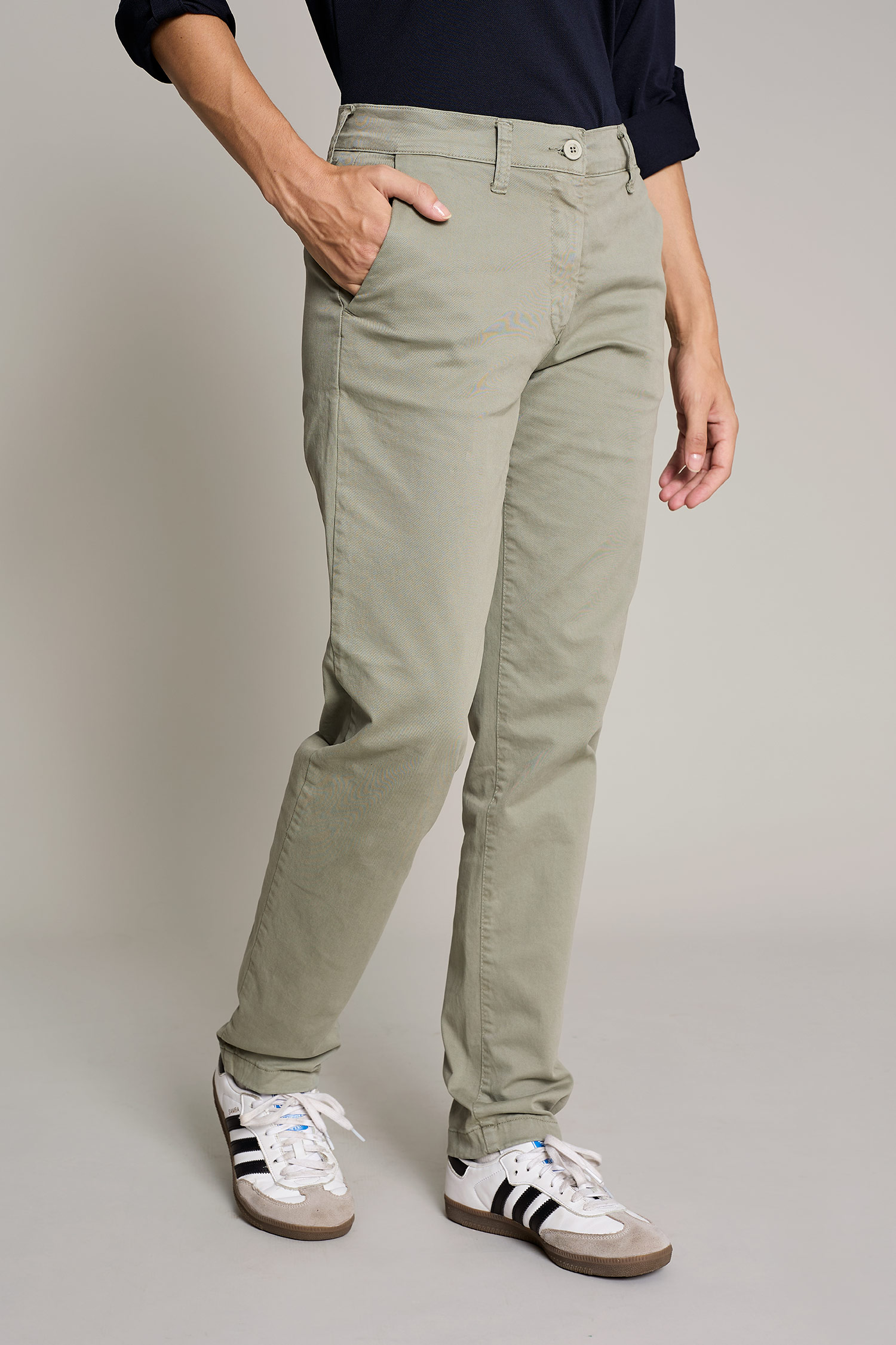 Women's chino pants in washed green cotton for maximum comfort and style for work