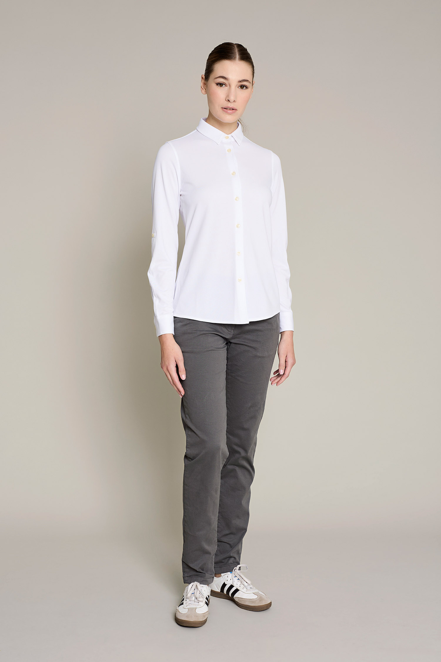 Women's chino pants in beige washed cotton for maximum comfort and style for work
